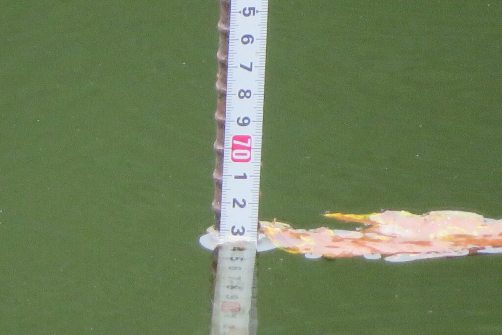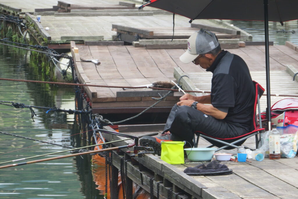 -173㎝・曇り一時雨・無風一時弱風の1日でした。お客様2-2号桟橋・竿18尺、12尺・床両ダンゴ、セットで25㎝~35㎝を56枚(~14:00まで)、4-1号桟橋・竿12尺・床両グルで28㎝~36㎝を46枚(~12:30)の釣果でした。今日は曇り予報でしたが、朝から小雨が降り出してパラソルでの釣りでした。2号桟橋のお客様は床釣りからのスタートでしたが、途中で短竿・セットに変更されました。短竿のほうがアタリが多く、良く釣れました。4号桟橋のお客様は両グルの床釣りでした。池水位の回復で4号桟橋の釣果が戻ってきましたが、今日は良型ヘラブナも多く良く釣れました。現在、水位回復中ですが、短竿での床釣りは今がチャンスです。本日もお越しいただき、ありがとうございました。