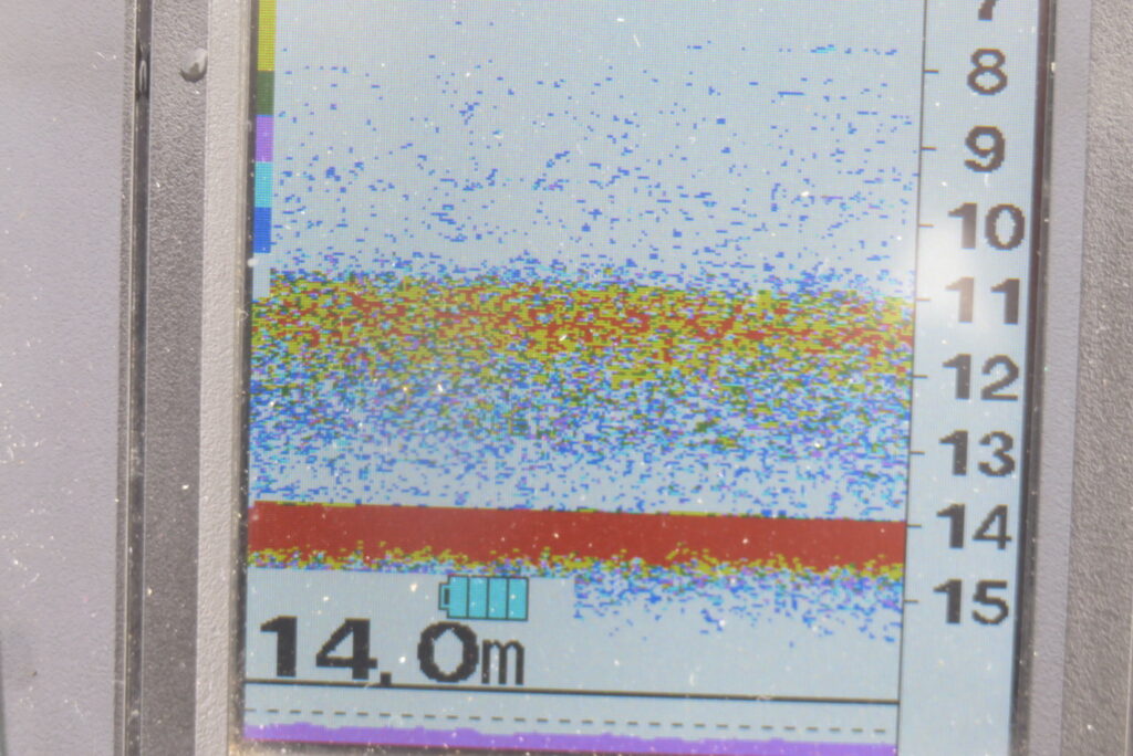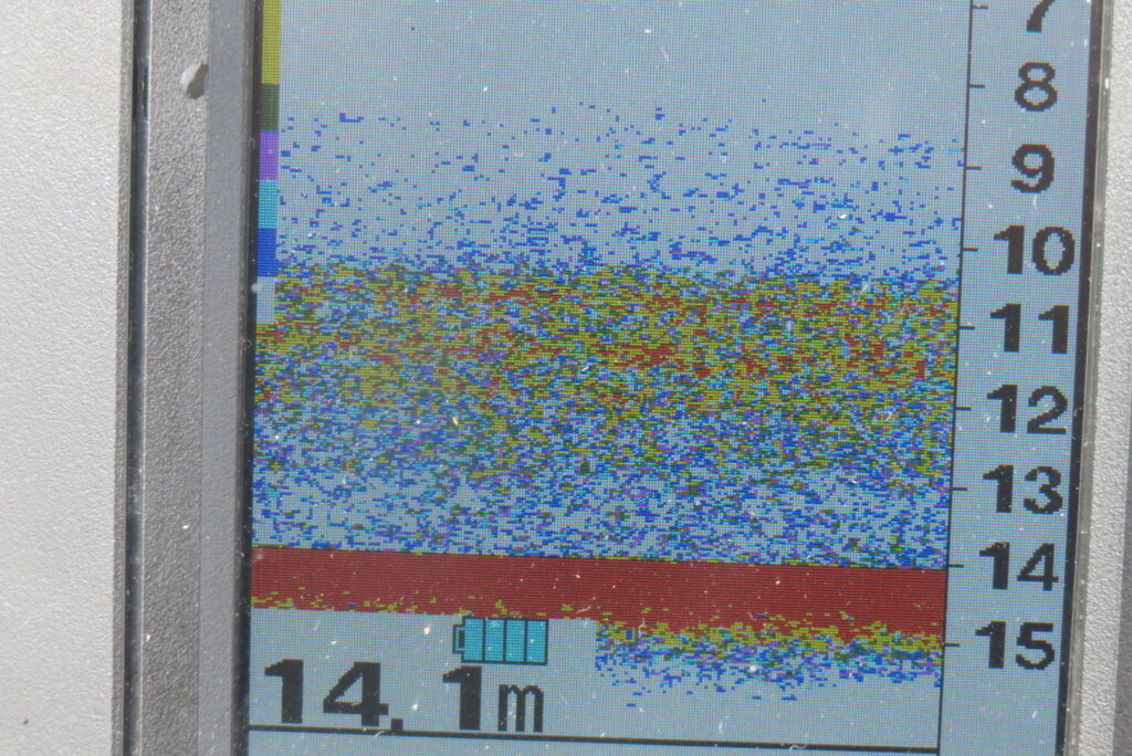 -120㎝・曇り・無風一時弱風で穏やかな1日でした。今日は定休日でしたので、デカバス退治用のルアーと魚探をボートに積んでゴルフ場側に行ってきました。デカバスは不発でしたが、ワカサギはいつものポイントに溜まっていました。深場の広範囲にいるようで、次回は竿出しで探ってみたいと思います。桟橋付近にはワカサギの回遊が無く、ドーム・桟橋とも釣果なしが続いています。
