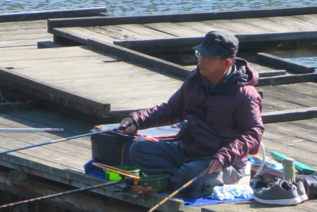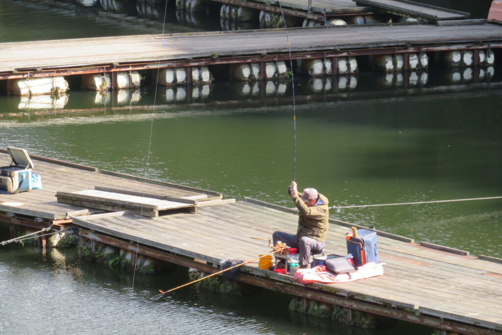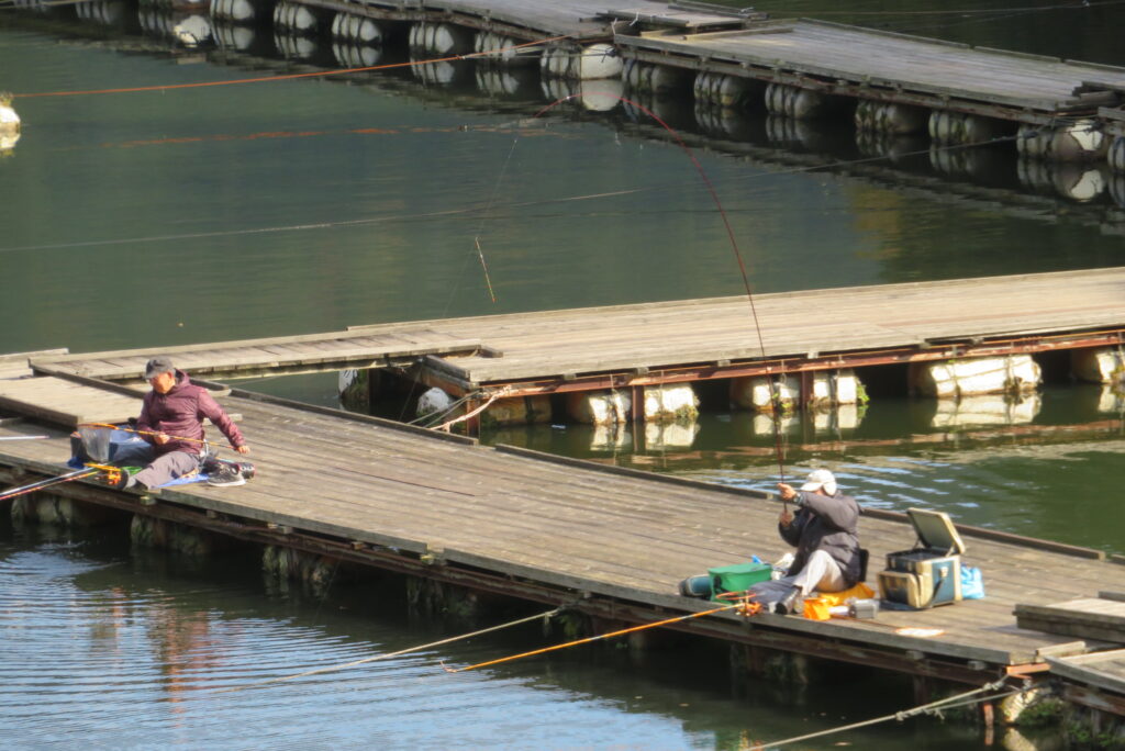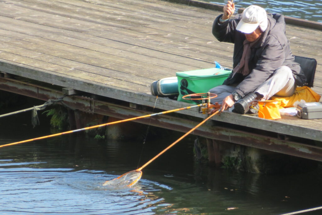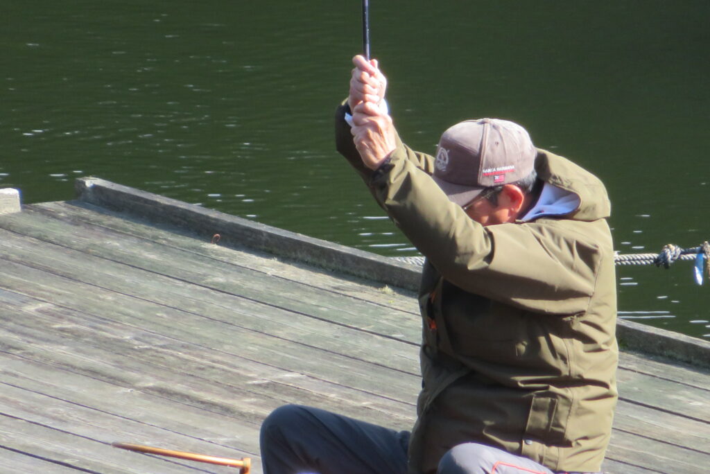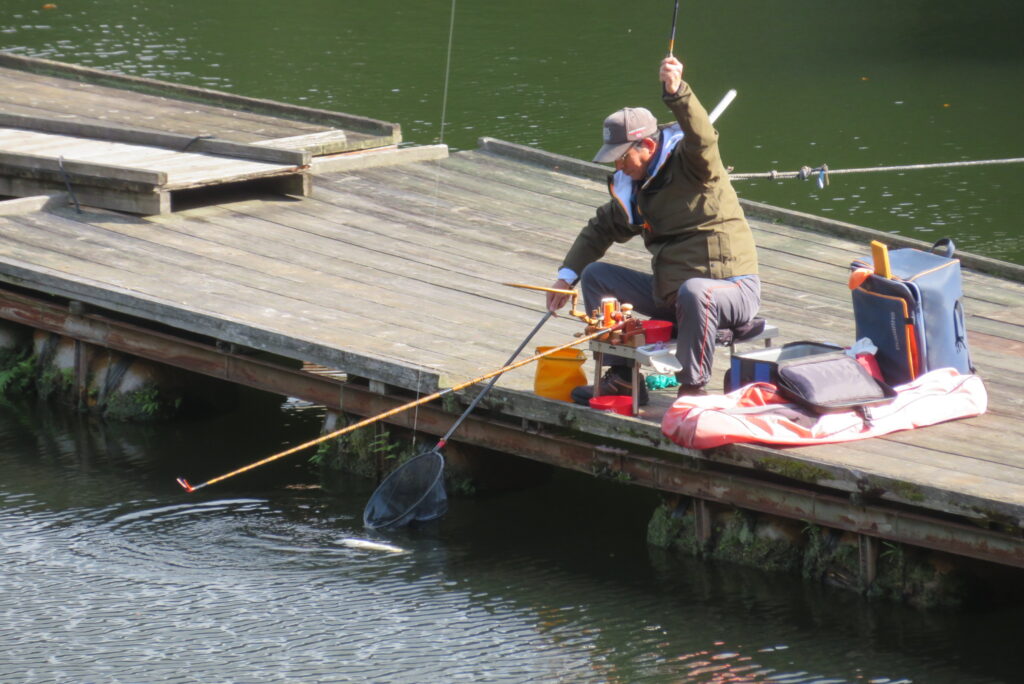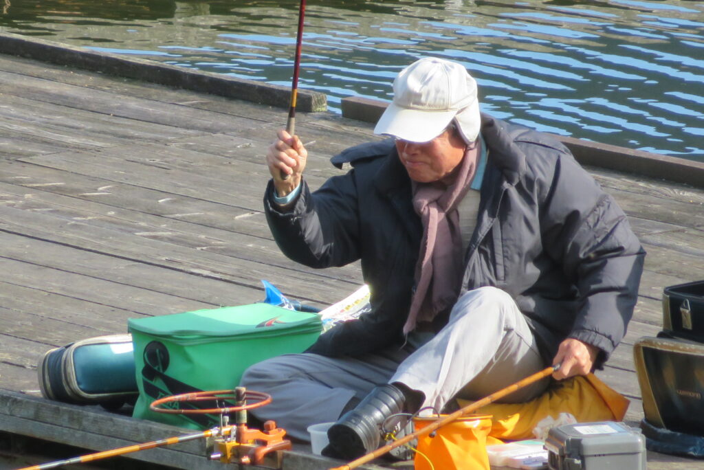 満水・晴れ・無風で穏やかな1日でした。お客様2-3号桟橋・竿18尺、14尺・両グルで21㎝~38㎝を36枚(9:00~15:30まで)、4-2号桟橋道路向き・竿16尺・床バラグルで20㎝~40㎝を32枚、そのほかのお客様も良く釣れていました。今日、半年ぶりに池水位が満水になりました。夏頃に池取水設備の故障のため最大-380㎝まで低下しましたが、設備修理後に少しずつ水位回復して、なんとか満水に戻りました。夏から溜まり水状態でしたので、ヘラブナ・ワカサギとも例年とは異なる釣れパターンです。ヘラブナについては、池水温15℃程度まで下がってきていますので、例年では今の時期少し深めの桟橋が好調な時期ですが、今年は浅場の4号・7号・8号が好釣です。4号桟橋では今日も40㎝超の大型も釣れており、水温低下でいつまで浅場桟橋が好釣かは予測できませんが、今は数・型とも狙いです。本日もお越しいただき、ありがとうございました。