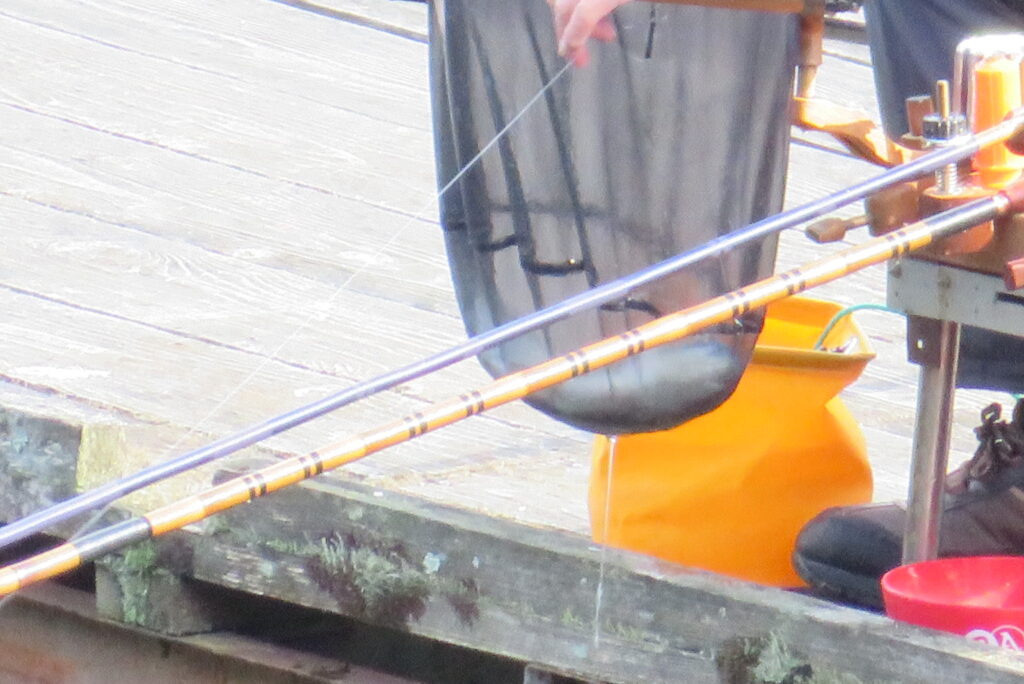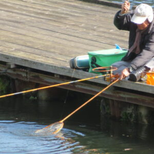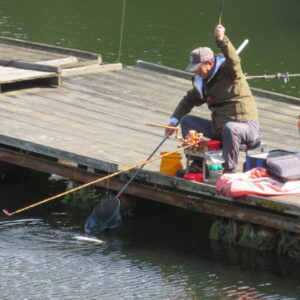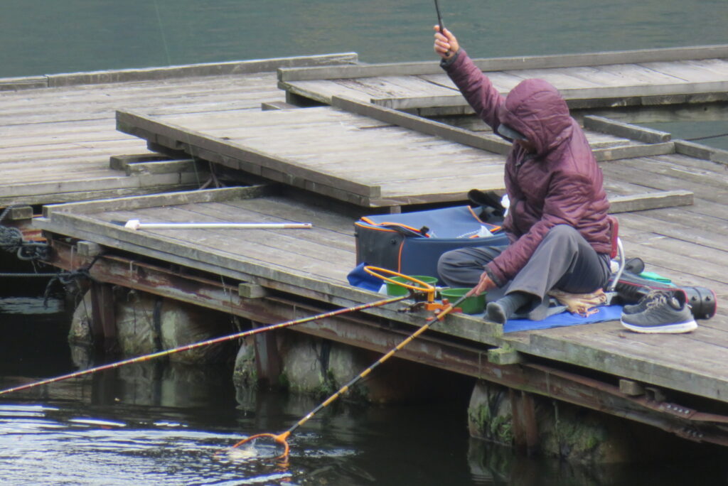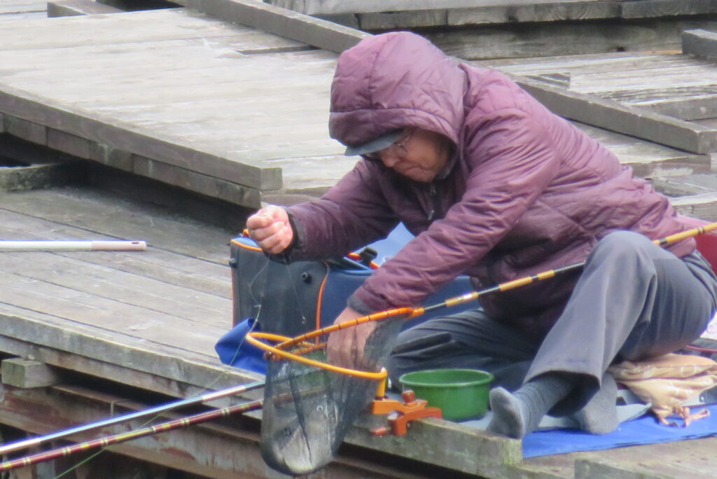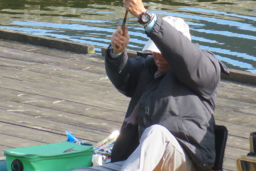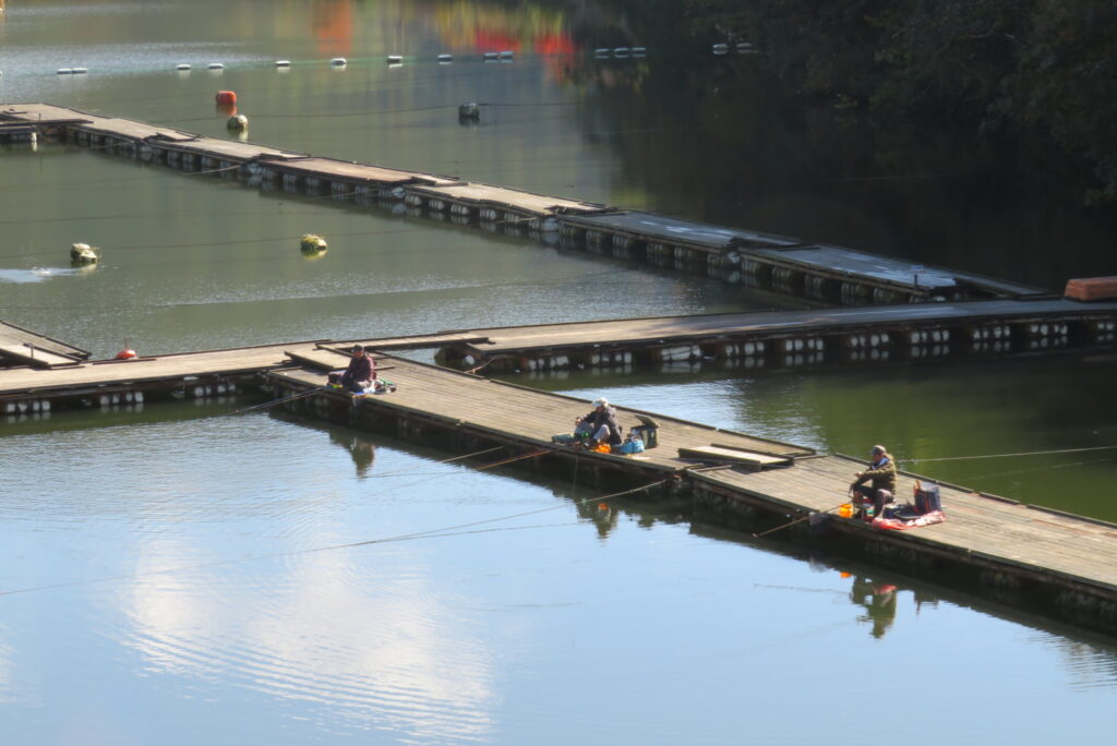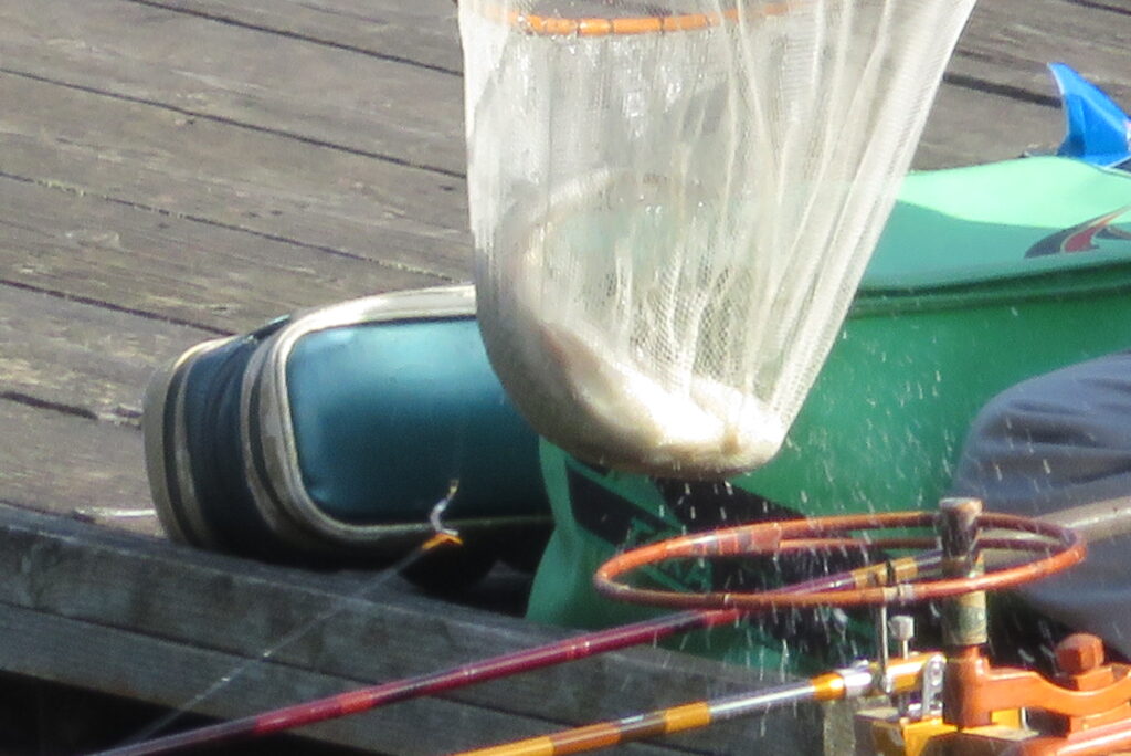 満水・晴れ・無風で穏やかな1日でした。お客様2-3号桟橋・竿18尺、14尺・両グルで21㎝~38㎝を36枚(9:00~15:30まで)、4-2号桟橋道路向き・竿16尺・床バラグルで20㎝~40㎝を32枚、そのほかのお客様も良く釣れていました。今日、半年ぶりに池水位が満水になりました。夏頃に池取水設備の故障のため最大-380㎝まで低下しましたが、設備修理後に少しずつ水位回復して、なんとか満水に戻りました。夏から溜まり水状態でしたので、ヘラブナ・ワカサギとも例年とは異なる釣れパターンです。ヘラブナについては、池水温15℃程度まで下がってきていますので、例年では今の時期少し深めの桟橋が好調な時期ですが、今年は浅場の4号・7号・8号が好釣です。4号桟橋では今日も40㎝超の大型も釣れており、水温低下でいつまで浅場桟橋が好釣かは予測できませんが、今は数・型とも狙いです。本日もお越しいただき、ありがとうございました。