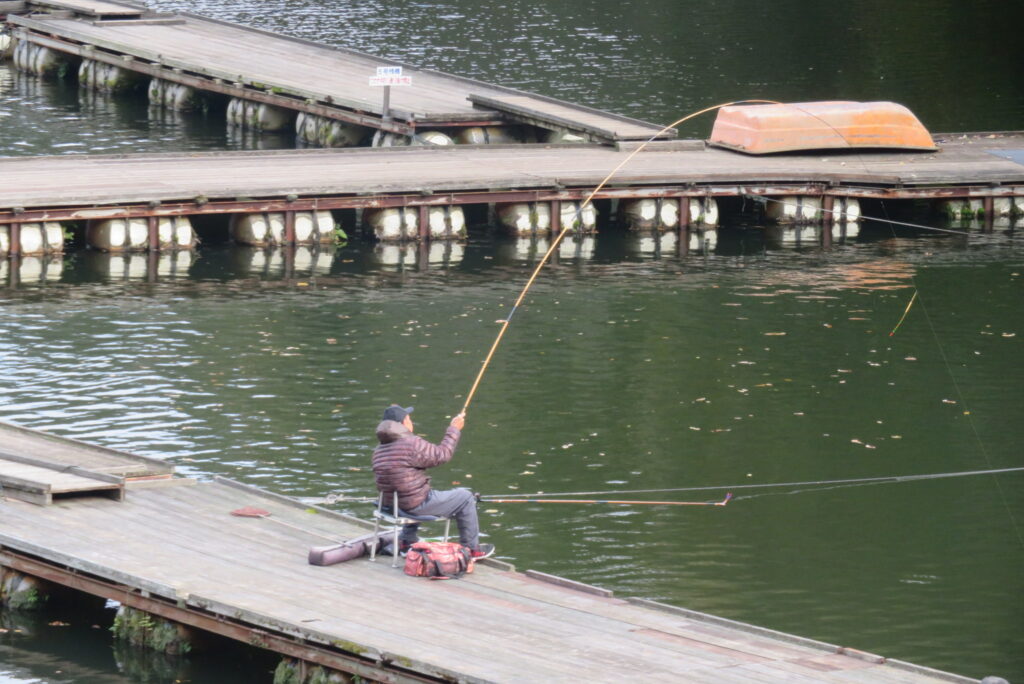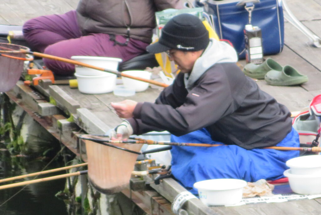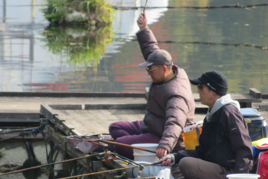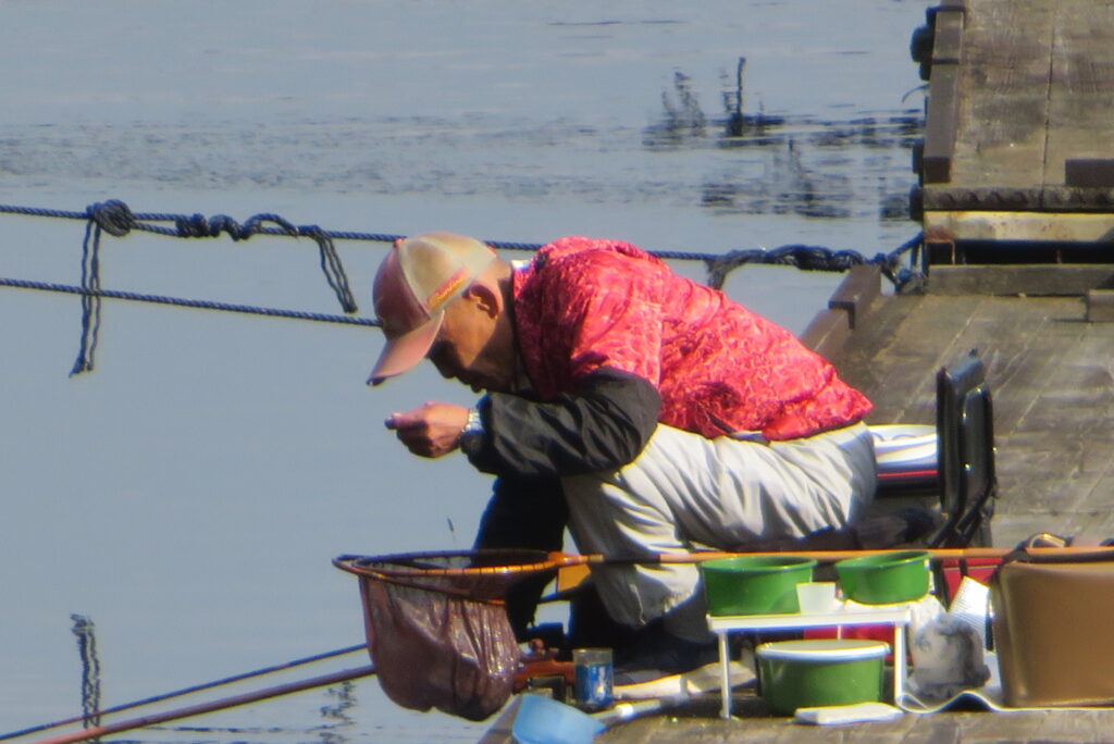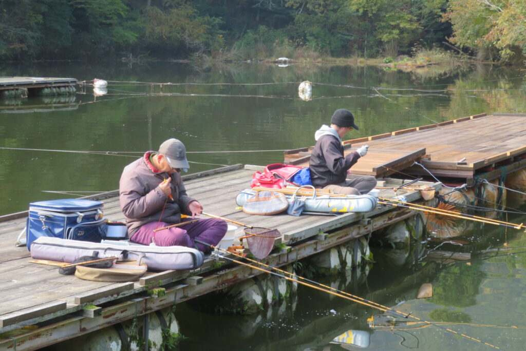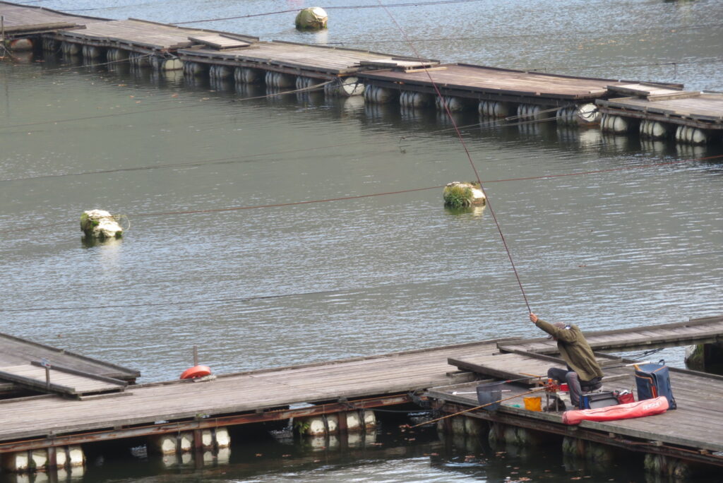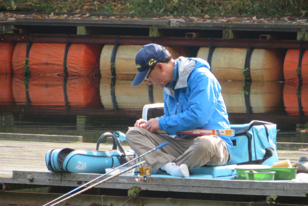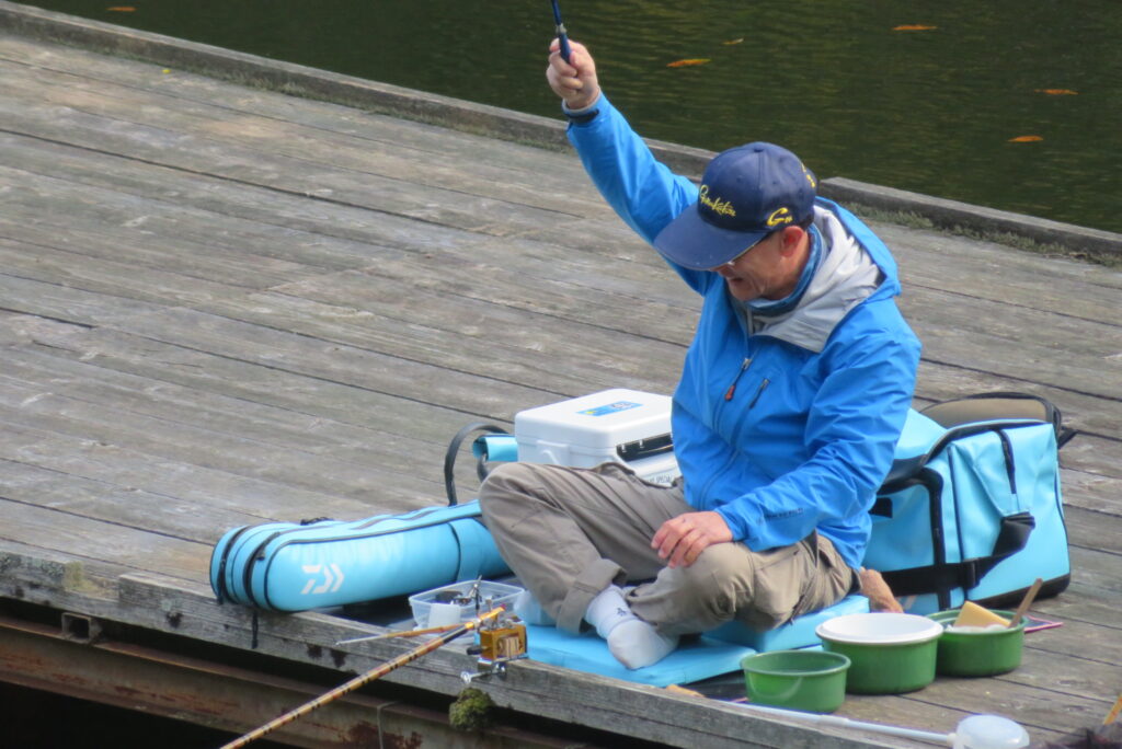 満水・晴れのち曇り・無風のち弱風の1日でした。京都の長谷川様2-4号桟橋・竿13.5尺、10尺・両ダンゴで25㎝~39㎝を54枚(~14:00まで)、4号桟橋・8号桟橋のお客様は20枚~30枚前後の釣果で40㎝超も1枚釣れました。2号桟橋は貸し切りだったこともあり、ヘラブナの寄りすぎでエサが入らず難しい釣り条件でしたが、エサやハリスの長さ、針の重さ等、試行錯誤され上手に釣っていただきました。今日の2号桟橋は良型が多く釣れました。4号桟橋・8号桟橋はターンオーバーが起きる前の9時頃までは好釣でしたが、ターンオーバー後は活性が落ち、数釣りとはなりませんでした。本日もお越しいただき、ありがとうございました。