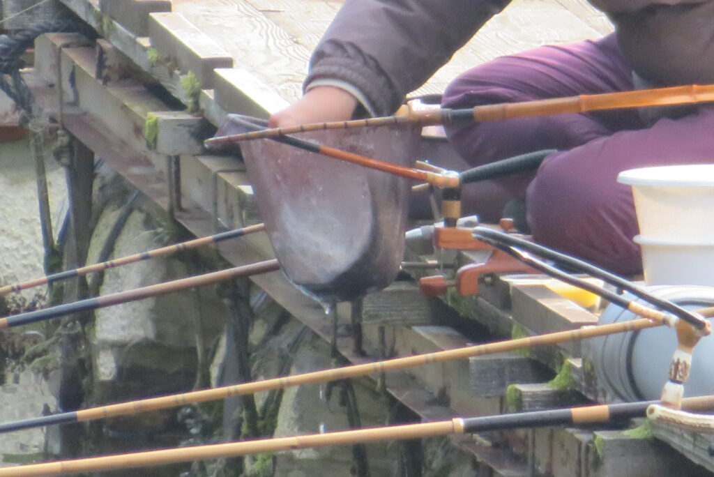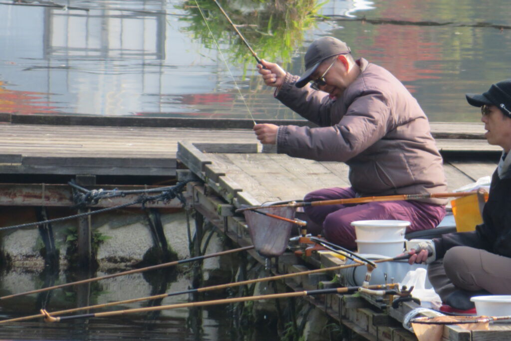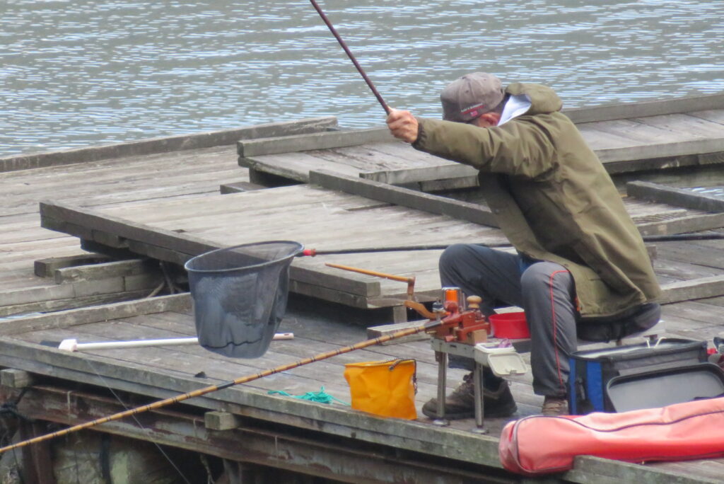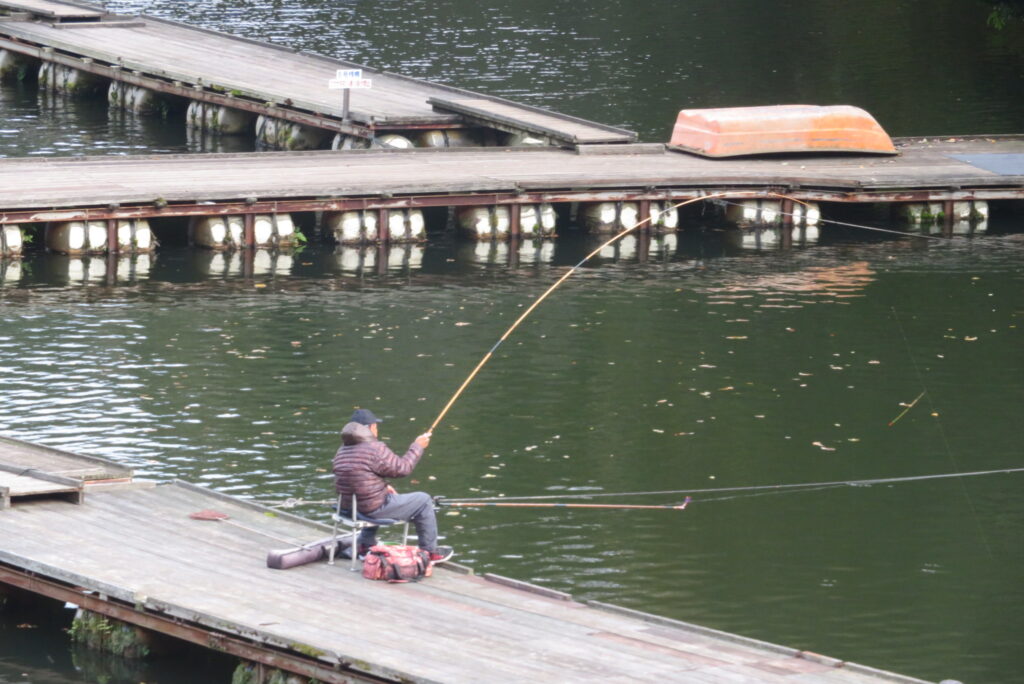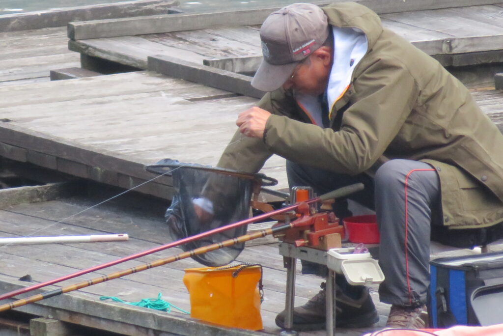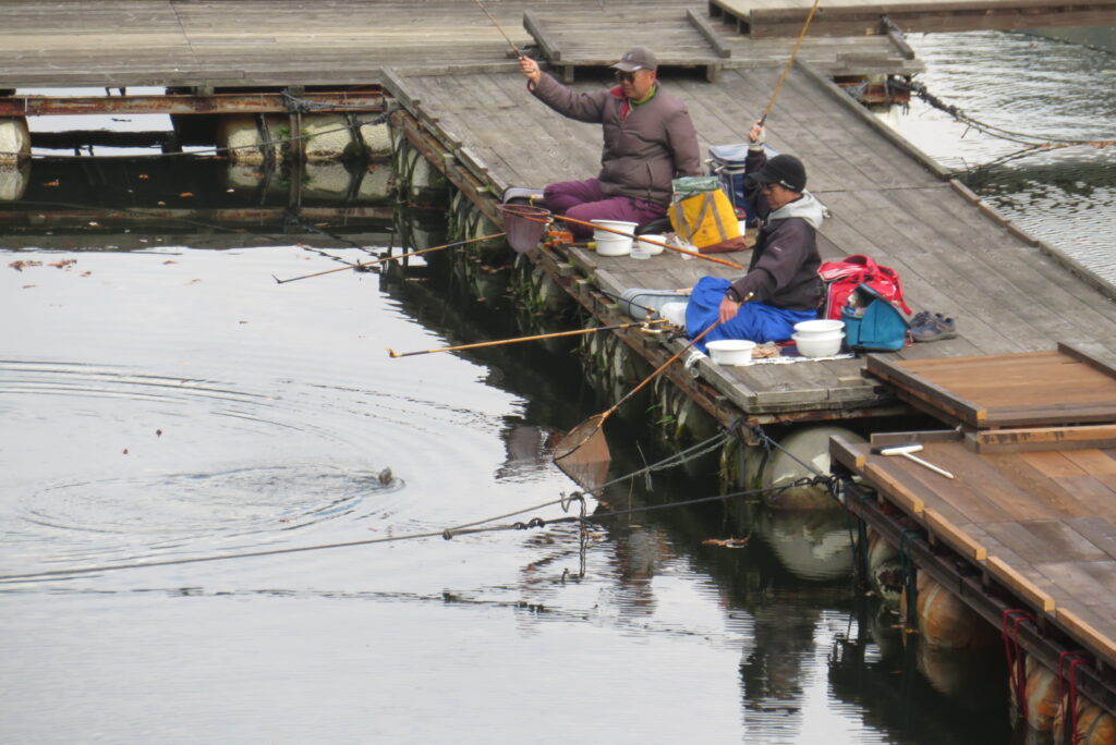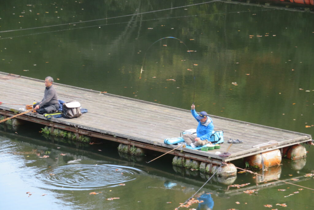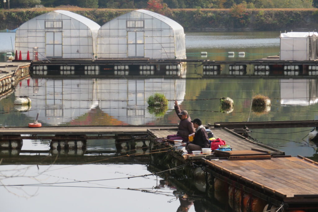 満水・晴れのち曇り・無風のち弱風の1日でした。京都の長谷川様2-4号桟橋・竿13.5尺、10尺・両ダンゴで25㎝~39㎝を54枚(~14:00まで)、4号桟橋・8号桟橋のお客様は20枚~30枚前後の釣果で40㎝超も1枚釣れました。2号桟橋は貸し切りだったこともあり、ヘラブナの寄りすぎでエサが入らず難しい釣り条件でしたが、エサやハリスの長さ、針の重さ等、試行錯誤され上手に釣っていただきました。今日の2号桟橋は良型が多く釣れました。4号桟橋・8号桟橋はターンオーバーが起きる前の9時頃までは好釣でしたが、ターンオーバー後は活性が落ち、数釣りとはなりませんでした。本日もお越しいただき、ありがとうございました。