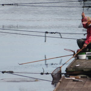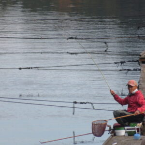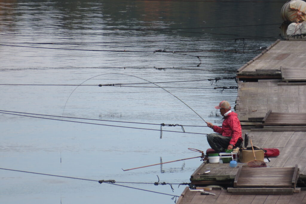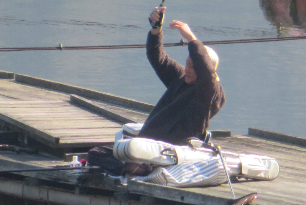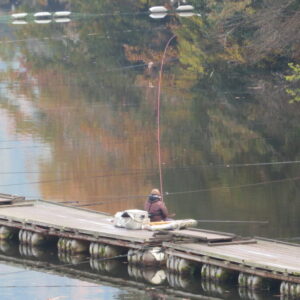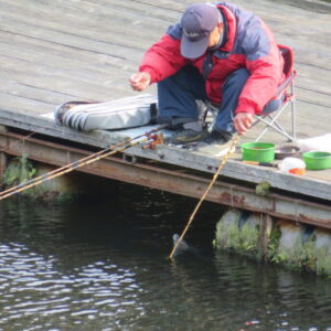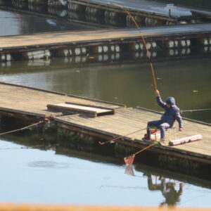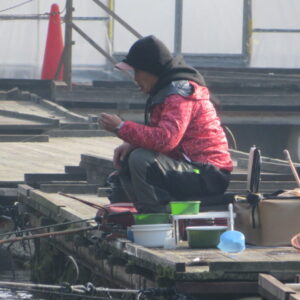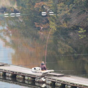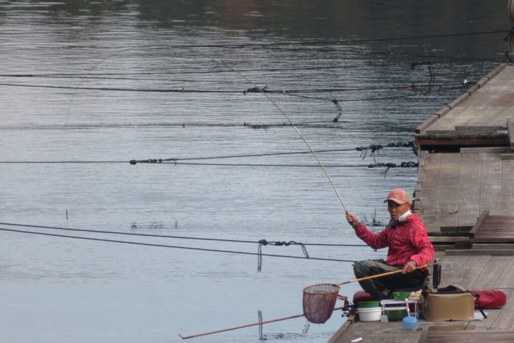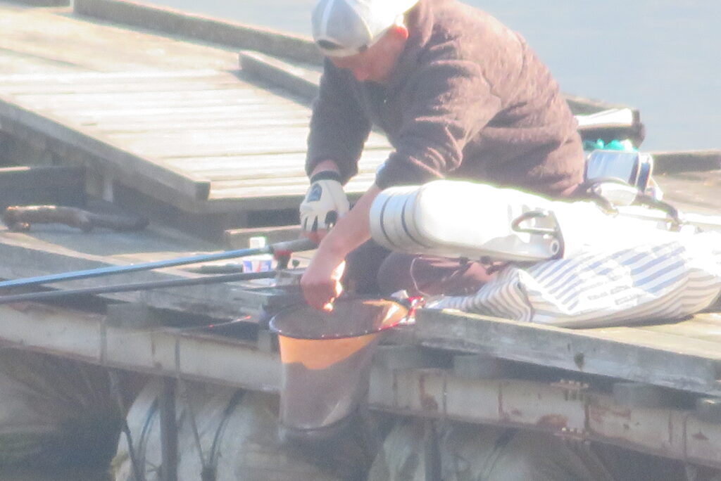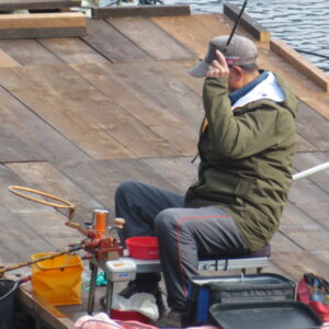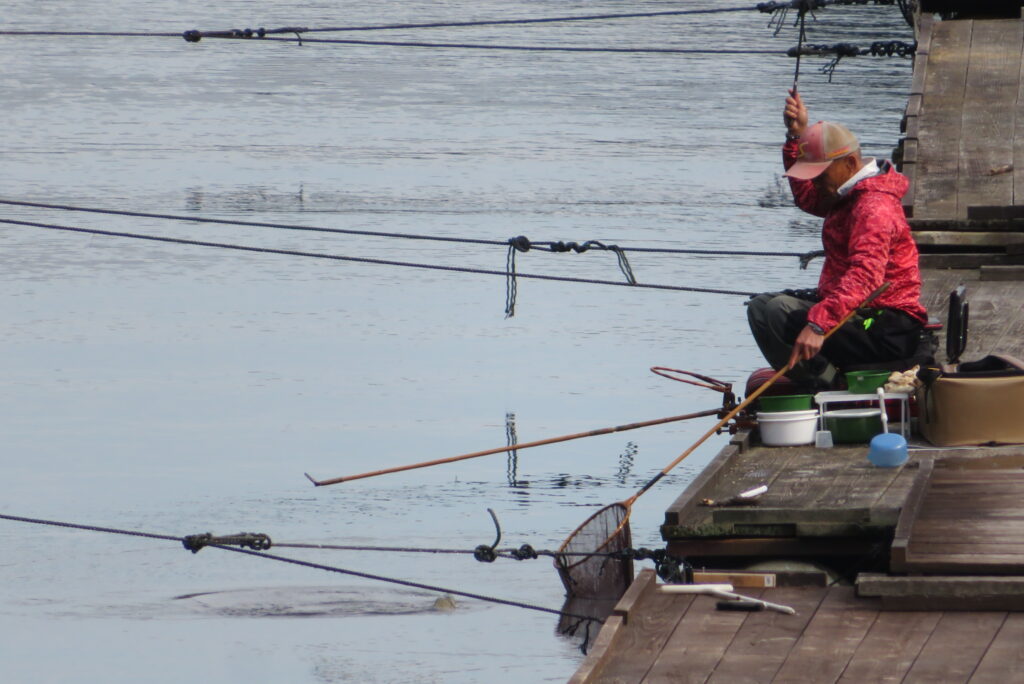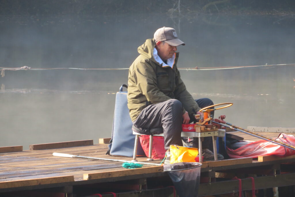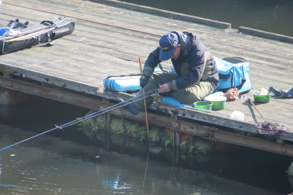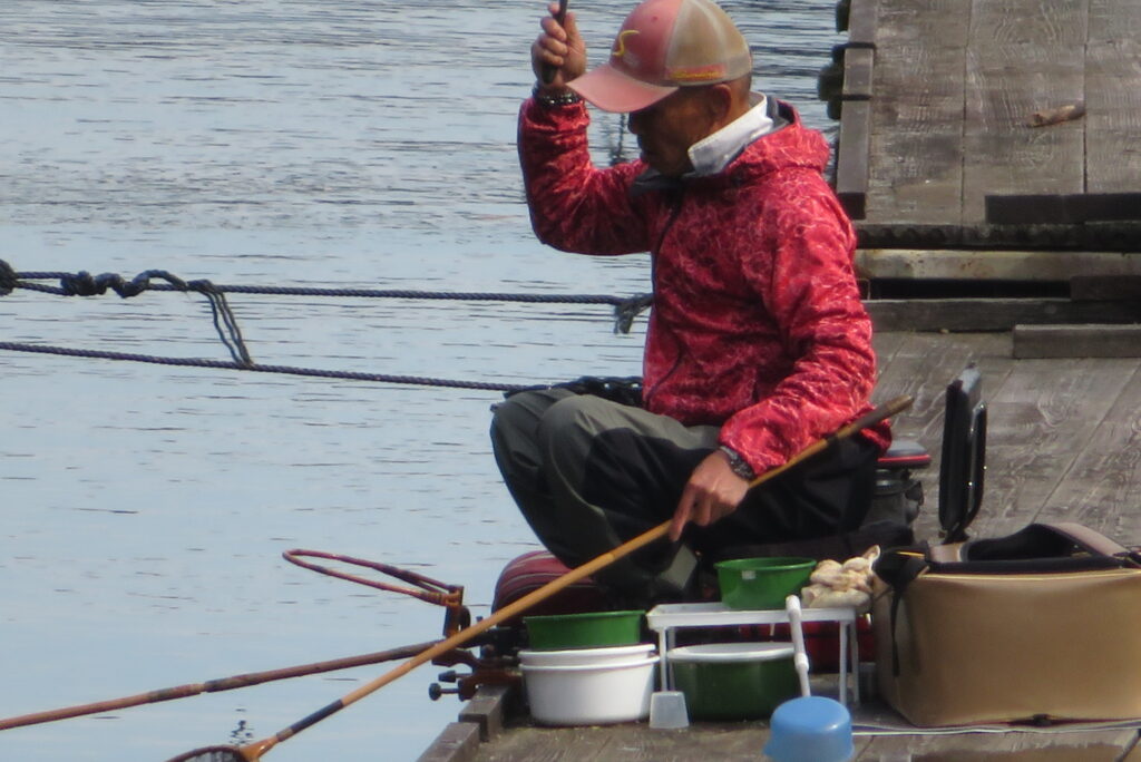満水・晴れのち曇り・無風で穏やかな1日でした。京都の長谷川様2-4号桟橋・竿12尺・ウドンセット、両ダンゴで25㎝~38㎝を50枚(~14:00まで)、5-2号桟橋山向き・竿22尺・床両ダンゴで25㎝~36㎝を44枚、4-2号桟橋・竿13.5尺・床両グルで30㎝~38㎝を22枚(~14:00)、そのほかのお客様も床釣りで6枚~20枚程度の釣果でした。今日も9時前にターンオーバーが起き、水面の冷たい水が池底に入り、舞い上がった底の泥の粒子が水面に浮遊していました。2号桟橋の朝一は多くのヘラブナが寄って湧き湧き状態でしたが、ターンオーバーのタイミングで湧き湧きが解消して、ターンオーバー後もコンスタントに釣れました。14時の早仕舞いでしたが50枚釣果で数釣りが楽しめました。4号桟橋・5号桟橋・8号桟橋のお客様は全員が床釣りでした。5-2号桟橋山向きが好釣で、午後に活性があがり釣れ続きました。4号桟橋・8号桟橋は数釣りとはなりませんでしたが、のんびりとアタリを楽しんでいただきました。本日もお越しいただき、ありがとうございました。