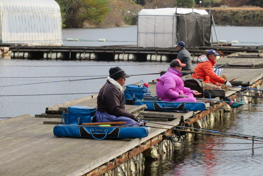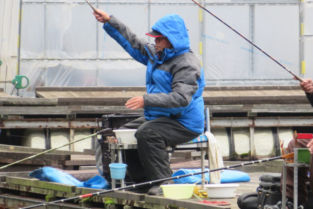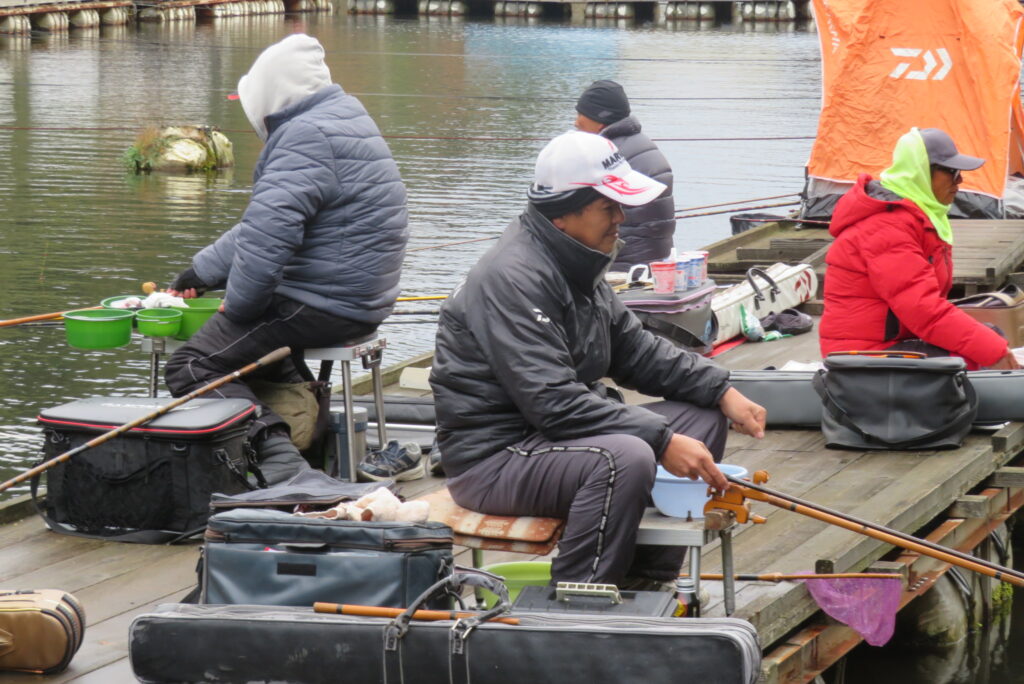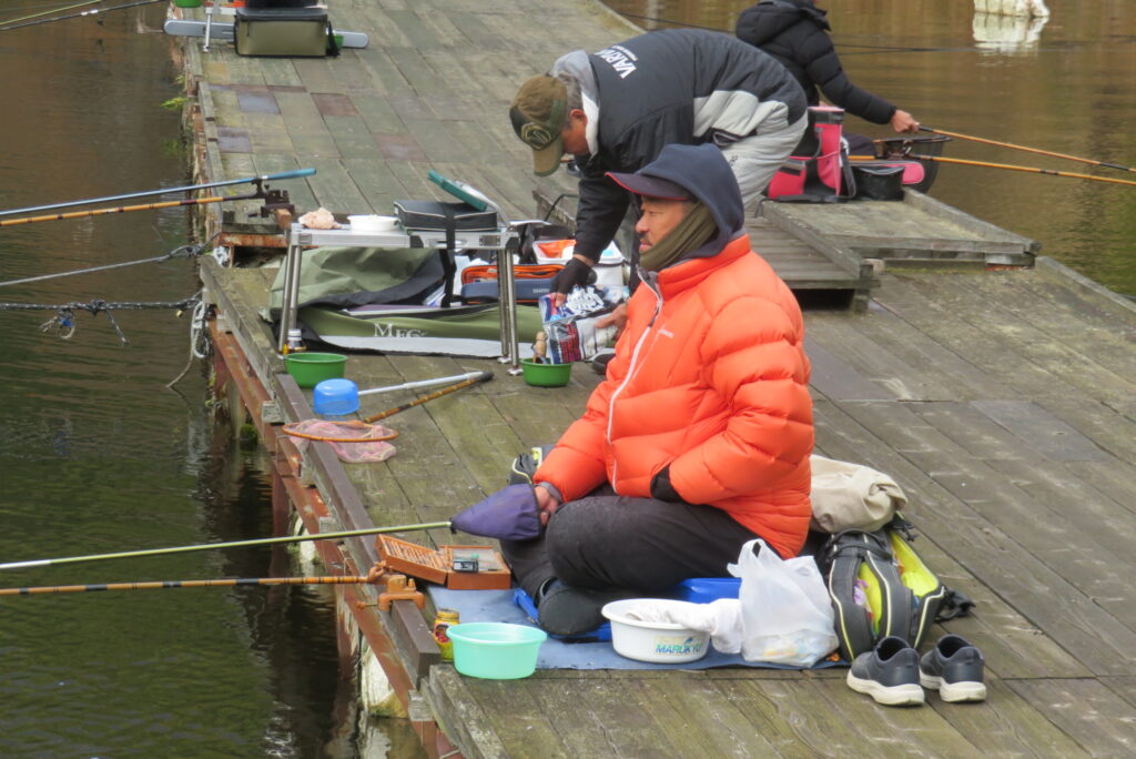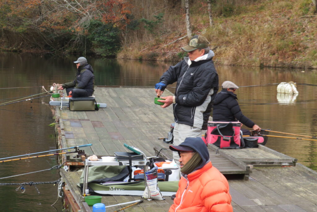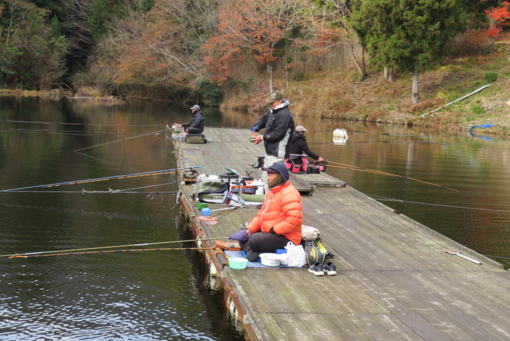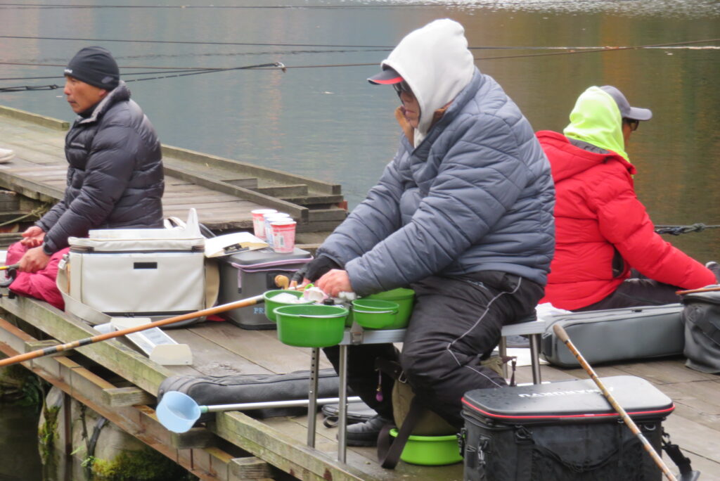 満水・晴れのち曇り・無風一時弱風で穏やかな1日でした。今日は穏やかな釣り日和でしたが、ヘラブナの活性が上がらず各所とも釣果が伸びませんでした。3号桟橋の長竿・床釣りのお客様も10枚前後の釣果で数は伸びませんでしたが、40㎝混じりで良型が揃いました。2号桟橋では豊中釣れづれ会様の例会があり2枚長寸で競われました。優勝は73.5㎝のお客様でした。おめでとうございます。最長寸は37.5㎝、最多釣果は21枚でした。5号桟橋では京都夢50様の例会があり、活性の上がらないヘラブナでしたが、1日頑張っていただきました。当池のご利用ありがとうございました。本日もお越しいただき、ありがとうございました。