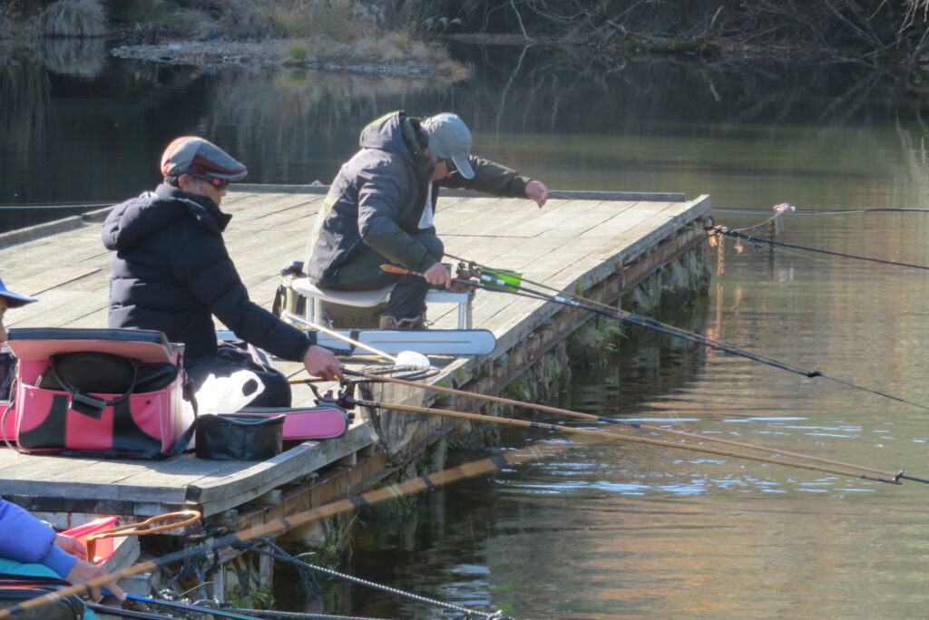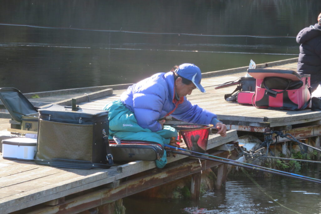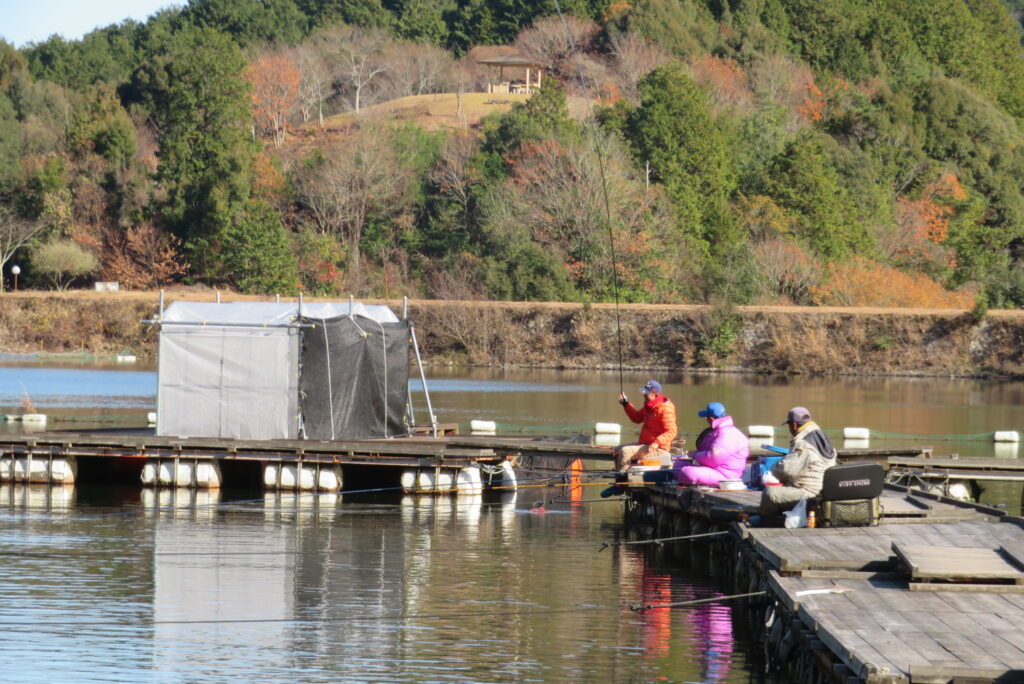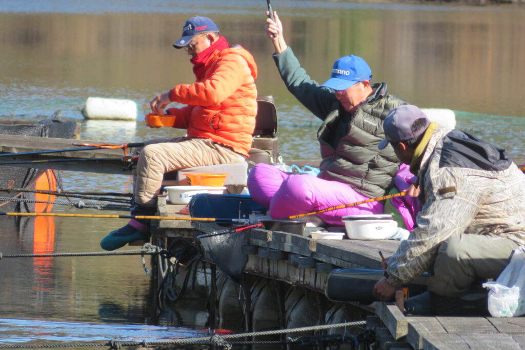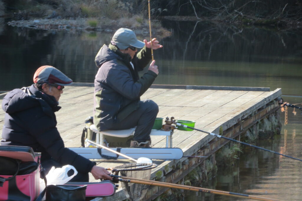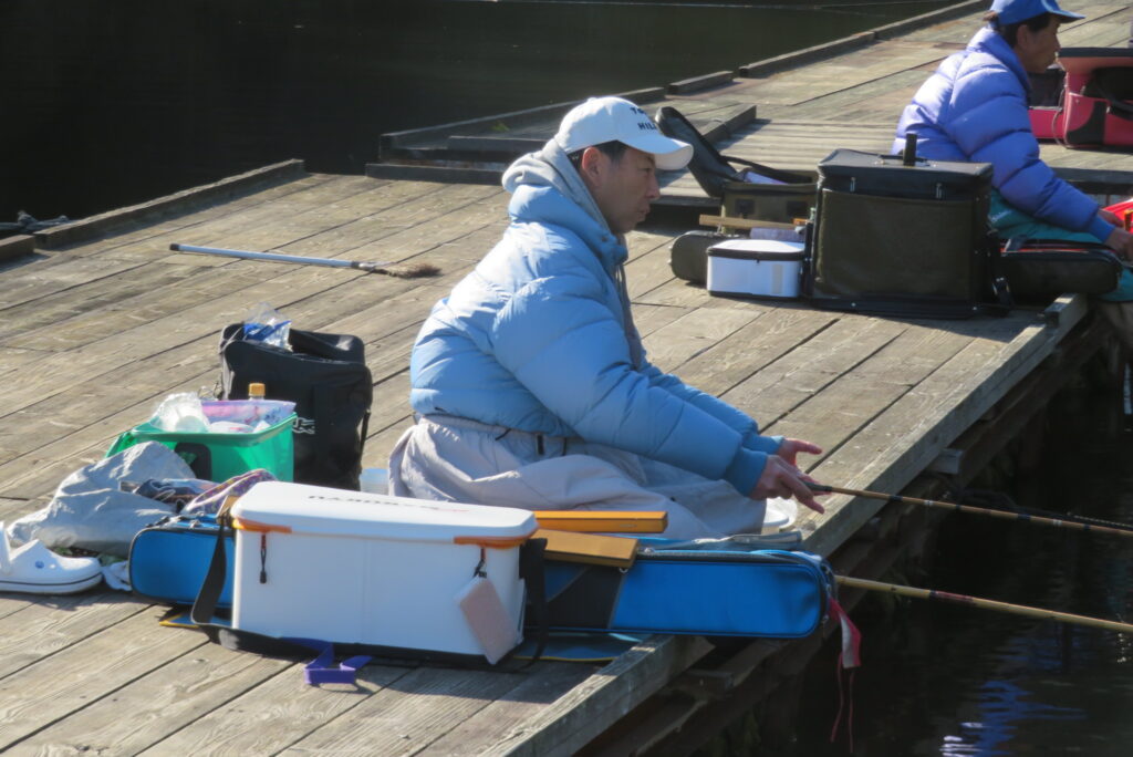 満水・晴れ・無風で穏やかな1日でした。枚方の渕田様3-5号桟橋道路向き・竿28.5尺・床グルテンセットで24㎝~41.8㎝を29枚、4-1号桟橋道路向き・竿21尺・床両グルで28㎝~36㎝を28枚、4-1号桟橋道路向き・竿16.5尺・段床で30㎝~36㎝を20枚、そのほかのお客様も数枚~17枚の釣果でした。朝一は3℃程度まで冷え込んだため釣れ出しは少し遅めでしたが、1日を通してアタリは継続しました。ウキ周りの浅棚に多くのヘラブナが寄っていた箇所もあり、短竿・セットであれば数釣りができた感じでした。明日14日(日)は、4-1号桟橋及び4-2号桟橋について例会予約が入っていますのでご承知をお願いします。本日もお越しいただき、ありがとうございました。