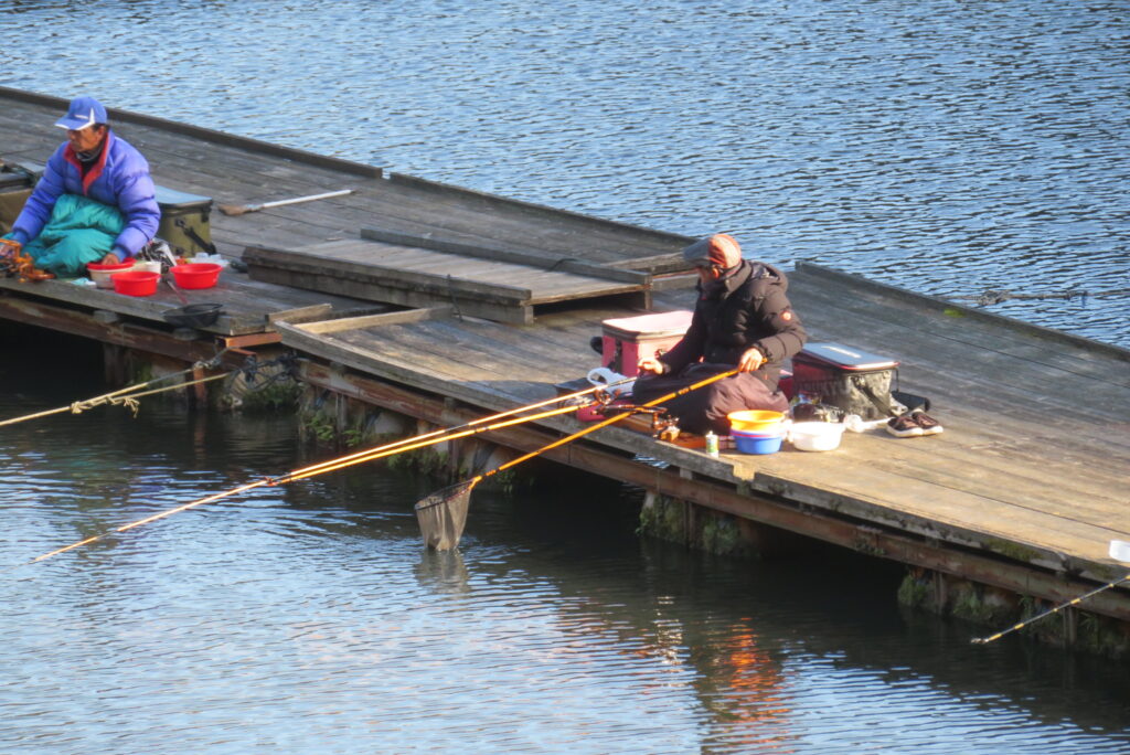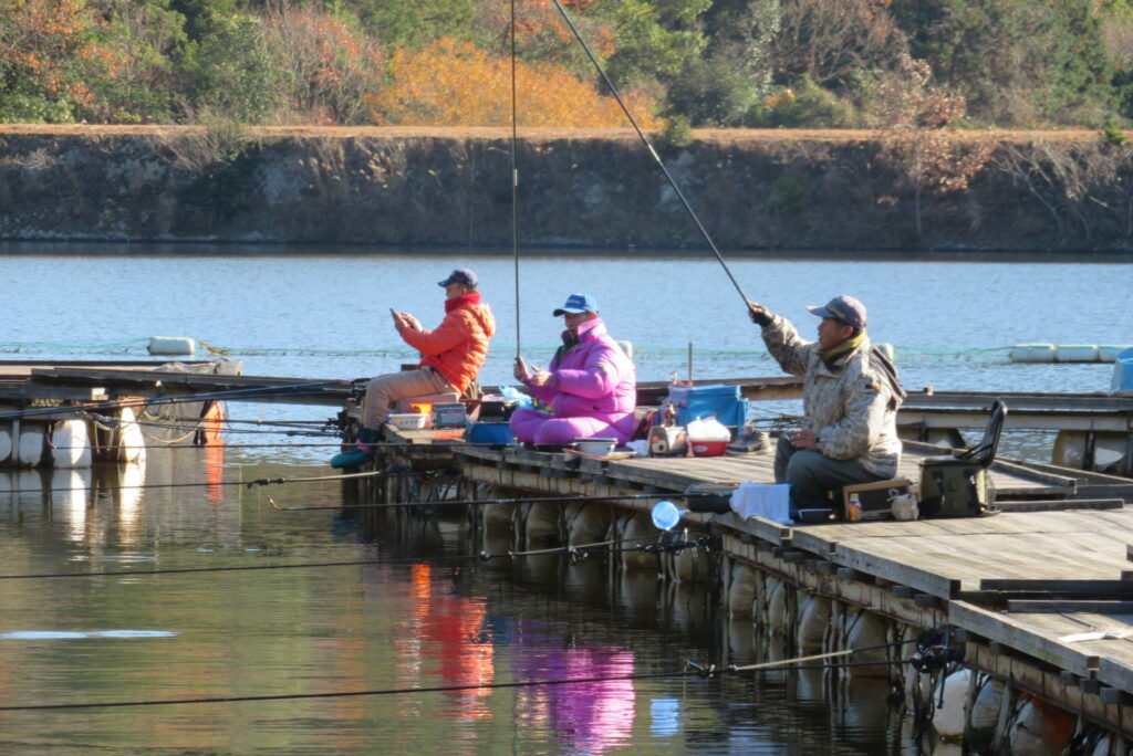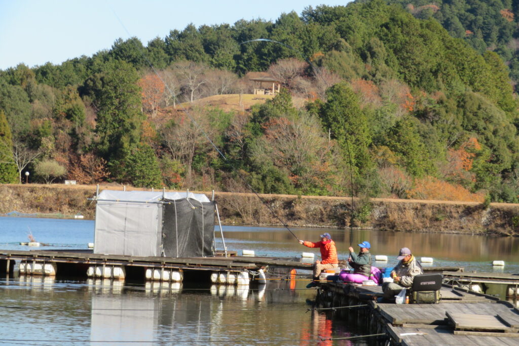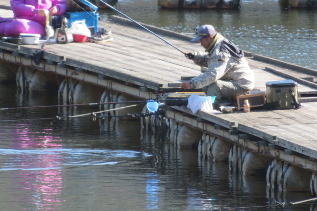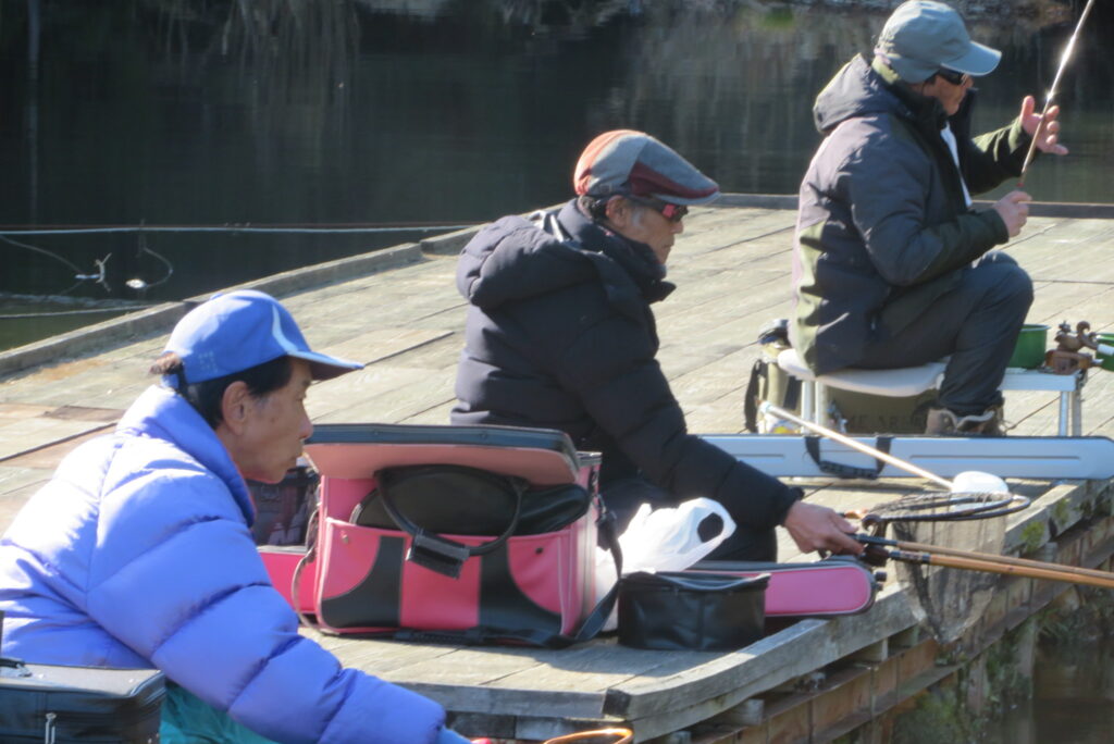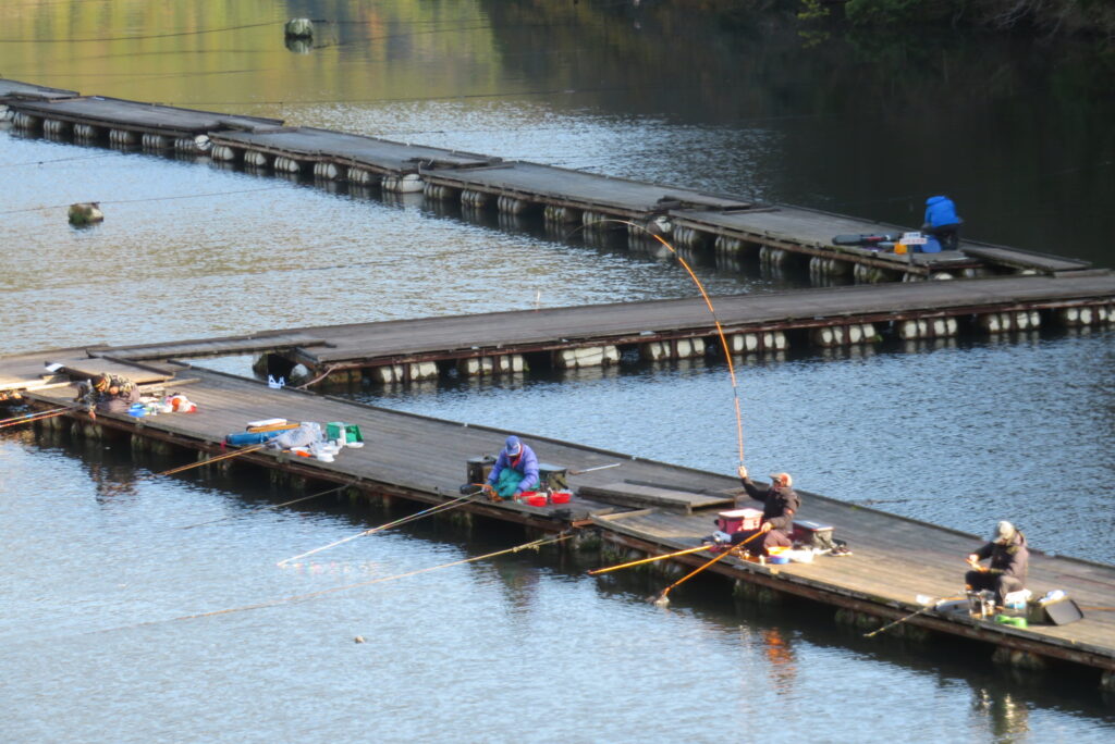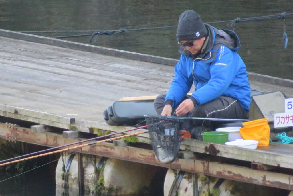 満水・晴れ・無風で穏やかな1日でした。枚方の渕田様3-5号桟橋道路向き・竿28.5尺・床グルテンセットで24㎝~41.8㎝を29枚、4-1号桟橋道路向き・竿21尺・床両グルで28㎝~36㎝を28枚、4-1号桟橋道路向き・竿16.5尺・段床で30㎝~36㎝を20枚、そのほかのお客様も数枚~17枚の釣果でした。朝一は3℃程度まで冷え込んだため釣れ出しは少し遅めでしたが、1日を通してアタリは継続しました。ウキ周りの浅棚に多くのヘラブナが寄っていた箇所もあり、短竿・セットであれば数釣りができた感じでした。明日14日(日)は、4-1号桟橋及び4-2号桟橋について例会予約が入っていますのでご承知をお願いします。本日もお越しいただき、ありがとうございました。