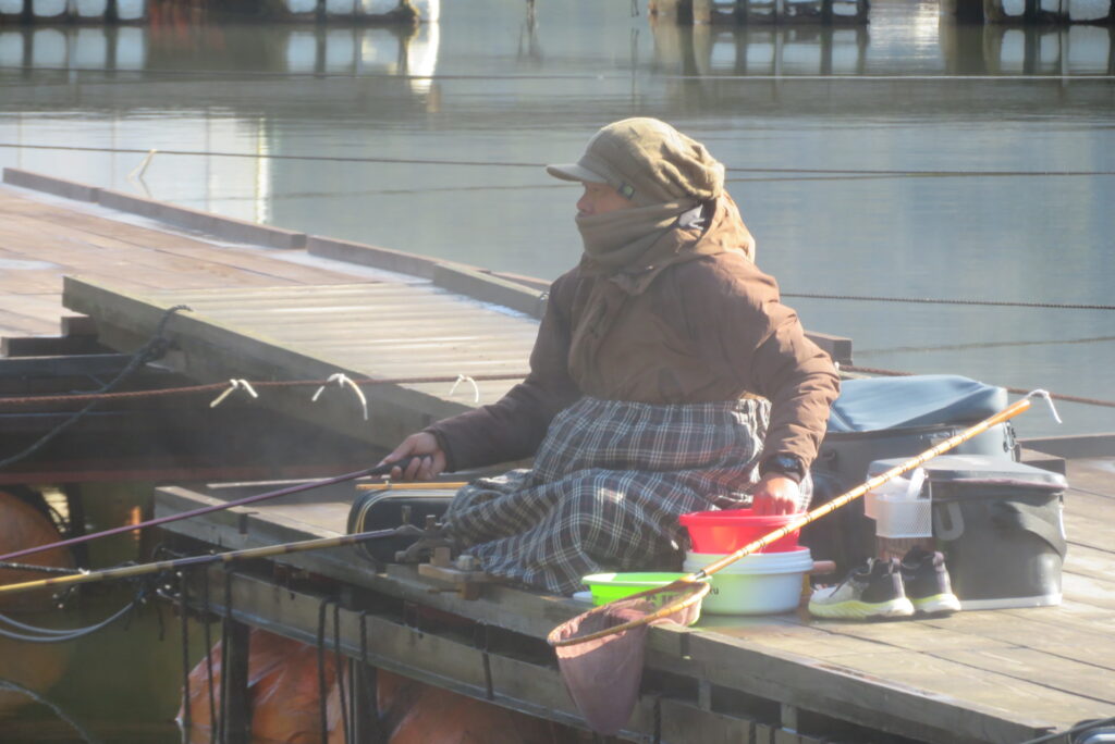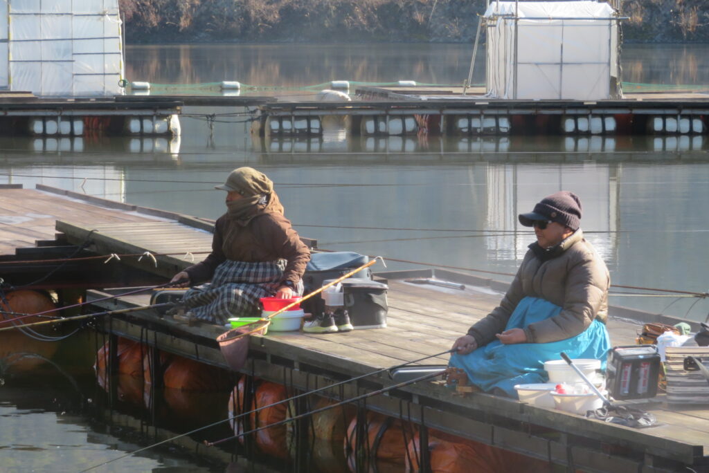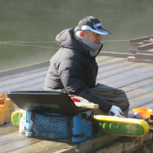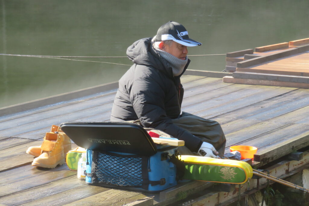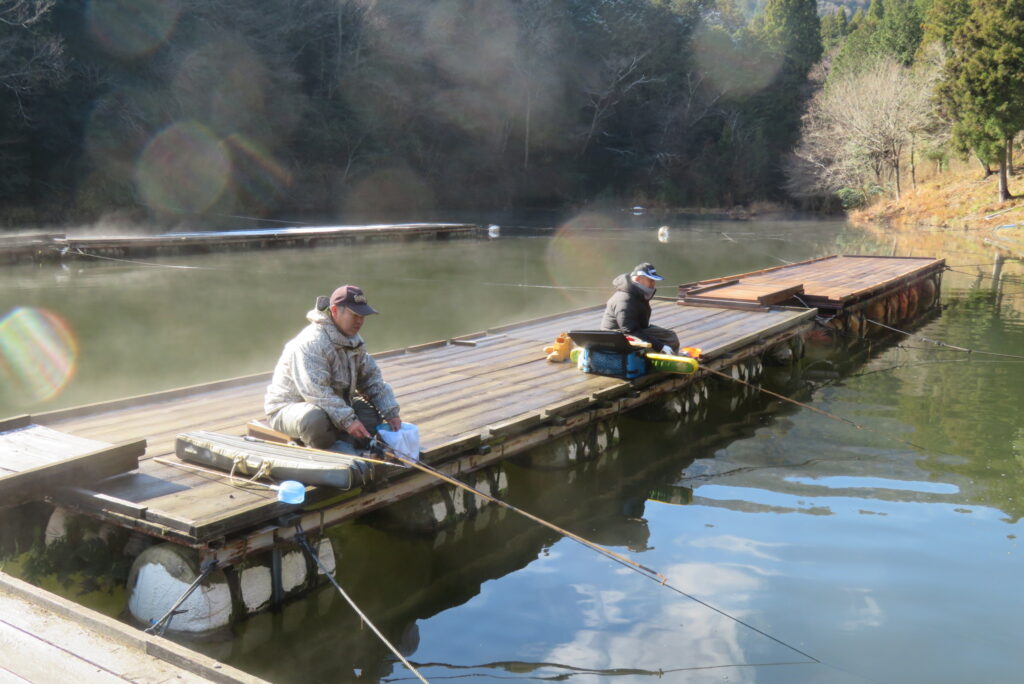 満水・晴れのち曇り・無風で穏やかな1日でした。大阪の福田様2-2号桟橋・竿15尺・セットで32㎝~38㎝を24枚、8-1号桟橋・竿11尺・セットで36㎝~40㎝を21枚、そのほかにも2号桟橋の短竿・セットのお客様で30枚程度のお客様もありました。2号桟橋・8号桟橋ともエサ周りには多くのヘラブナが目視できアタリも多くありましたが、空ツンが多く難しい釣りでした。今日も8号桟橋は良型ヘラブナが好釣で、40㎝超も釣れました。池周辺道路・桟橋上には雪は全くありませんが、早朝は冷えますので、防寒対策をお願いします。本日もお越しいただき、ありがとうございました。