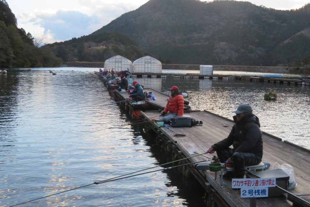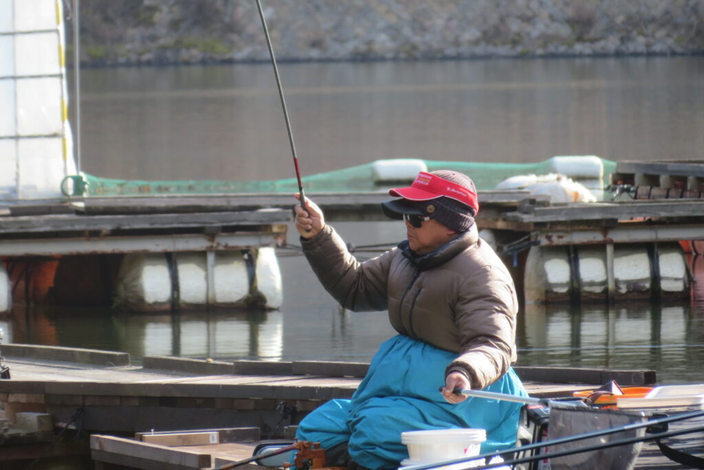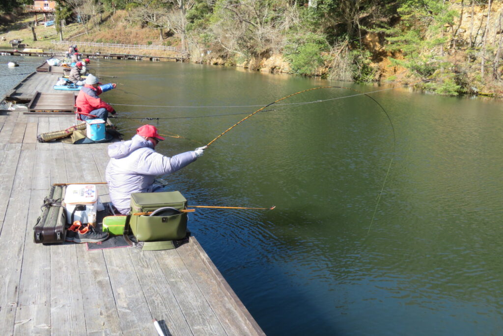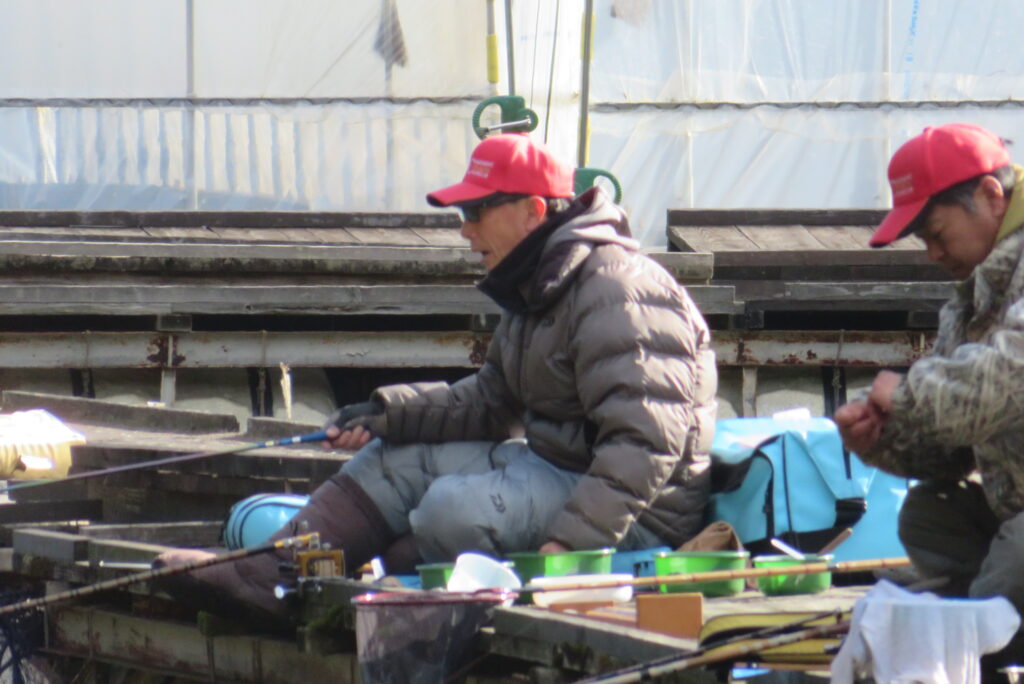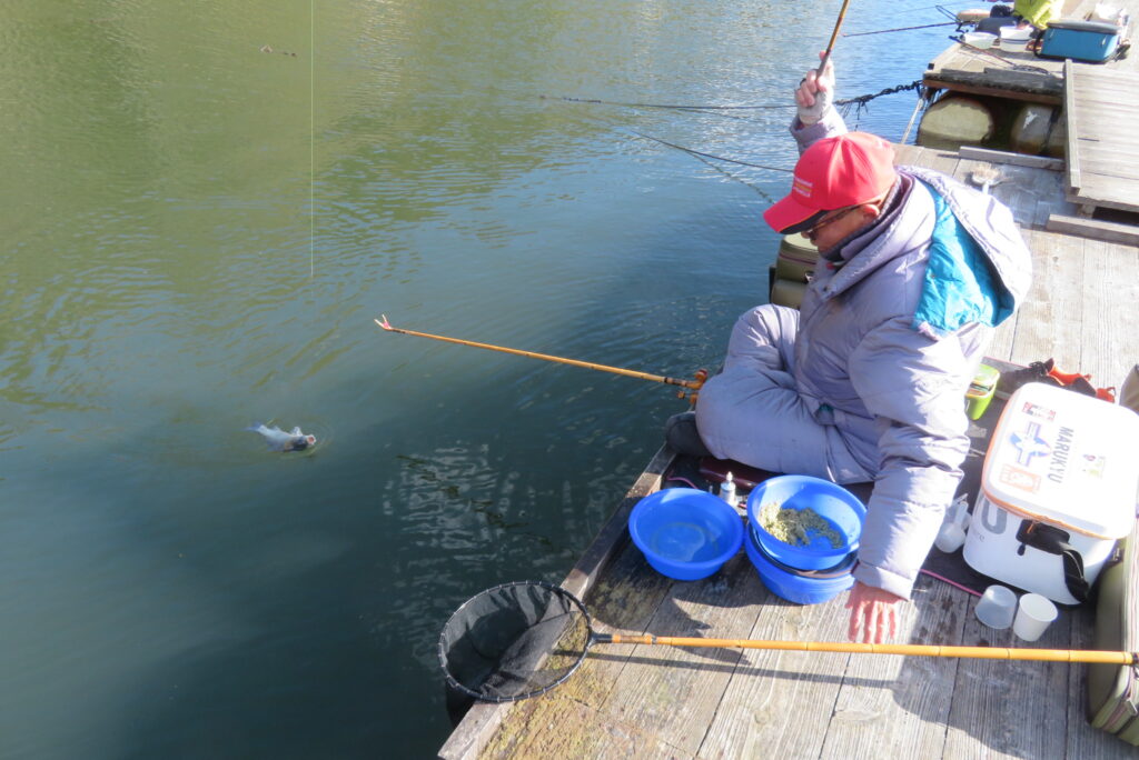 満水・晴れ一時曇り・弱風一時強風で寒い1日でした。今日は強風・降雪予報だったこともあり、例会1組様の貸し切りでした。釣り始めから納竿まで時折雪が舞うこともありましたが、晴れ空の時間帯が多く、風も一時強風程度の風で、納竿15時まで釣りができました。2号桟橋で長谷大池へら鮒フィッシングクラブ様の例会があり、3枚長寸で競われました。優勝は111.1㎝(39.5㎝、35.9㎝、35.7㎝)のお客様でした。おめでとうございます。最長寸は39.5㎝、最多釣果は19枚でした。当池のご利用ありがとうございました。16時現在、池周辺道路・桟橋上に積雪はありません。また、天気も晴れですが、夕方から明日早朝にかけて降雪予報も出ていますので、お越し予定のお客様は最新の気象情報・道路情報をご確認ください。本日もお越しいただき、ありがとうございました。