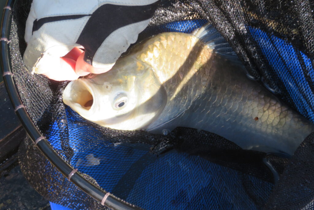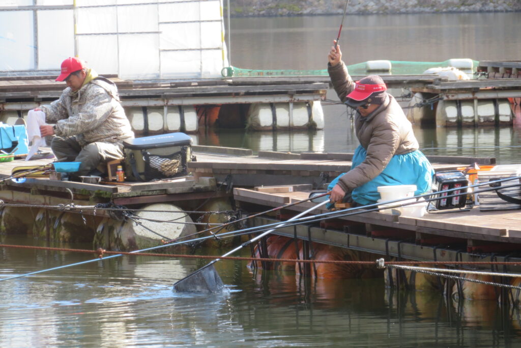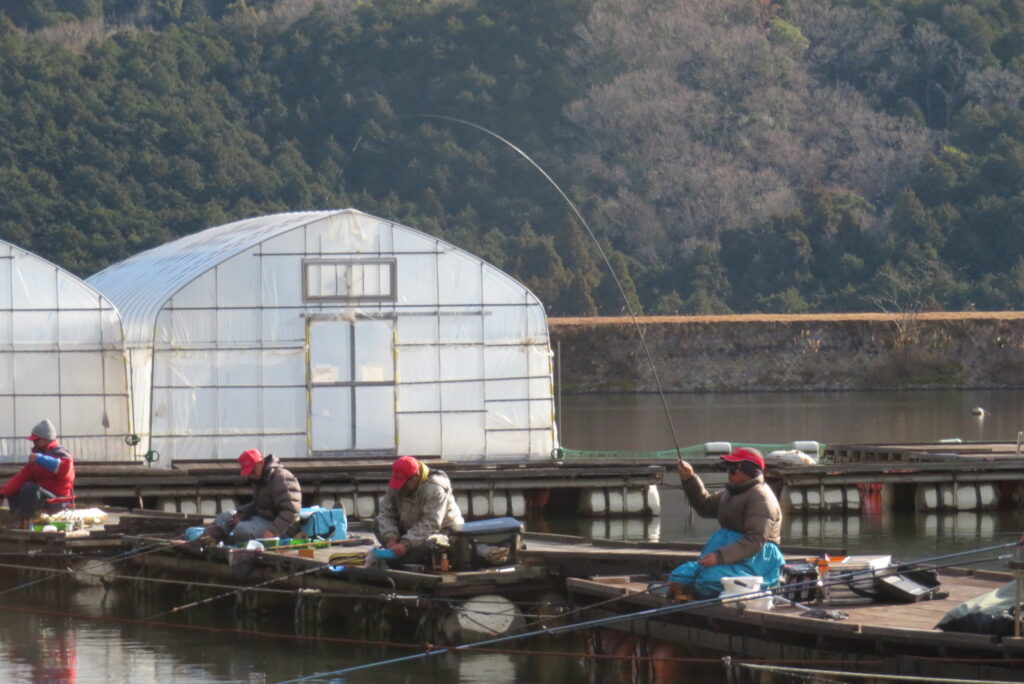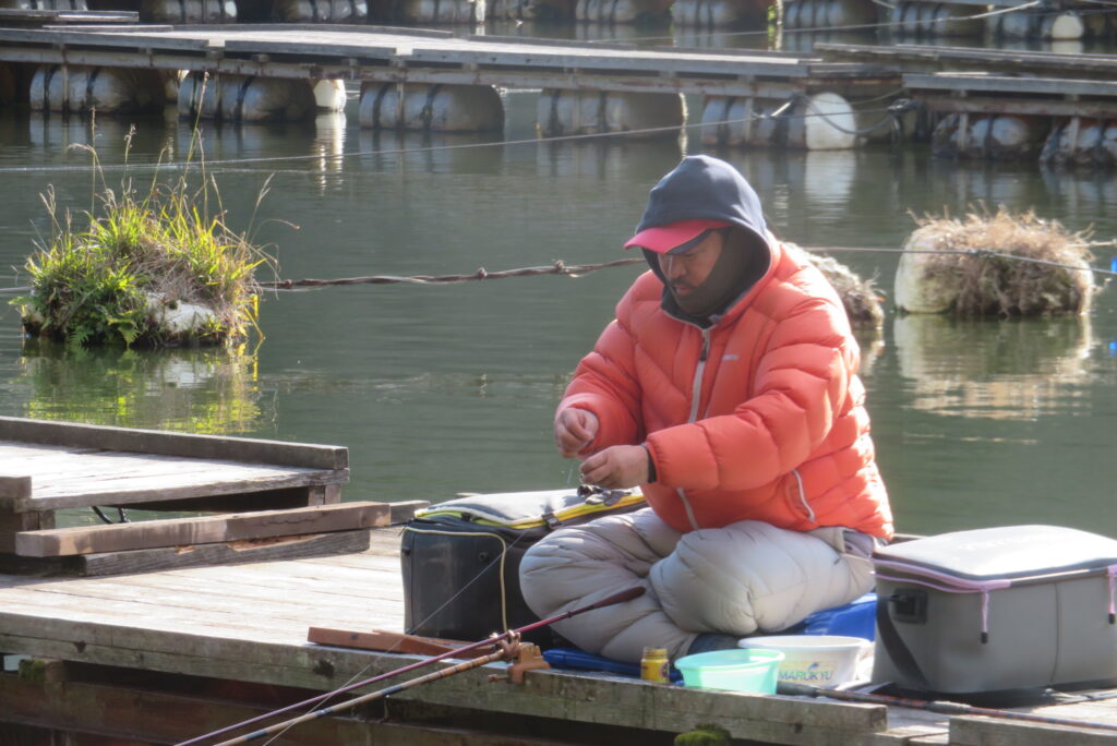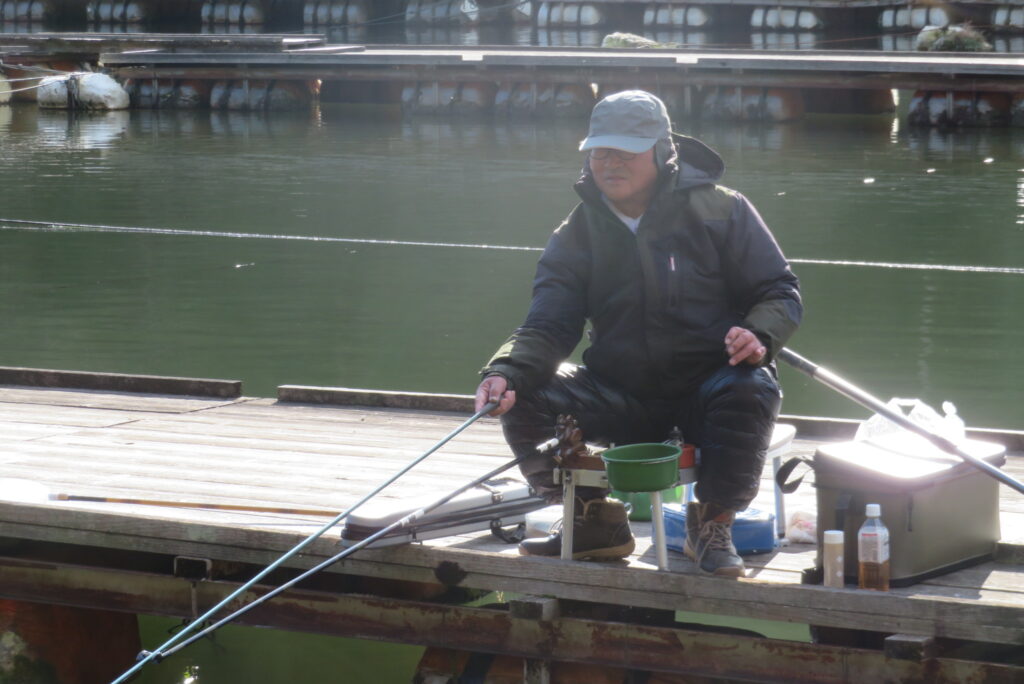 満水・晴れ一時曇り・弱風一時強風で寒い1日でした。今日は強風・降雪予報だったこともあり、例会1組様の貸し切りでした。釣り始めから納竿まで時折雪が舞うこともありましたが、晴れ空の時間帯が多く、風も一時強風程度の風で、納竿15時まで釣りができました。2号桟橋で長谷大池へら鮒フィッシングクラブ様の例会があり、3枚長寸で競われました。優勝は111.1㎝(39.5㎝、35.9㎝、35.7㎝)のお客様でした。おめでとうございます。最長寸は39.5㎝、最多釣果は19枚でした。当池のご利用ありがとうございました。16時現在、池周辺道路・桟橋上に積雪はありません。また、天気も晴れですが、夕方から明日早朝にかけて降雪予報も出ていますので、お越し予定のお客様は最新の気象情報・道路情報をご確認ください。本日もお越しいただき、ありがとうございました。