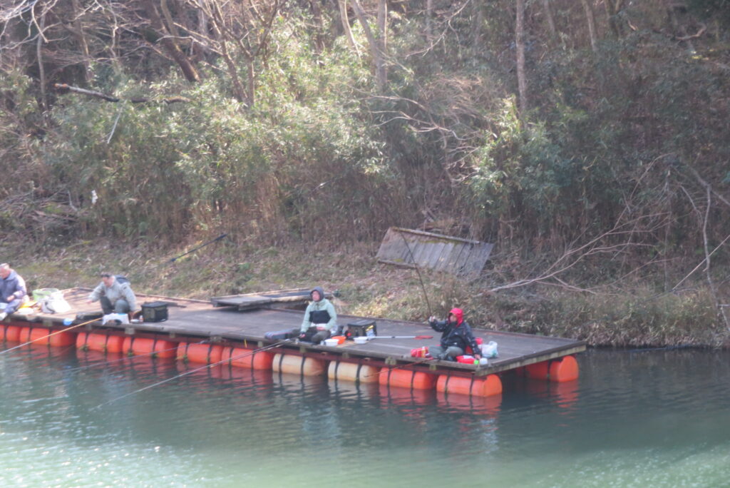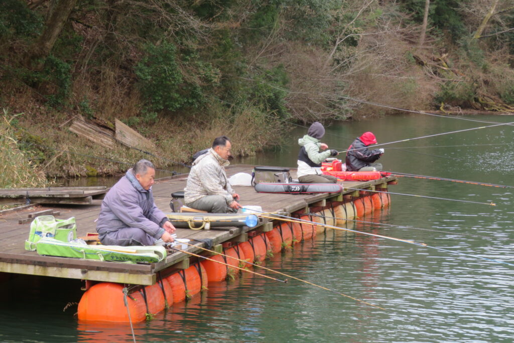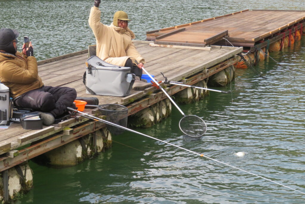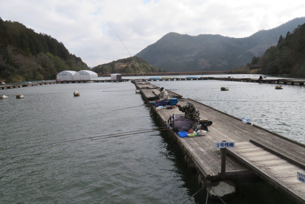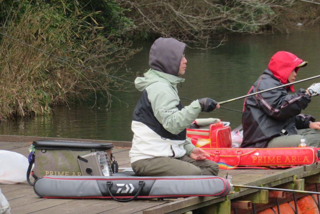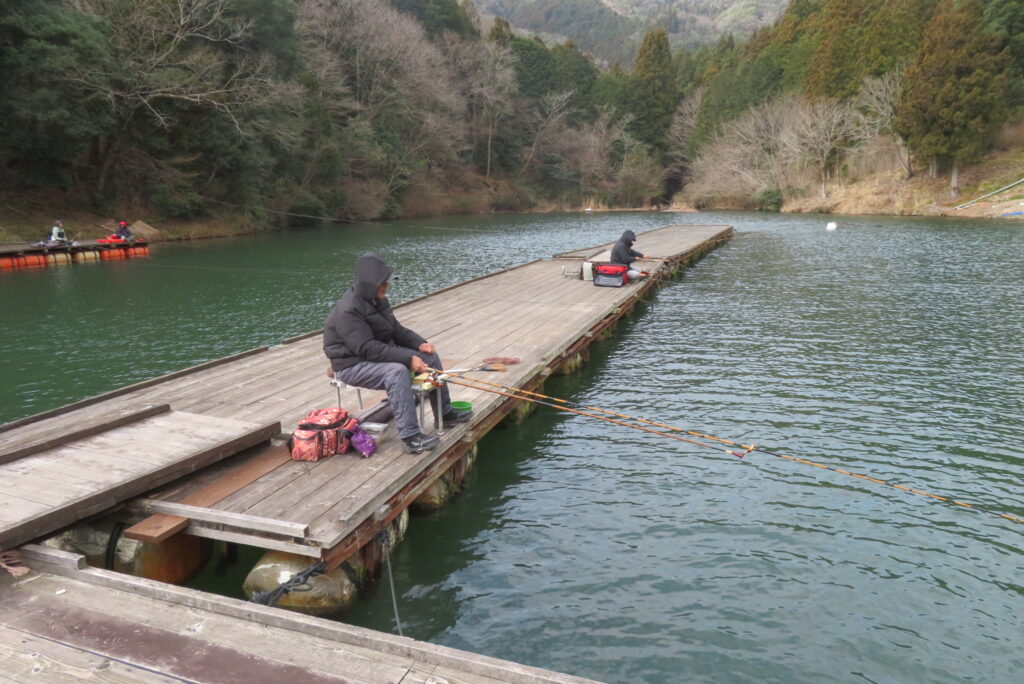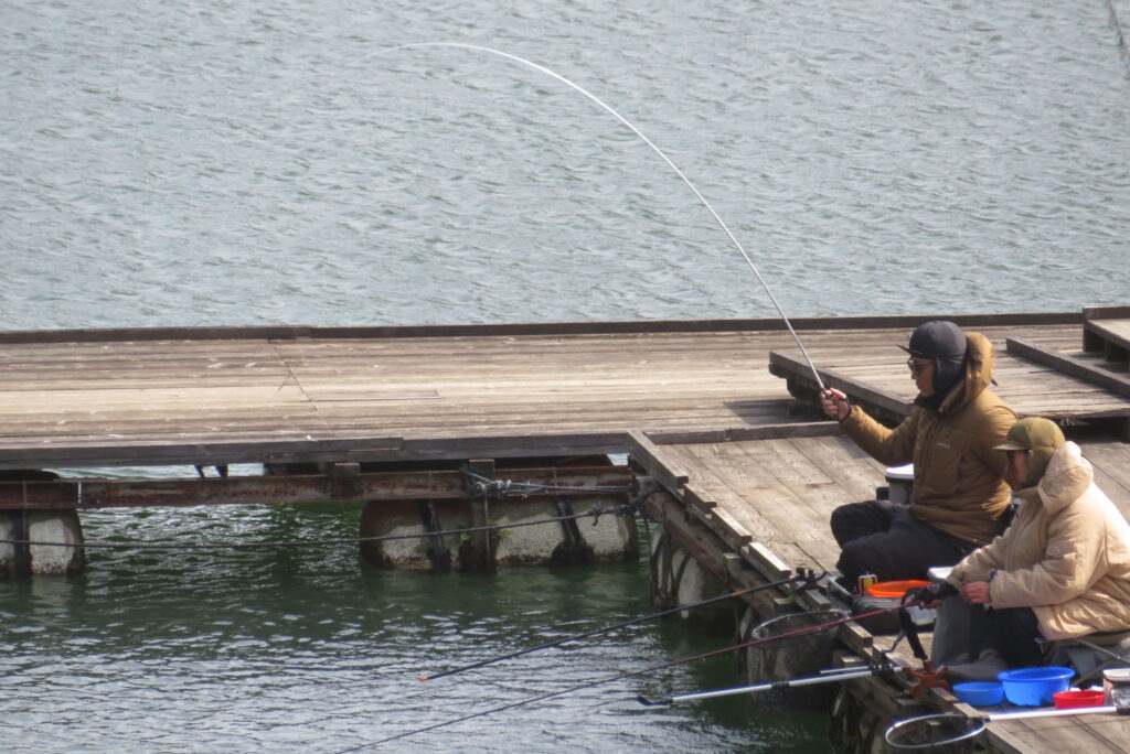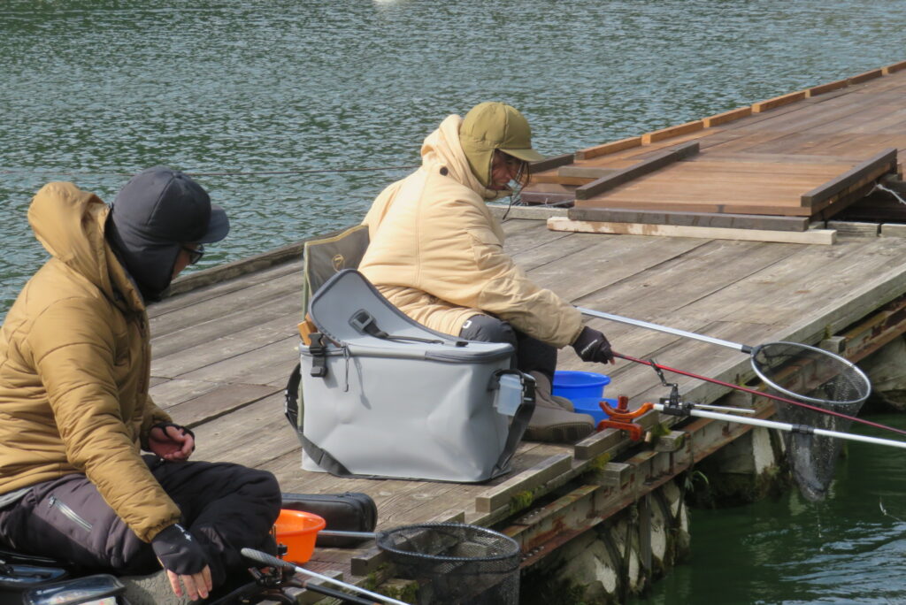 満水・曇りのち晴れ・強風で寒い1日でした。京都の林様2-2号桟橋・竿13.5尺・ウドンセットで28㎝~38㎝を24枚、5-1号桟橋・竿22.5尺・床両グルで32㎝~36㎝を23枚、8-1号桟橋・竿13.5尺、10.5尺・ウドンセットで30㎝~38㎝を23枚、7号桟橋・竿21尺・床グルダンゴで28㎝~38㎝を22枚、そのほかのお客様も数枚~20枚前後の釣果でした。今日は朝から定刻納竿時刻まで強風が吹き続け、難しい釣り条件でした。強風で桟橋が動き、ウキも揺れ揺れでアタリが出ず苦戦でした。しかし、宙釣り・床釣りともヘラブナの活性は高いようで、風が止んだタイミングでバタバタと釣れました。穏やかな釣り日和であれば数釣りできそうな感じでした。3月になり、少しずつですが春の足音が聞こえ始めました。今後、池水温が上がってくれば釣果も伸びてくると思います。本日もお越しいただき、ありがとうございました。