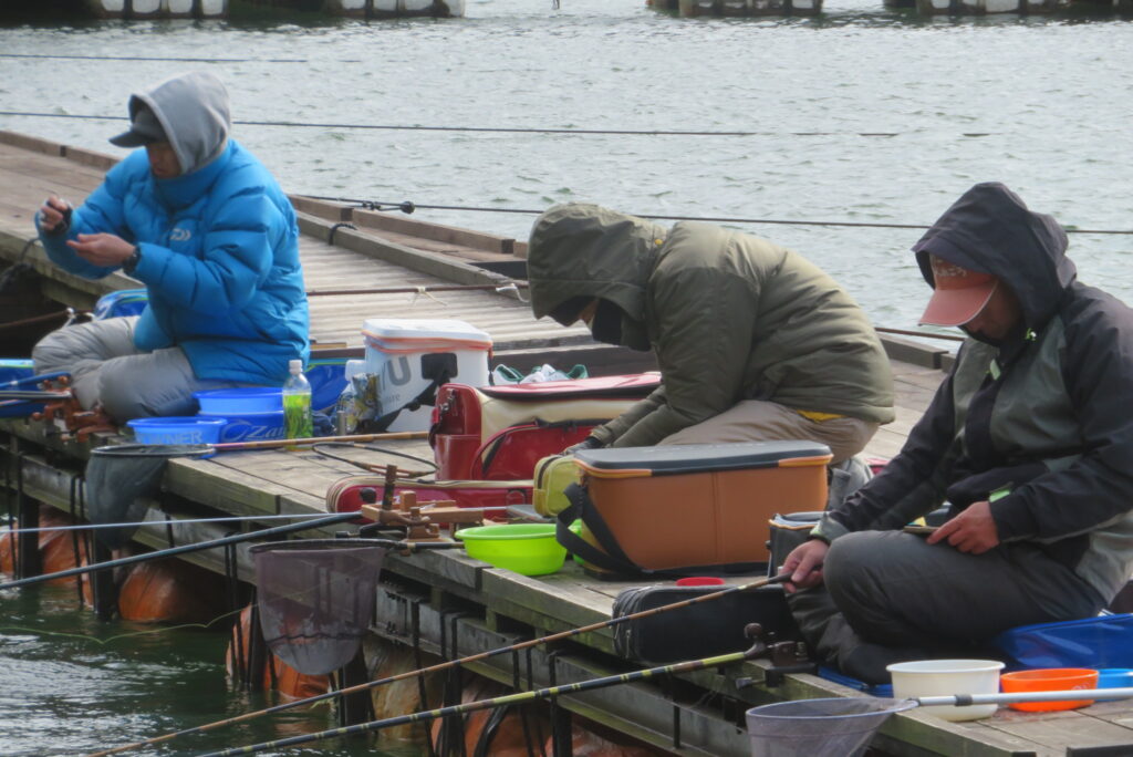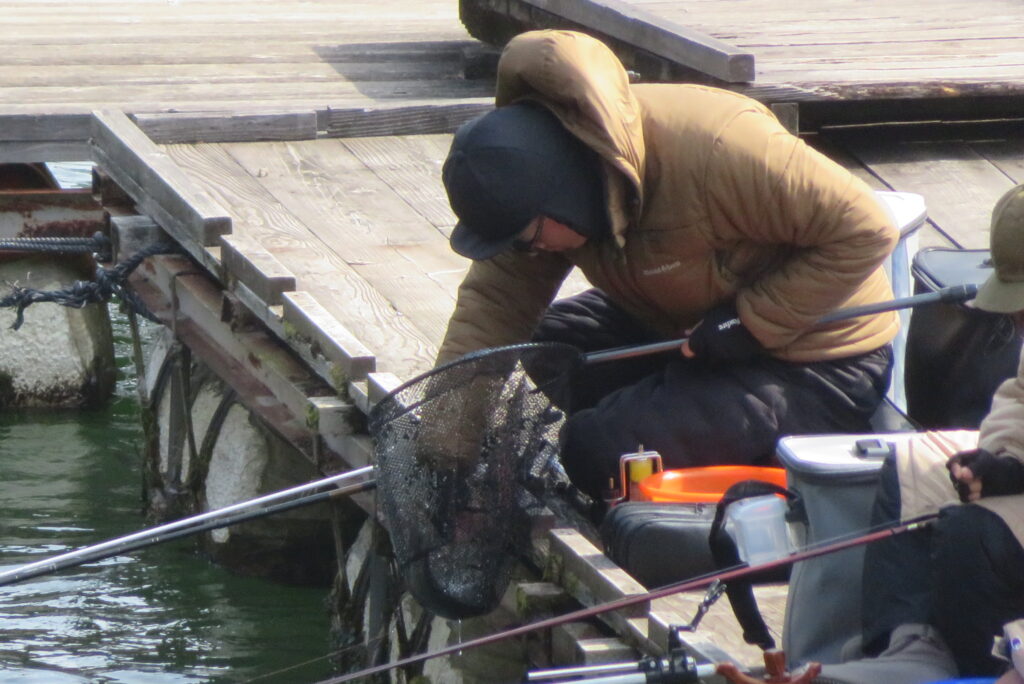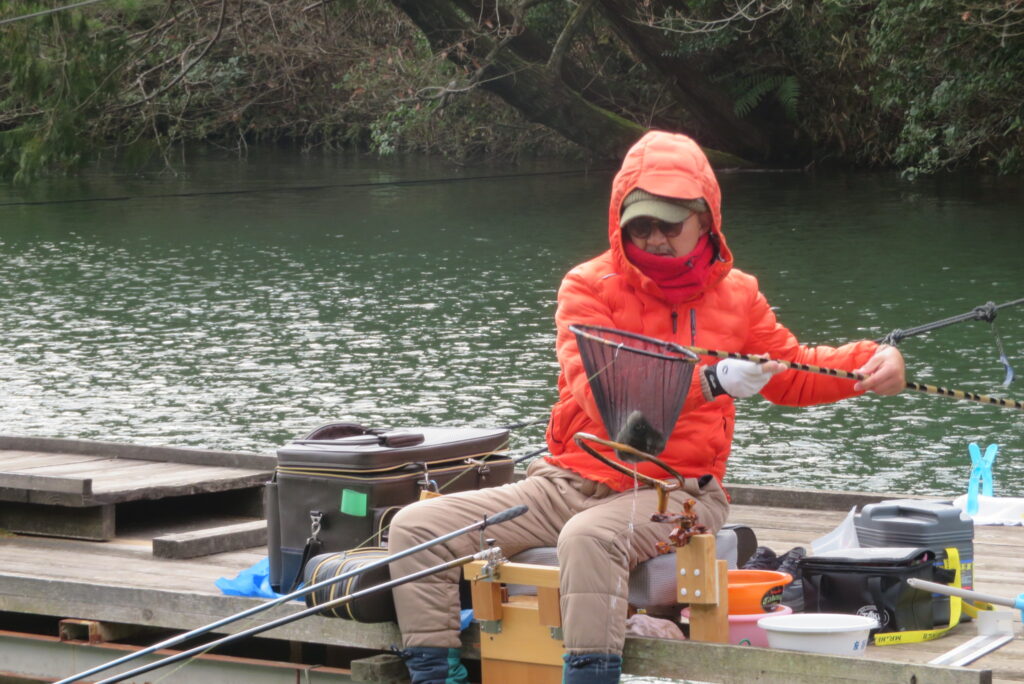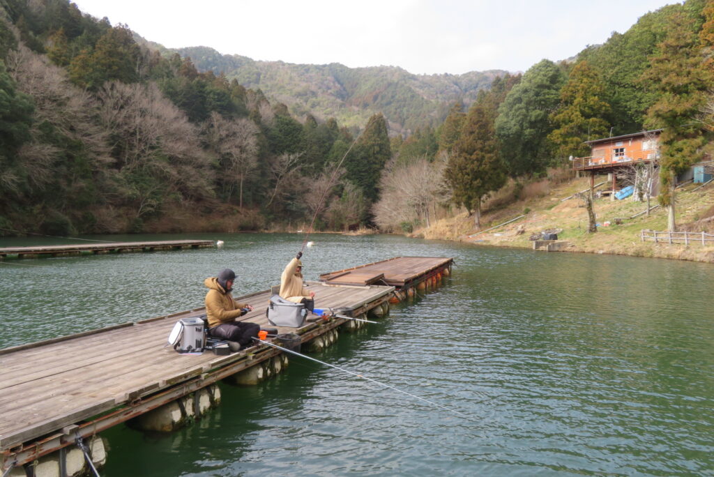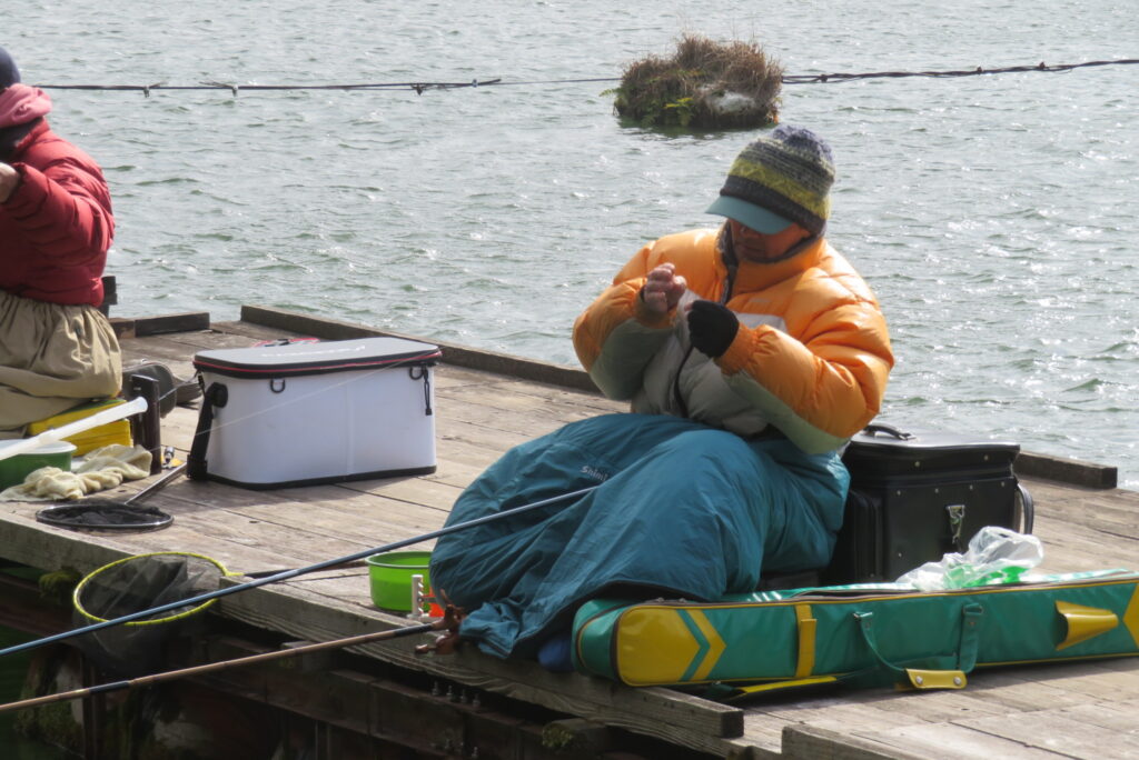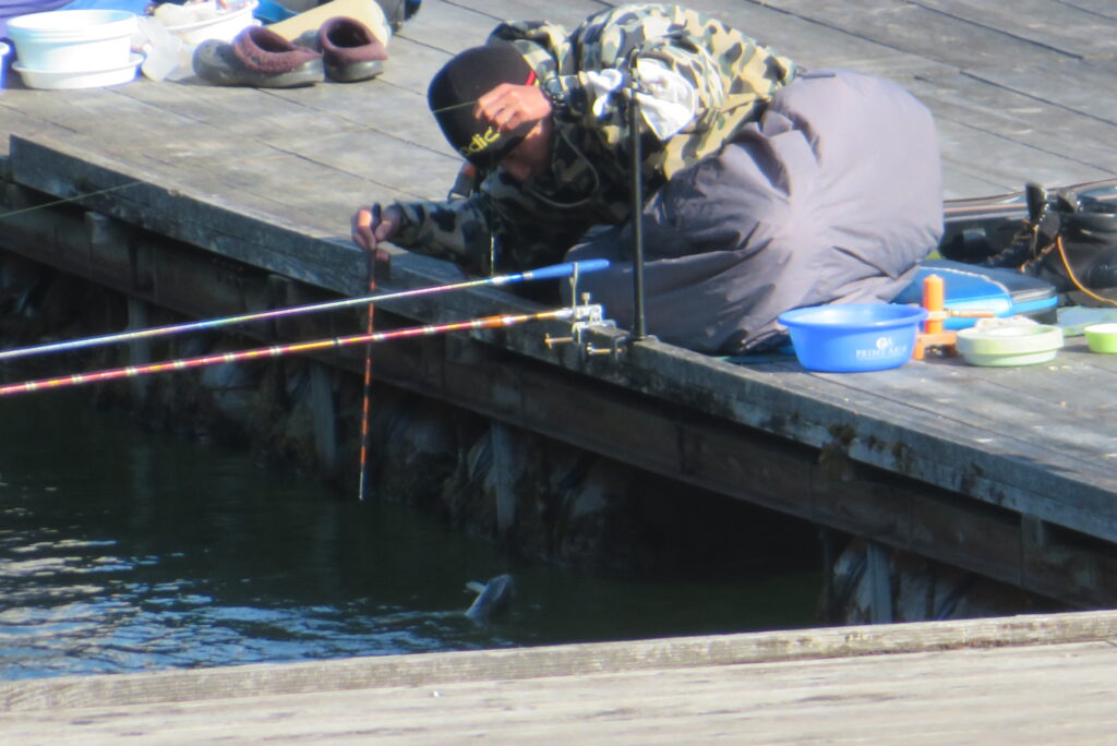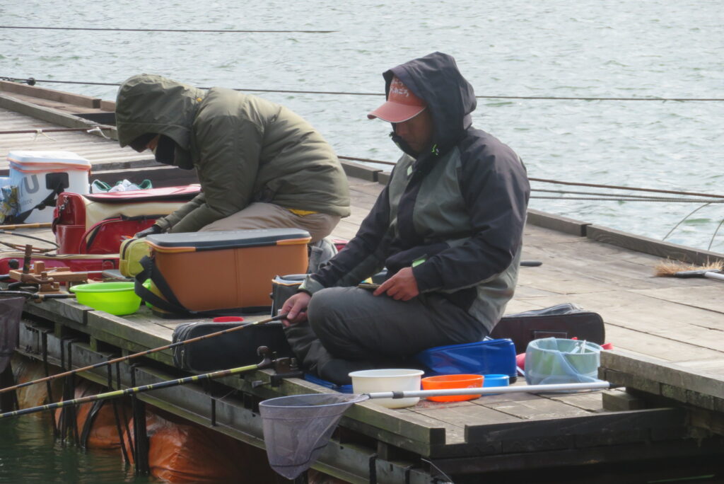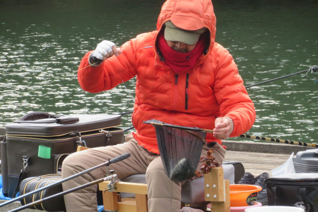 満水・曇りのち晴れ・強風で寒い1日でした。京都の林様2-2号桟橋・竿13.5尺・ウドンセットで28㎝~38㎝を24枚、5-1号桟橋・竿22.5尺・床両グルで32㎝~36㎝を23枚、8-1号桟橋・竿13.5尺、10.5尺・ウドンセットで30㎝~38㎝を23枚、7号桟橋・竿21尺・床グルダンゴで28㎝~38㎝を22枚、そのほかのお客様も数枚~20枚前後の釣果でした。今日は朝から定刻納竿時刻まで強風が吹き続け、難しい釣り条件でした。強風で桟橋が動き、ウキも揺れ揺れでアタリが出ず苦戦でした。しかし、宙釣り・床釣りともヘラブナの活性は高いようで、風が止んだタイミングでバタバタと釣れました。穏やかな釣り日和であれば数釣りできそうな感じでした。3月になり、少しずつですが春の足音が聞こえ始めました。今後、池水温が上がってくれば釣果も伸びてくると思います。本日もお越しいただき、ありがとうございました。