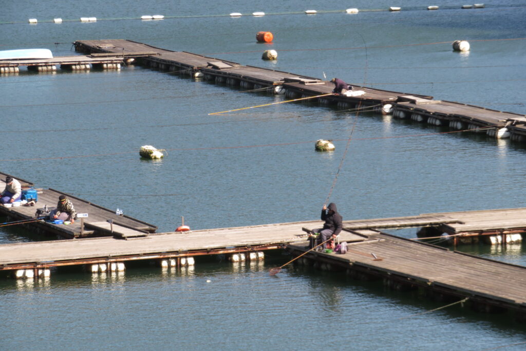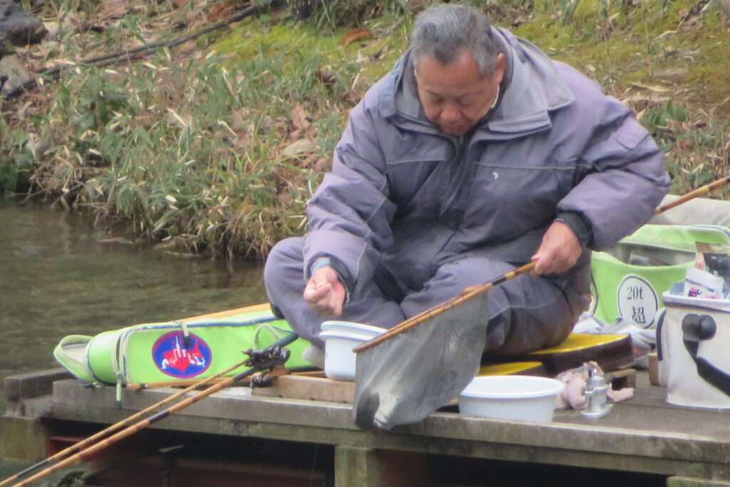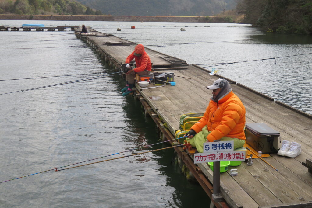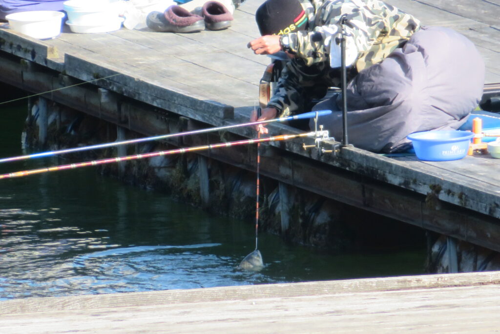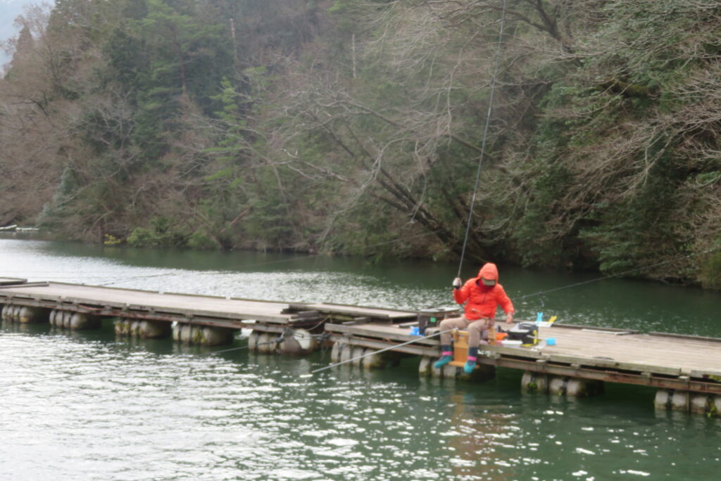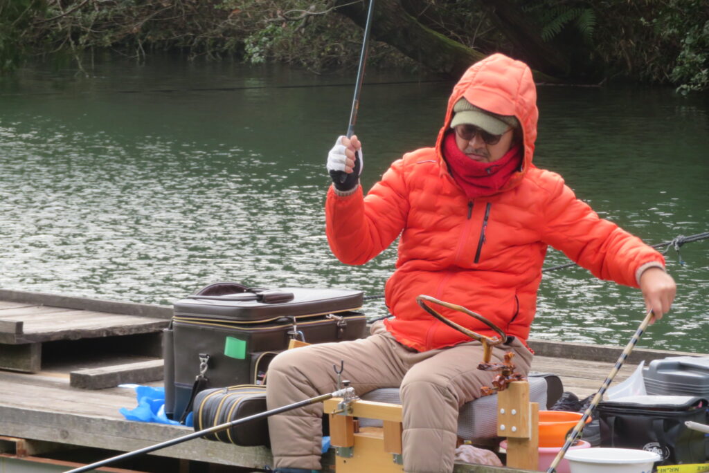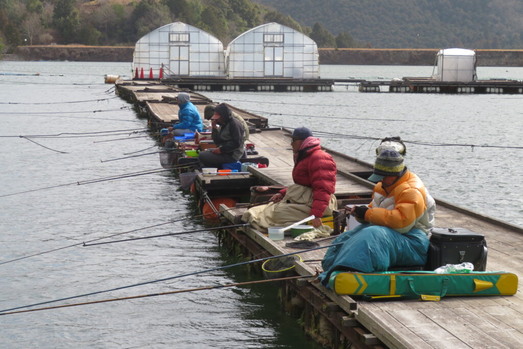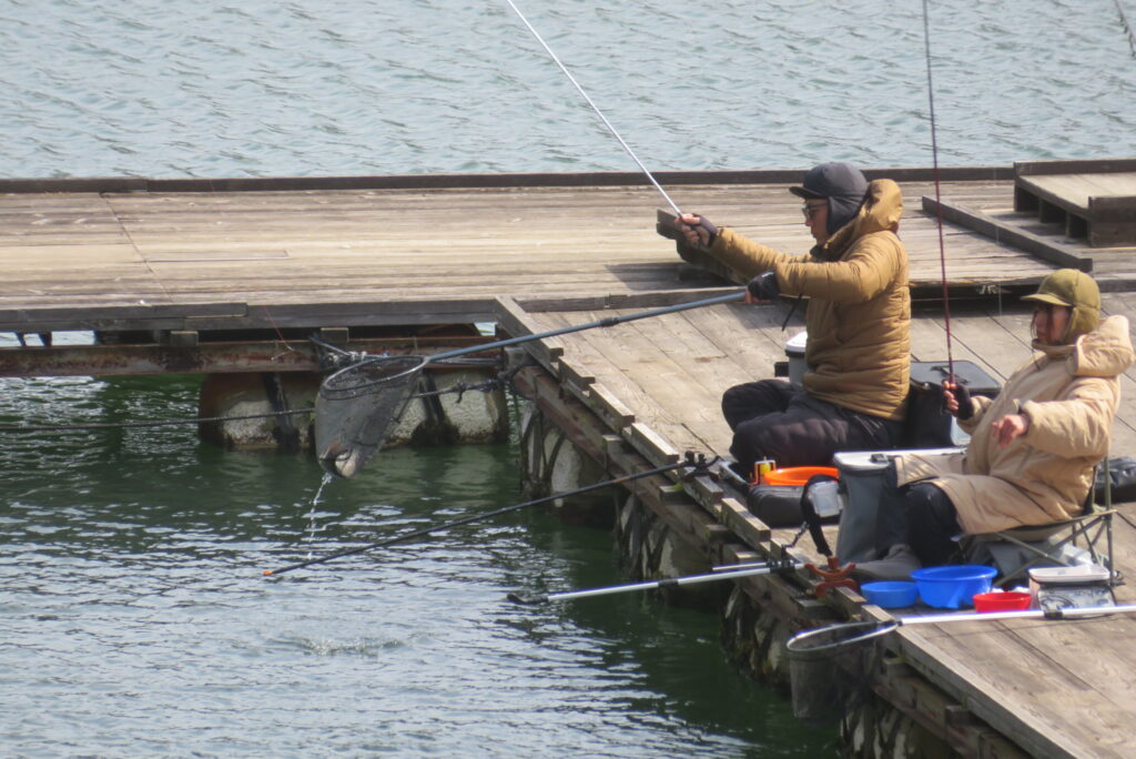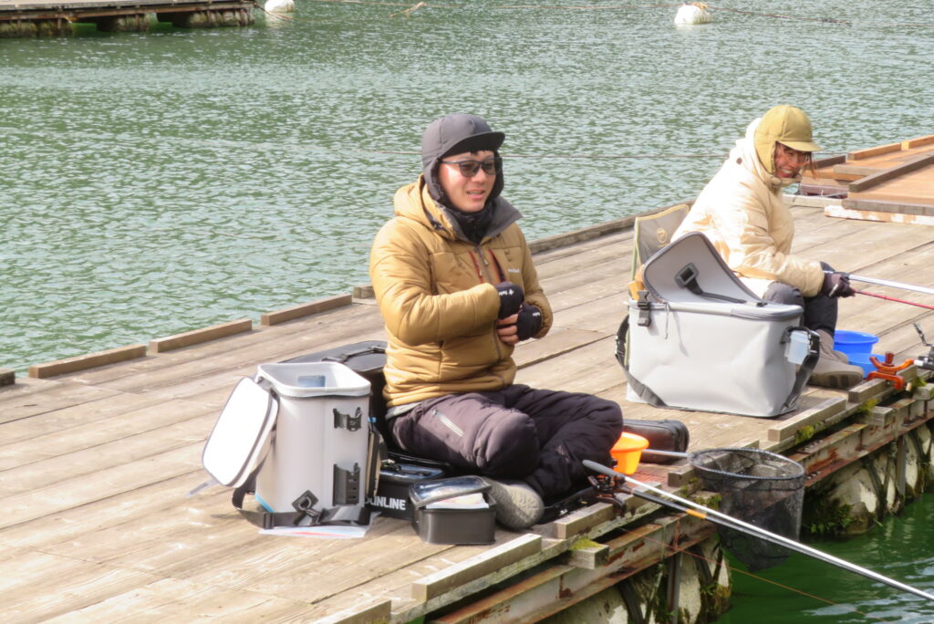 満水・曇りのち晴れ・強風で寒い1日でした。京都の林様2-2号桟橋・竿13.5尺・ウドンセットで28㎝~38㎝を24枚、5-1号桟橋・竿22.5尺・床両グルで32㎝~36㎝を23枚、8-1号桟橋・竿13.5尺、10.5尺・ウドンセットで30㎝~38㎝を23枚、7号桟橋・竿21尺・床グルダンゴで28㎝~38㎝を22枚、そのほかのお客様も数枚~20枚前後の釣果でした。今日は朝から定刻納竿時刻まで強風が吹き続け、難しい釣り条件でした。強風で桟橋が動き、ウキも揺れ揺れでアタリが出ず苦戦でした。しかし、宙釣り・床釣りともヘラブナの活性は高いようで、風が止んだタイミングでバタバタと釣れました。穏やかな釣り日和であれば数釣りできそうな感じでした。3月になり、少しずつですが春の足音が聞こえ始めました。今後、池水温が上がってくれば釣果も伸びてくると思います。本日もお越しいただき、ありがとうございました。