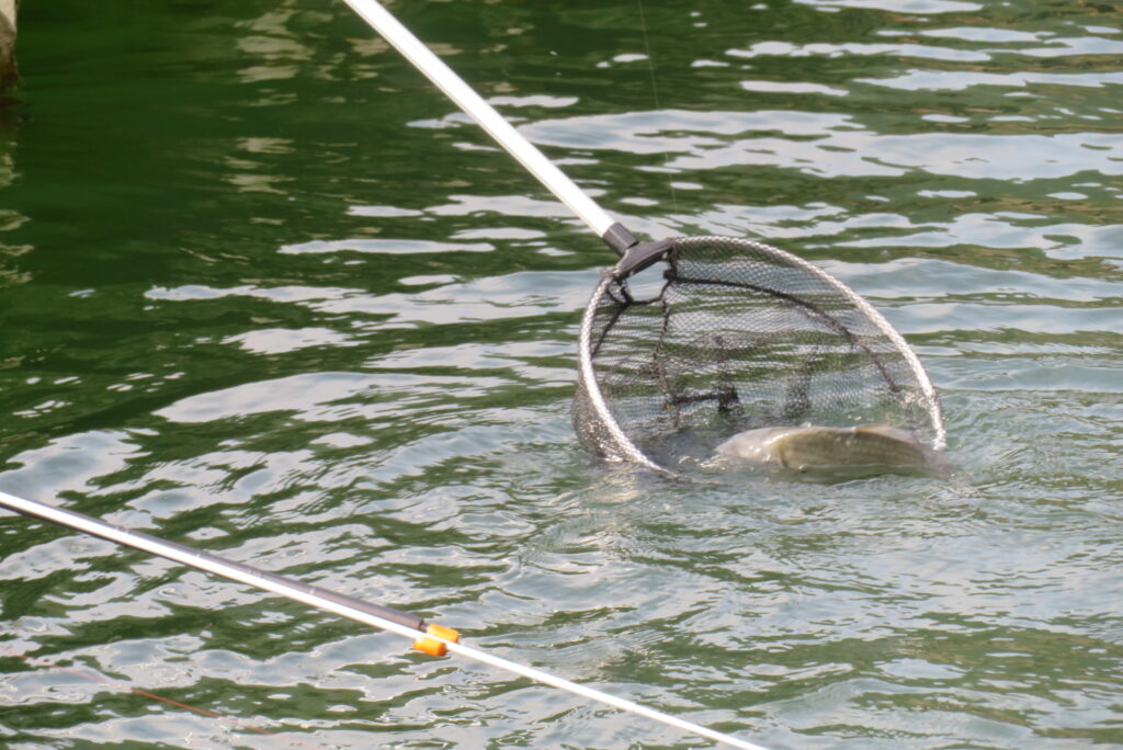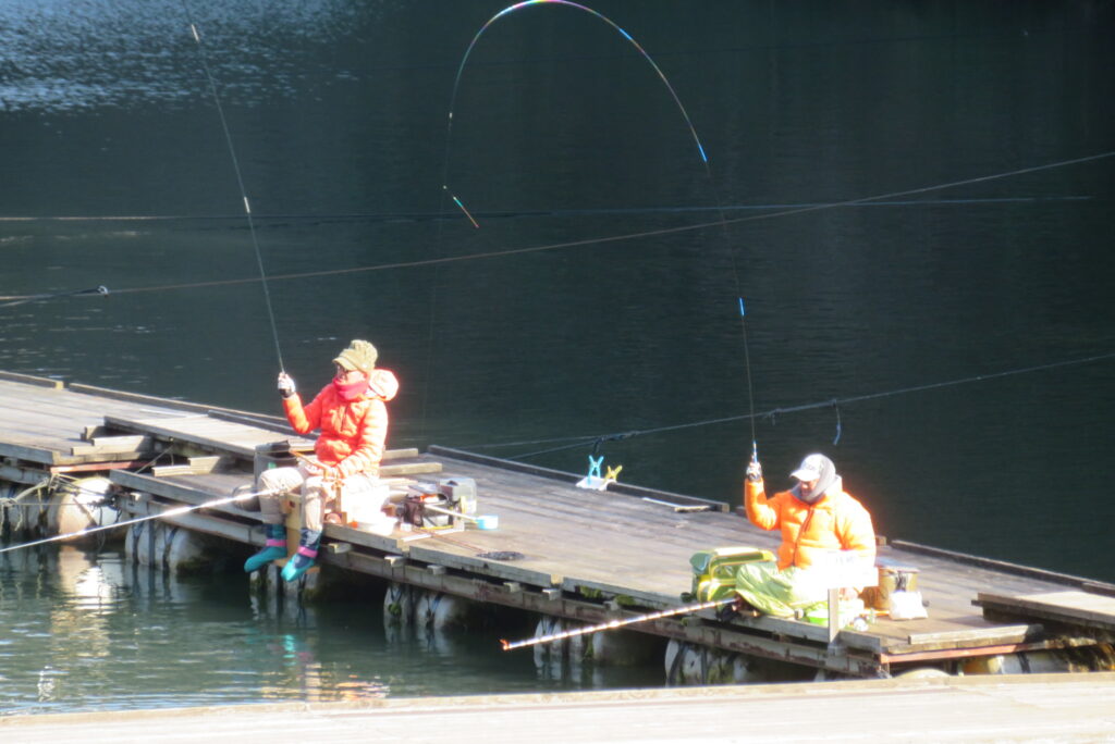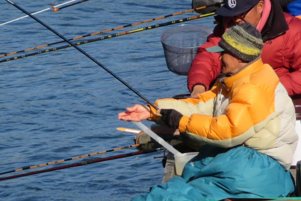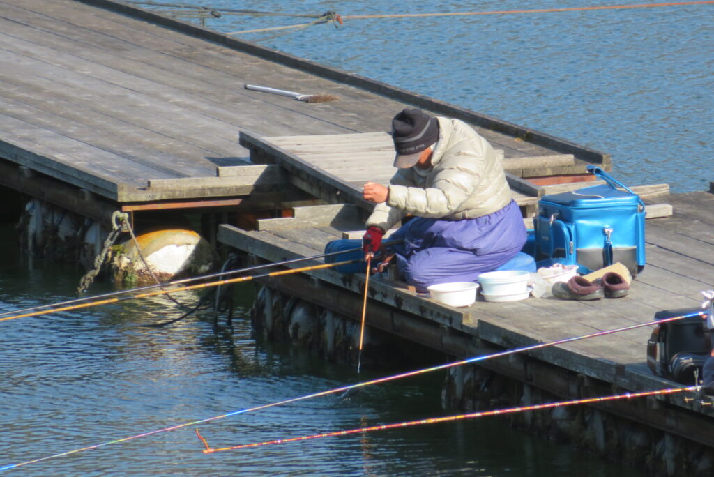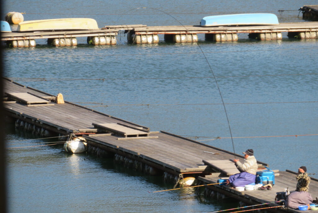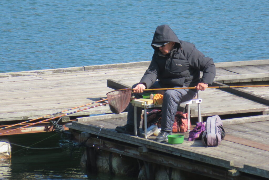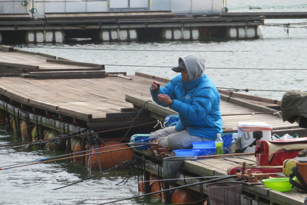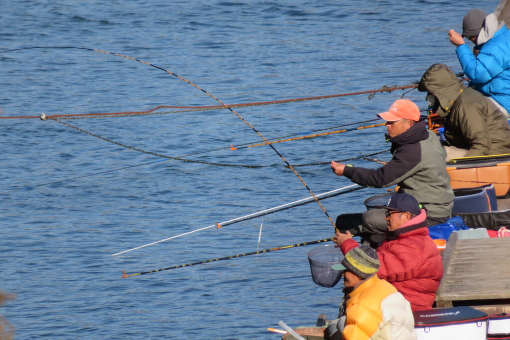 満水・曇りのち晴れ・強風で寒い1日でした。京都の林様2-2号桟橋・竿13.5尺・ウドンセットで28㎝~38㎝を24枚、5-1号桟橋・竿22.5尺・床両グルで32㎝~36㎝を23枚、8-1号桟橋・竿13.5尺、10.5尺・ウドンセットで30㎝~38㎝を23枚、7号桟橋・竿21尺・床グルダンゴで28㎝~38㎝を22枚、そのほかのお客様も数枚~20枚前後の釣果でした。今日は朝から定刻納竿時刻まで強風が吹き続け、難しい釣り条件でした。強風で桟橋が動き、ウキも揺れ揺れでアタリが出ず苦戦でした。しかし、宙釣り・床釣りともヘラブナの活性は高いようで、風が止んだタイミングでバタバタと釣れました。穏やかな釣り日和であれば数釣りできそうな感じでした。3月になり、少しずつですが春の足音が聞こえ始めました。今後、池水温が上がってくれば釣果も伸びてくると思います。本日もお越しいただき、ありがとうございました。