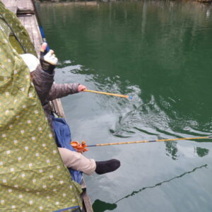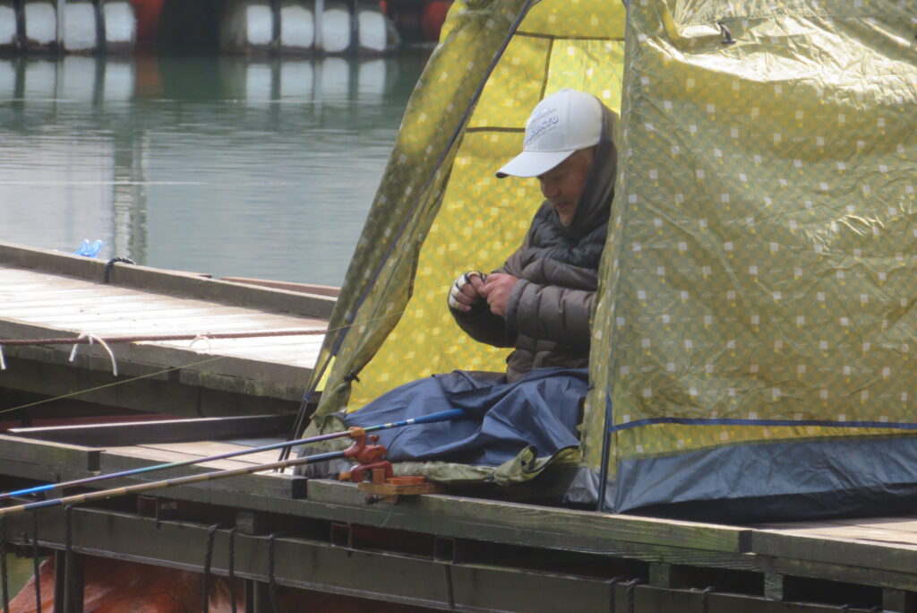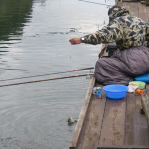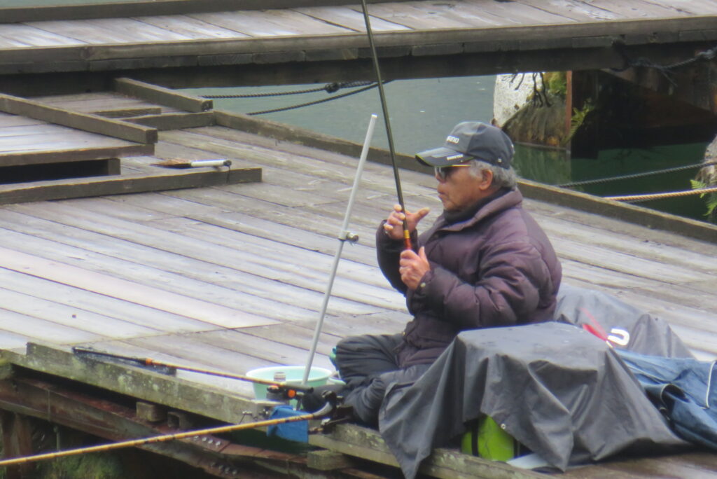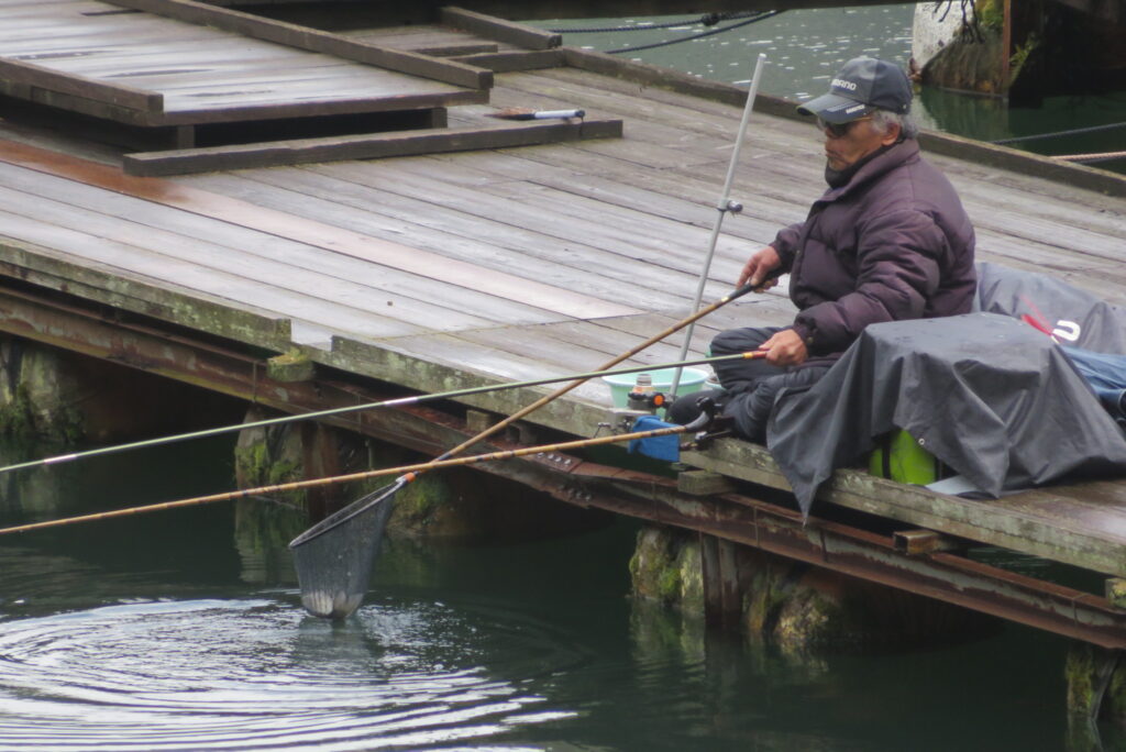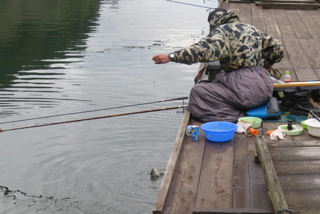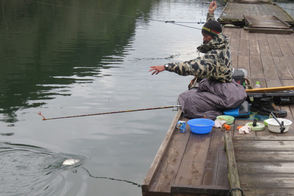 満水・時雨(2時間に1回位、晴れ、曇り、雨の繰り返し)・無風(降雨時は強風)で荒れた天気の1日でした。京都の林様2-2号桟橋・竿15尺・宙両グルで27㎝~37㎝を29枚、4号桟橋の床釣りのお客様も良く釣れていました。今朝の時雨は激しく、アラレ混じりで横殴りの雨風でした。このタイミングで2名様が早仕舞いされました。その後は天気が回復しましたが、2時間に1回位の時雨が夕方までありました。明日8日(日)は、2-1号桟橋~2-6号桟橋まで例会予約が入っていますので、ご承知をお願いします。本日もお越しいただき、ありがとうございました。