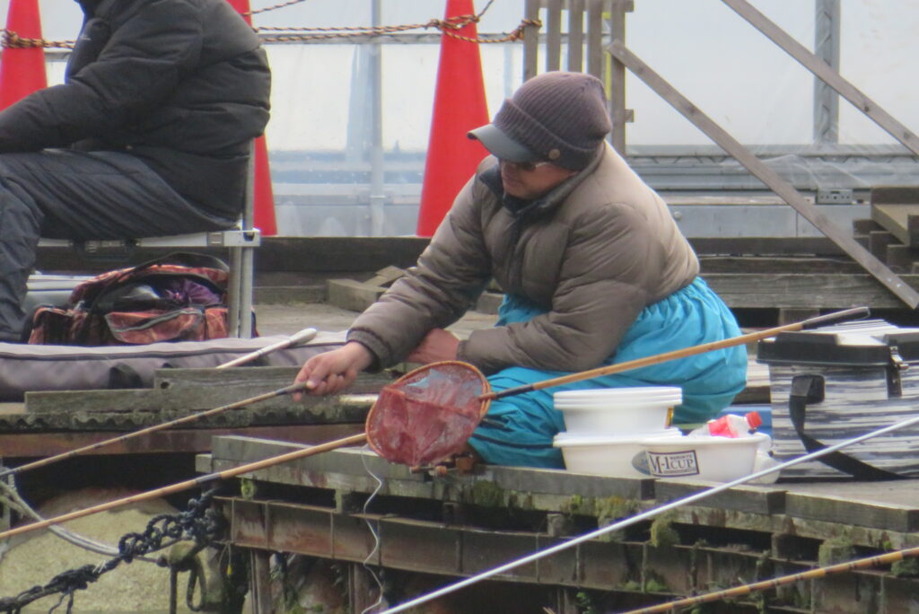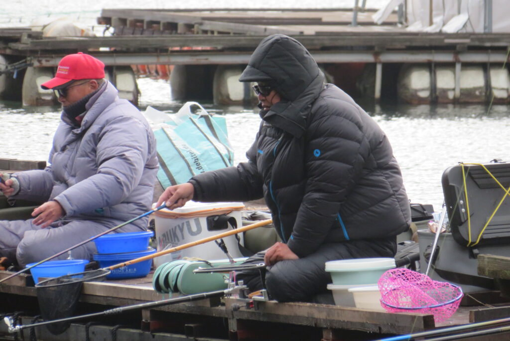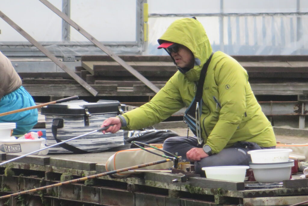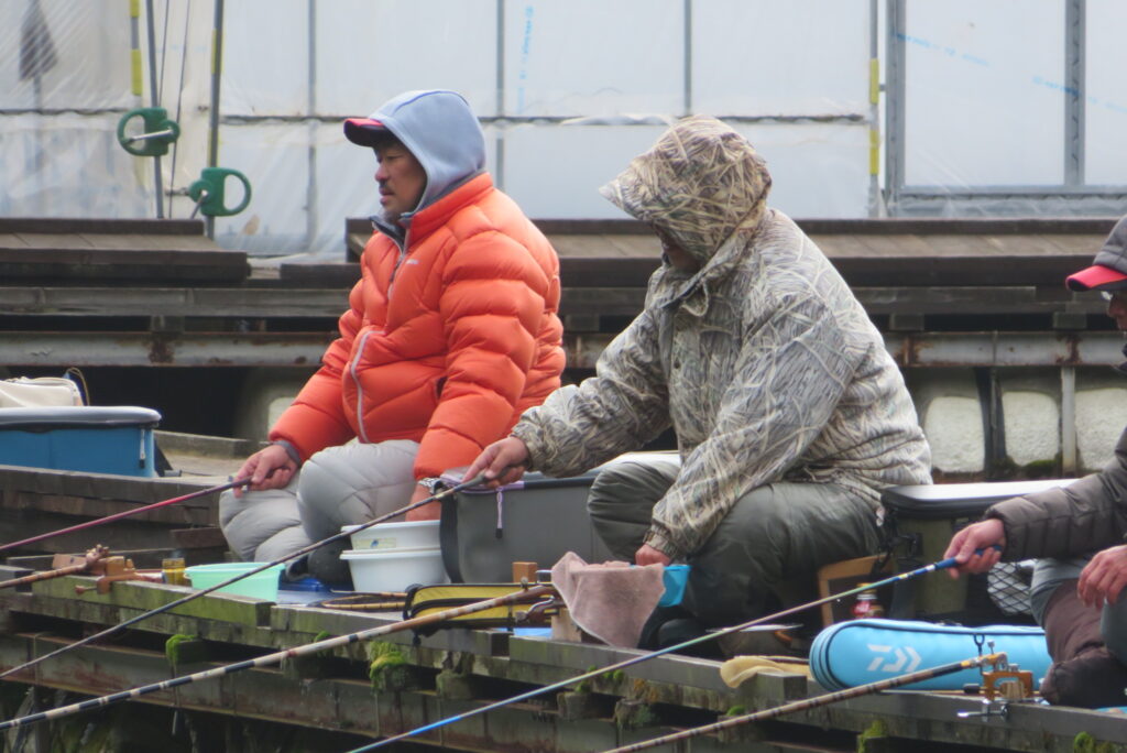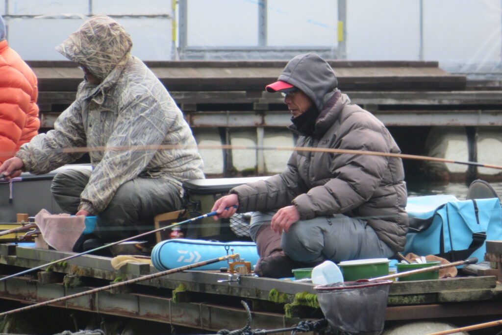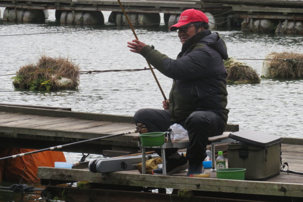 満水・小雨(雪)のち曇り・弱風で寒い1日でした。今朝は真冬の冷え込みで、朝一は雪が降っていました。この冷え込みが影響したのか?今日は各桟橋とも調子が上がりませんでした。大津の堀井様7号桟橋・竿17尺・床セットで33㎝~38㎝を10枚、そのほかのお客様も数枚~10枚弱の釣果でした。2号桟橋では長谷大池へら鮒フィッシングクラブ様の例会があり、2枚長寸で競われました。優勝は70.4㎝(34.9㎝、35.5㎝)のお客様でした。おめでとうございます。最長寸は35.5㎝、最多釣果は24枚でした。当池のご利用ありがとうございました。春のような暖かい日が続き好釣果が続いていましたが、今日は真冬に逆戻りで、昨晩には冷たい雨も降り、宙釣り・床釣りともヘラブナの活性が上がりませんでした。今後の暖かい日に期待したいと思います。本日もお越しいただき、ありがとうございました。