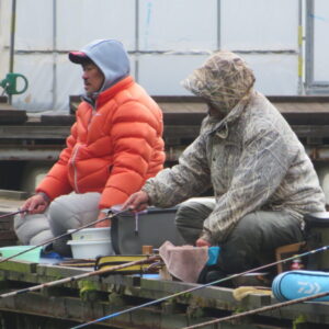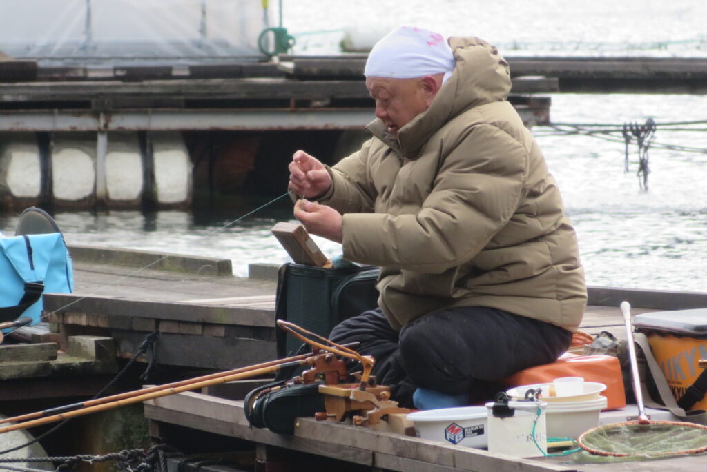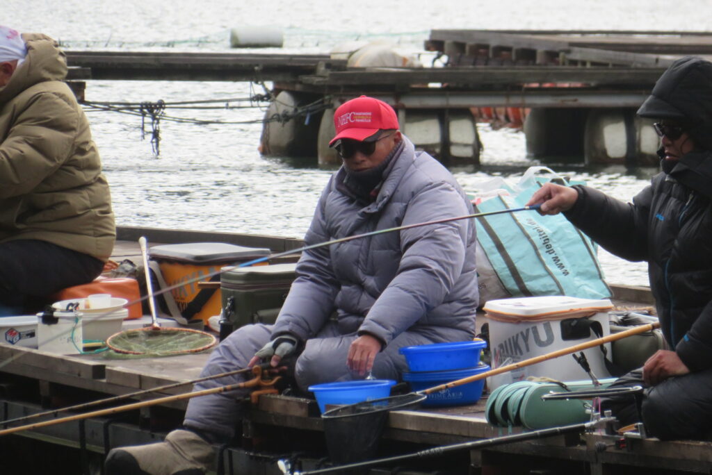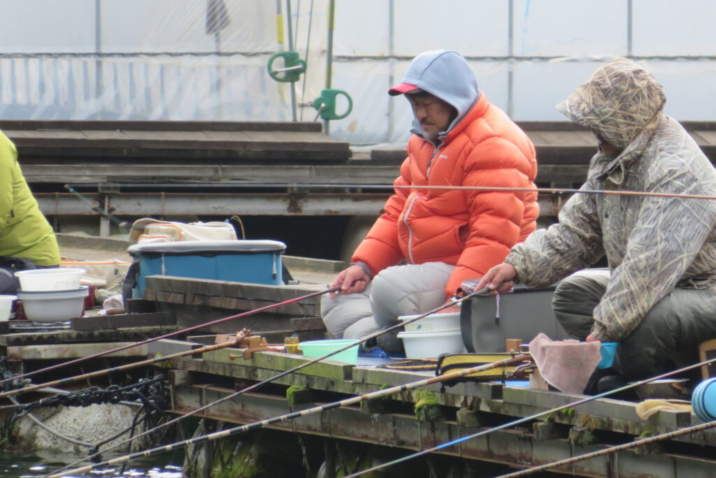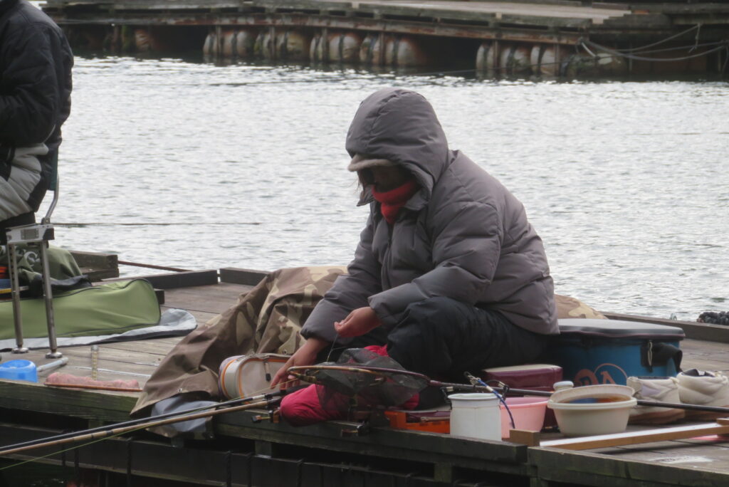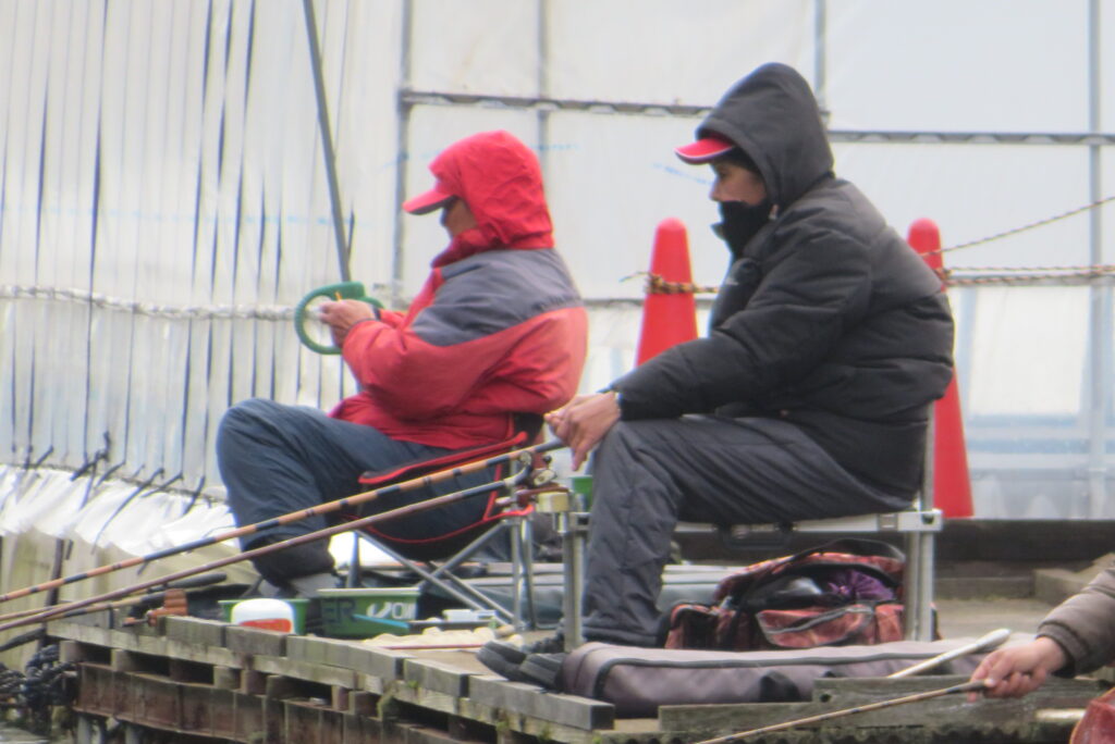 満水・小雨(雪)のち曇り・弱風で寒い1日でした。今朝は真冬の冷え込みで、朝一は雪が降っていました。この冷え込みが影響したのか?今日は各桟橋とも調子が上がりませんでした。大津の堀井様7号桟橋・竿17尺・床セットで33㎝~38㎝を10枚、そのほかのお客様も数枚~10枚弱の釣果でした。2号桟橋では長谷大池へら鮒フィッシングクラブ様の例会があり、2枚長寸で競われました。優勝は70.4㎝(34.9㎝、35.5㎝)のお客様でした。おめでとうございます。最長寸は35.5㎝、最多釣果は24枚でした。当池のご利用ありがとうございました。春のような暖かい日が続き好釣果が続いていましたが、今日は真冬に逆戻りで、昨晩には冷たい雨も降り、宙釣り・床釣りともヘラブナの活性が上がりませんでした。今後の暖かい日に期待したいと思います。本日もお越しいただき、ありがとうございました。