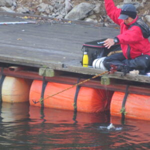 -92㎝・晴れ・強風で寒い1日でした。お客様4-2号桟橋道路向きで25㎝~37㎝を55枚(~13:00まで)、7号桟橋・竿13尺・床セットで25㎝~39㎝を43枚(~15:00)、5号桟橋の床釣りのお客様も頻繁に竿が曲がっていました。午後にお越しになった2号桟橋の短竿・両ダンゴのお客様もコンスタントに釣れていました。今日は朝から強風で定刻納竿時刻まで吹き続けました。強風の影響もあって体感気温は低く、冬服で「ちょうど」の感じでした。今日は朝が冷え込んでターンオーバーして池水が濁っていましたが、ヘラブナは高活性で良く釣れました。池水位が順調に回復していましたが、池管理者が池水を少し抜かれたようで10月中は現水位、11月がら再び溜めるそうです。本日もお越しいただき、ありがとうございました。