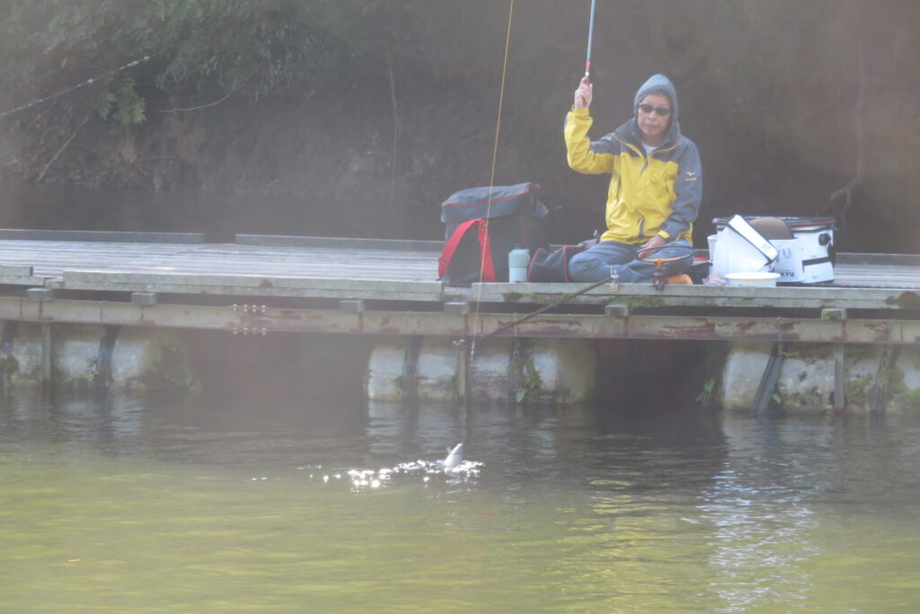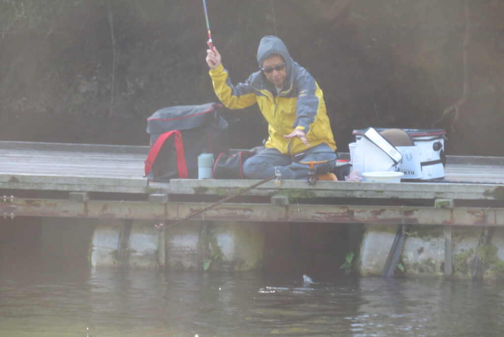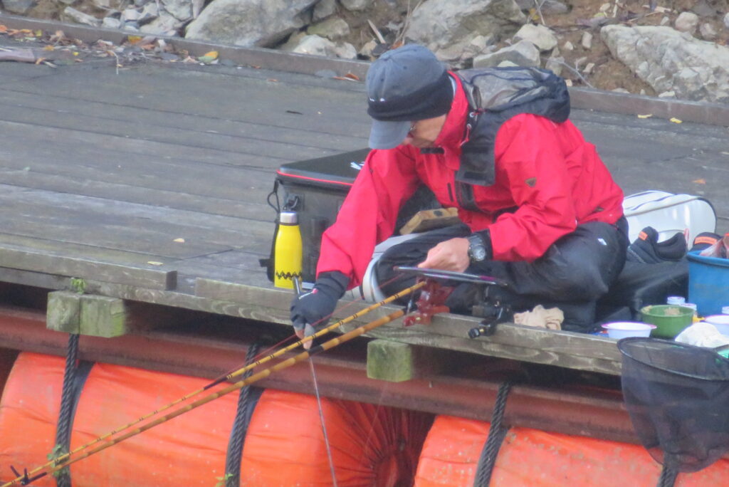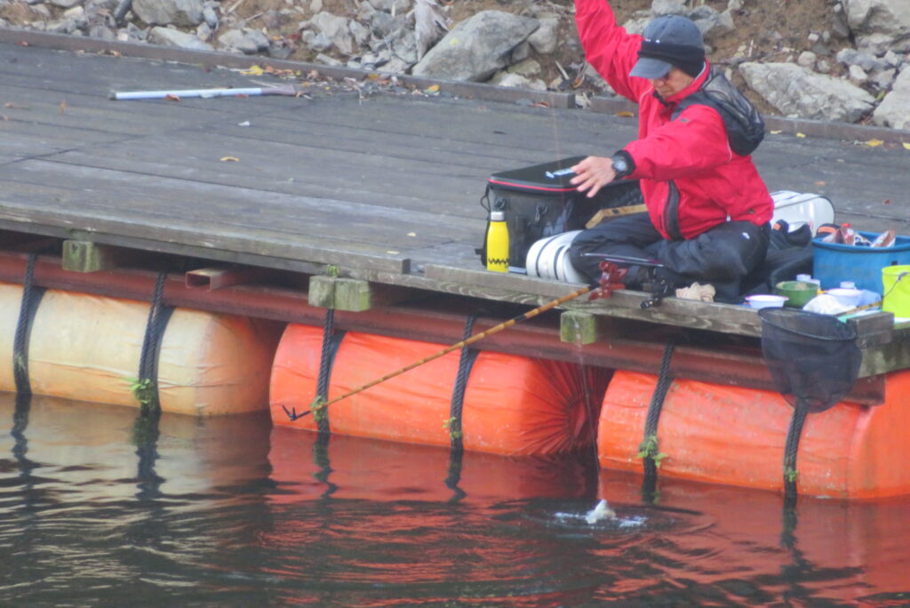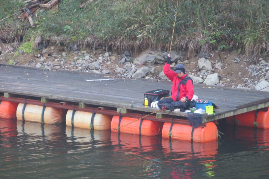 -92㎝・晴れ・強風で寒い1日でした。お客様4-2号桟橋道路向きで25㎝~37㎝を55枚(~13:00まで)、7号桟橋・竿13尺・床セットで25㎝~39㎝を43枚(~15:00)、5号桟橋の床釣りのお客様も頻繁に竿が曲がっていました。午後にお越しになった2号桟橋の短竿・両ダンゴのお客様もコンスタントに釣れていました。今日は朝から強風で定刻納竿時刻まで吹き続けました。強風の影響もあって体感気温は低く、冬服で「ちょうど」の感じでした。今日は朝が冷え込んでターンオーバーして池水が濁っていましたが、ヘラブナは高活性で良く釣れました。池水位が順調に回復していましたが、池管理者が池水を少し抜かれたようで10月中は現水位、11月がら再び溜めるそうです。本日もお越しいただき、ありがとうございました。