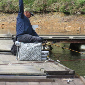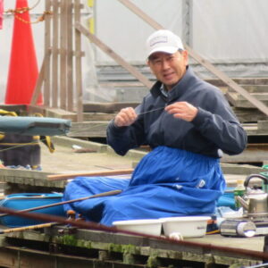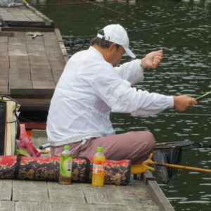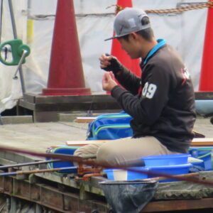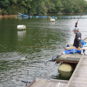 -91㎝・曇り・無風の1日でした。京田辺の𠮷川様2-4号桟橋・竿15尺・両ダンゴで24㎝~37㎝を78枚、2-5号桟橋・竿18尺、13尺・両ダンゴで25㎝~38㎝を54枚、2-5号桟橋・竿17尺・両ダンゴで25㎝~40㎝を54枚、5-4号桟橋・竿23尺、13.5尺・両ダンゴで27㎝~38㎝を43枚、そのほかのお客様も10枚~30枚程度の釣果でした。6-1号桟橋内向きのお客様は数釣りとはなりませんでしたが、良型が揃い40㎝超も釣れました。今日は天気予報とおり無風でしたが午後になって小雨が降り出し、降ったり止んだりの繰り返しでした。明日26日(日)は、5-1号桟橋及び5-2号桟橋について例会予約が入っていますので、ご承知をお願いします。本日もお越しいただき、ありがとうございました。