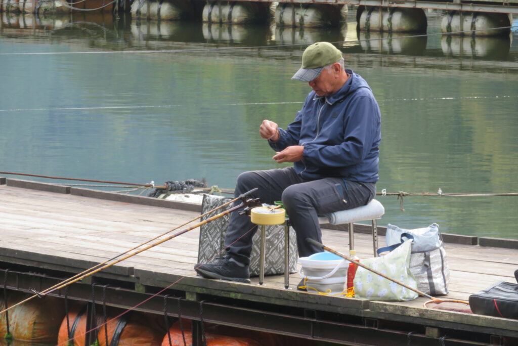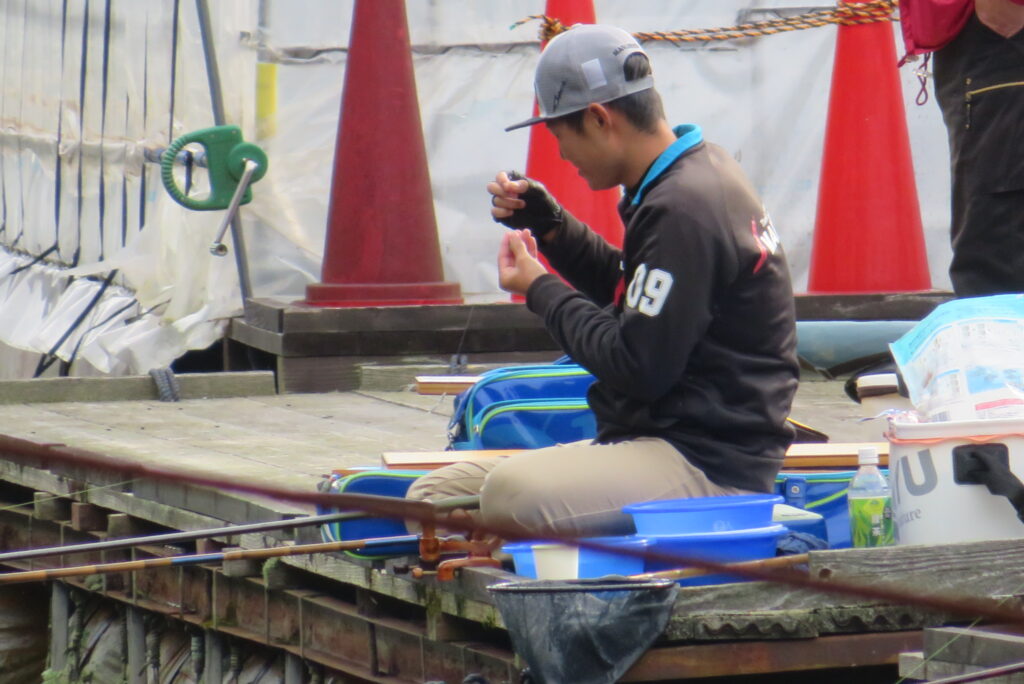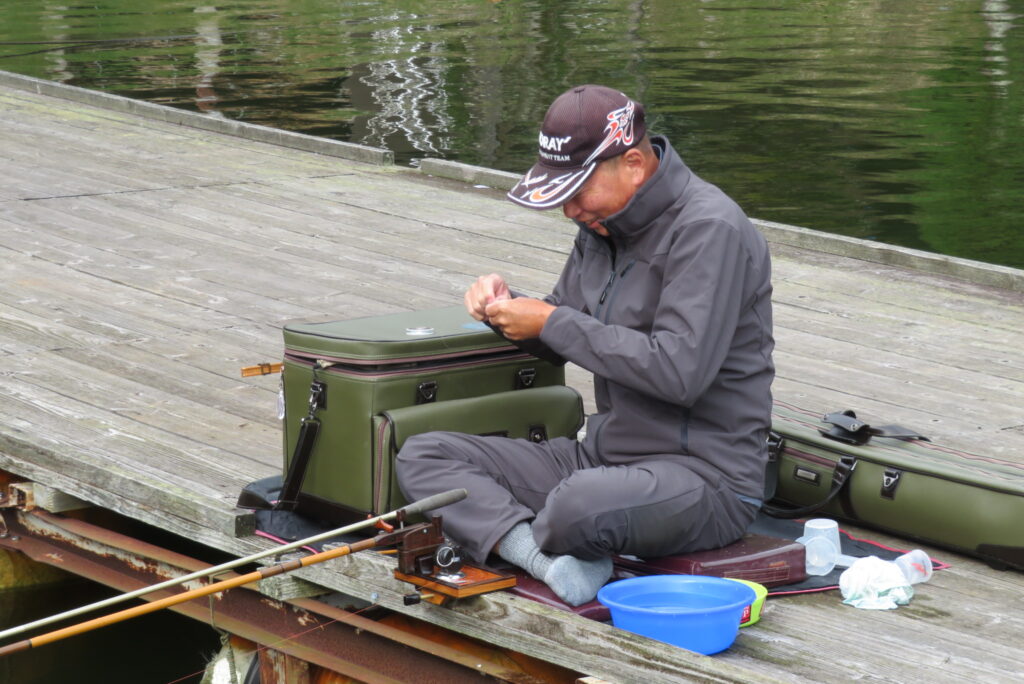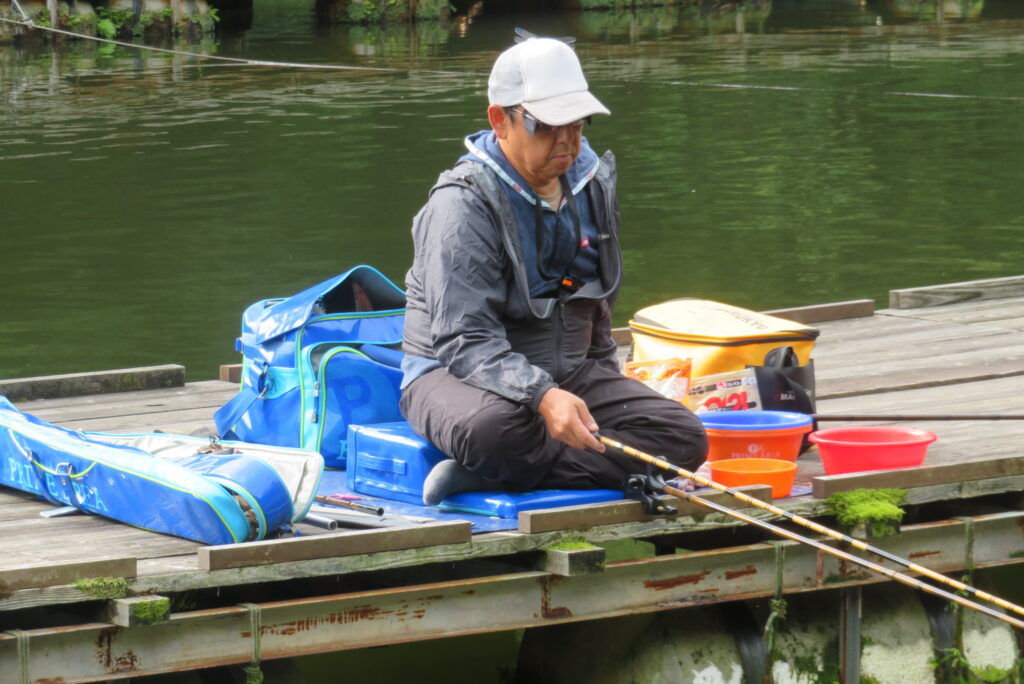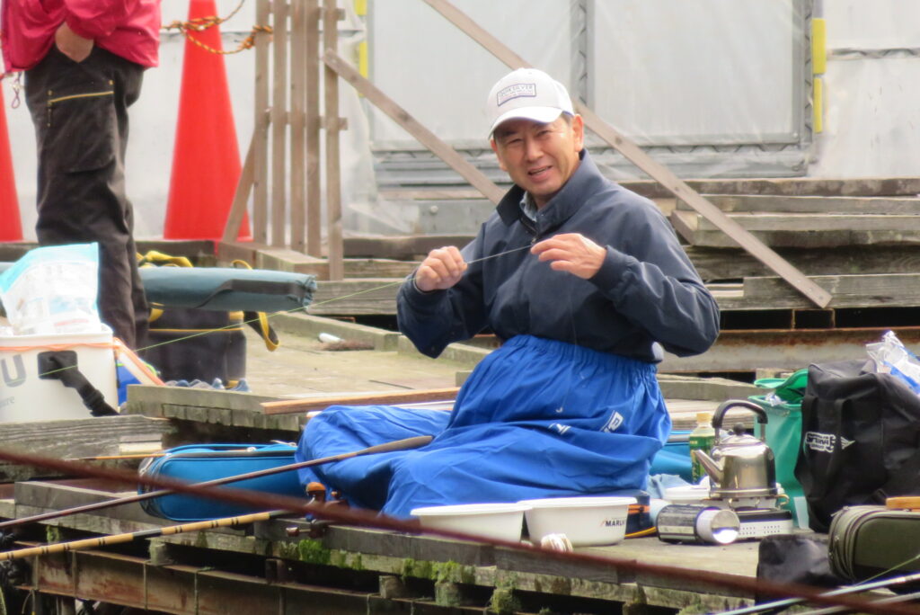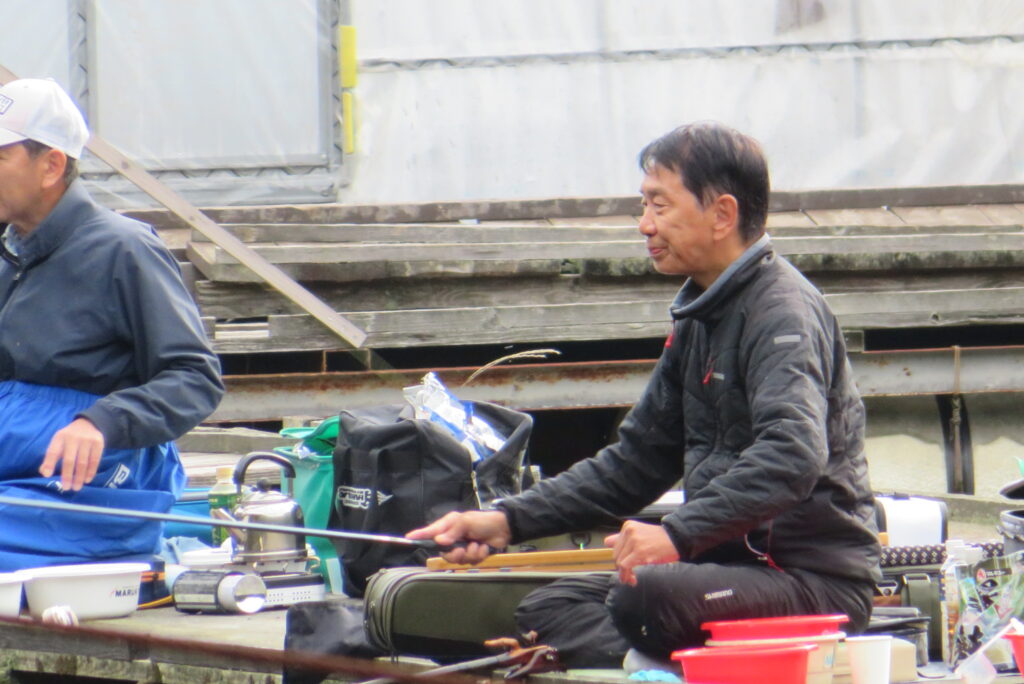 -91㎝・曇り・無風の1日でした。京田辺の𠮷川様2-4号桟橋・竿15尺・両ダンゴで24㎝~37㎝を78枚、2-5号桟橋・竿18尺、13尺・両ダンゴで25㎝~38㎝を54枚、2-5号桟橋・竿17尺・両ダンゴで25㎝~40㎝を54枚、5-4号桟橋・竿23尺、13.5尺・両ダンゴで27㎝~38㎝を43枚、そのほかのお客様も10枚~30枚程度の釣果でした。6-1号桟橋内向きのお客様は数釣りとはなりませんでしたが、良型が揃い40㎝超も釣れました。今日は天気予報とおり無風でしたが午後になって小雨が降り出し、降ったり止んだりの繰り返しでした。明日26日(日)は、5-1号桟橋及び5-2号桟橋について例会予約が入っていますので、ご承知をお願いします。本日もお越しいただき、ありがとうございました。