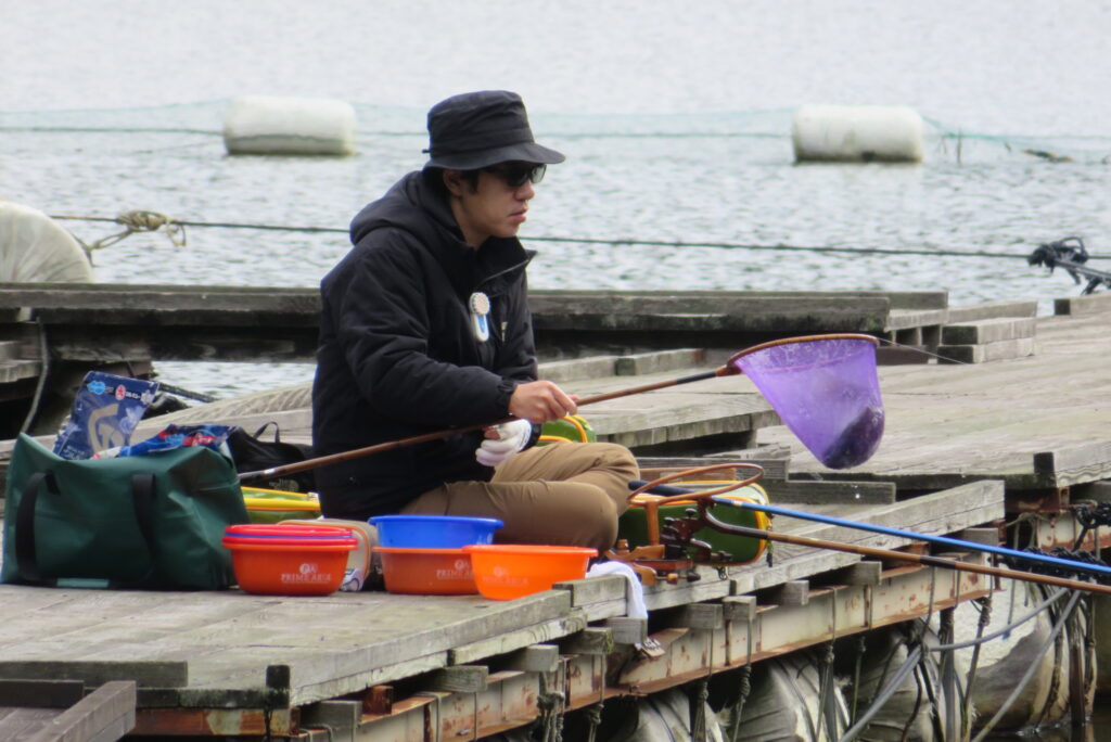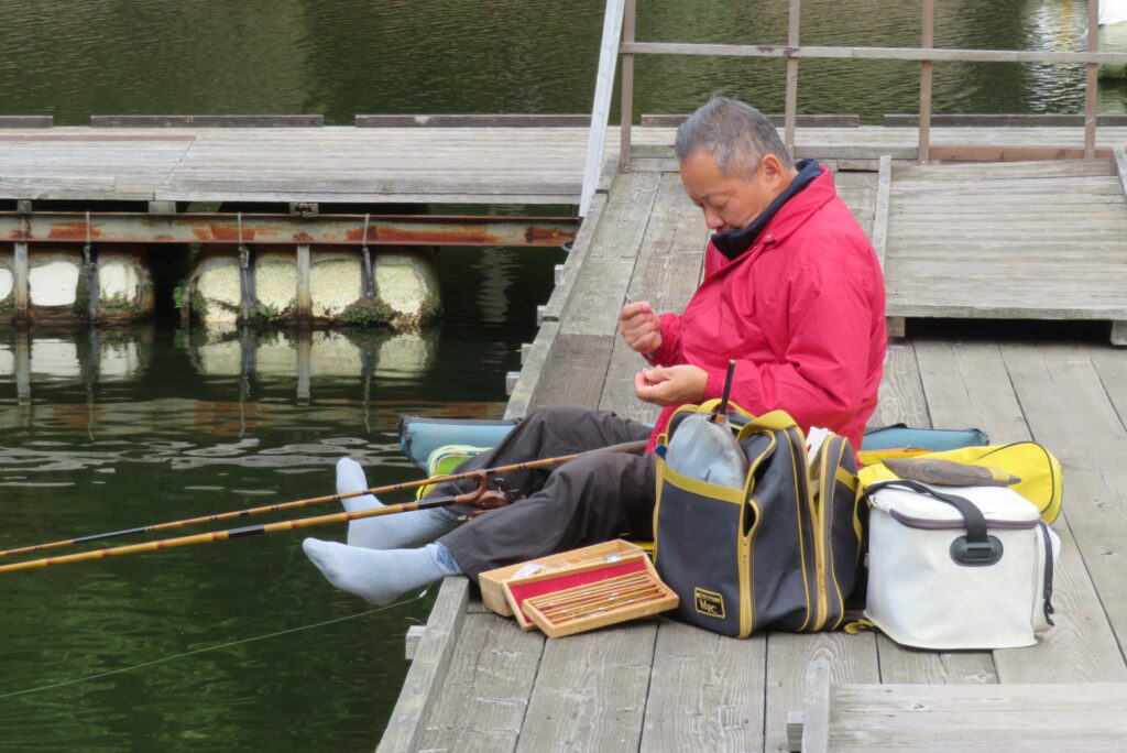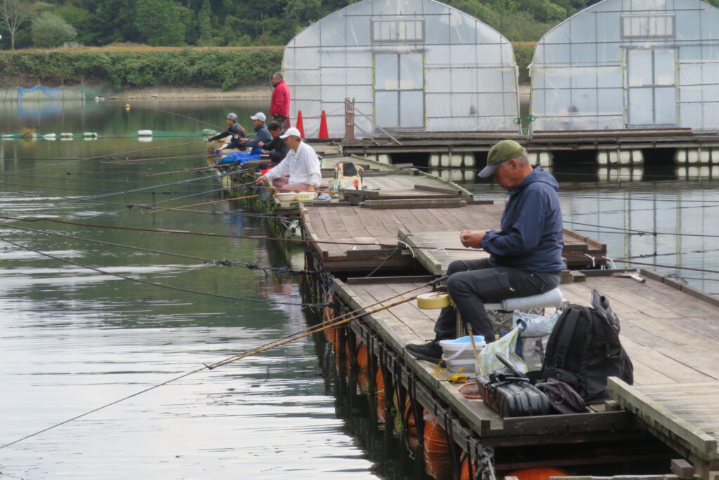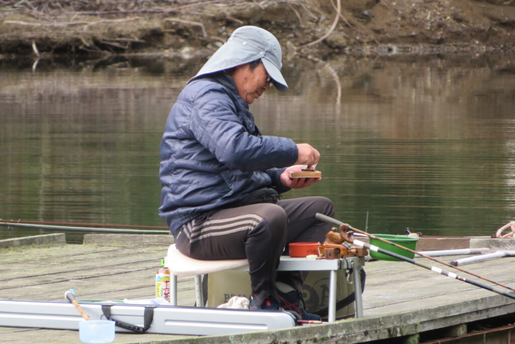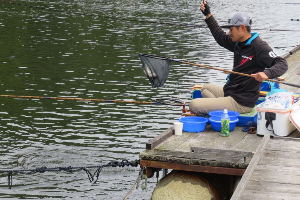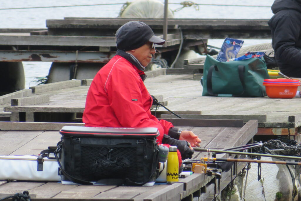 -91㎝・曇り・無風の1日でした。京田辺の𠮷川様2-4号桟橋・竿15尺・両ダンゴで24㎝~37㎝を78枚、2-5号桟橋・竿18尺、13尺・両ダンゴで25㎝~38㎝を54枚、2-5号桟橋・竿17尺・両ダンゴで25㎝~40㎝を54枚、5-4号桟橋・竿23尺、13.5尺・両ダンゴで27㎝~38㎝を43枚、そのほかのお客様も10枚~30枚程度の釣果でした。6-1号桟橋内向きのお客様は数釣りとはなりませんでしたが、良型が揃い40㎝超も釣れました。今日は天気予報とおり無風でしたが午後になって小雨が降り出し、降ったり止んだりの繰り返しでした。明日26日(日)は、5-1号桟橋及び5-2号桟橋について例会予約が入っていますので、ご承知をお願いします。本日もお越しいただき、ありがとうございました。