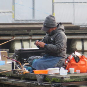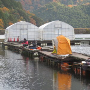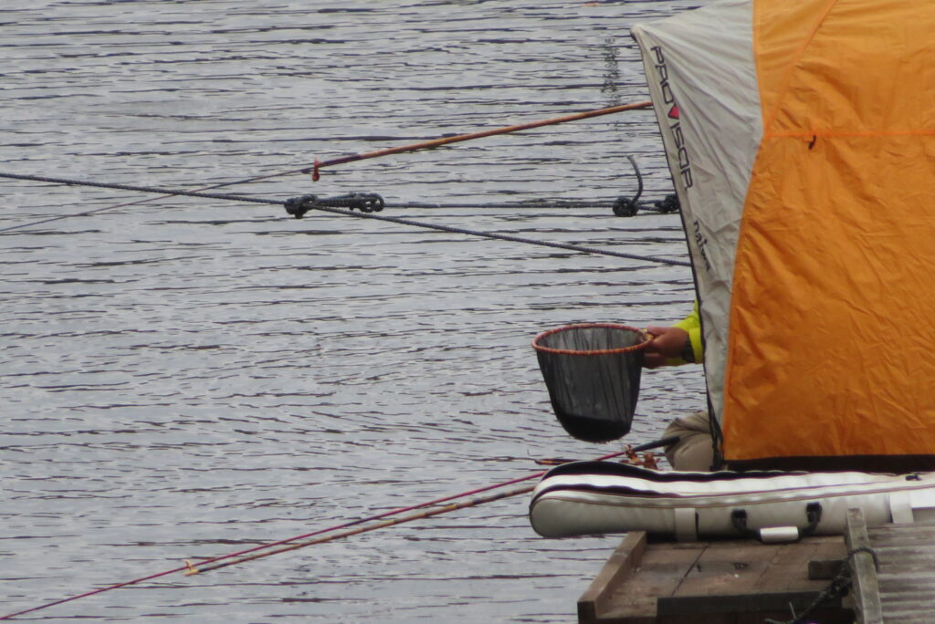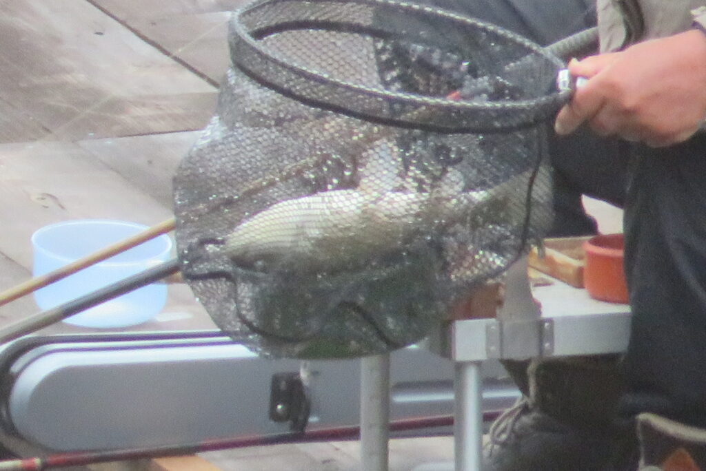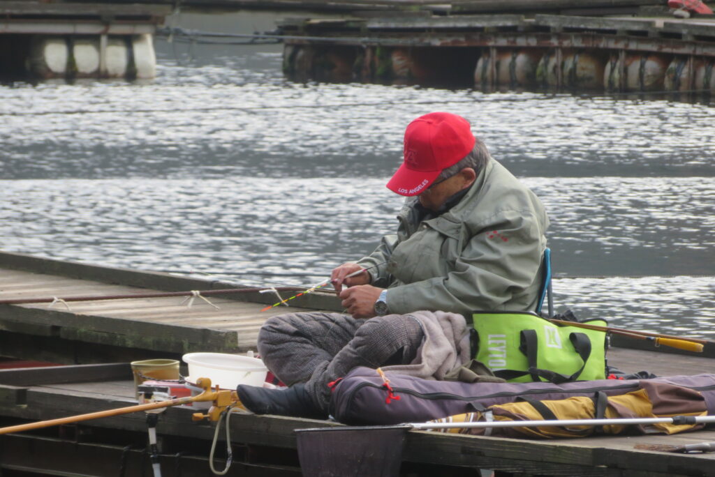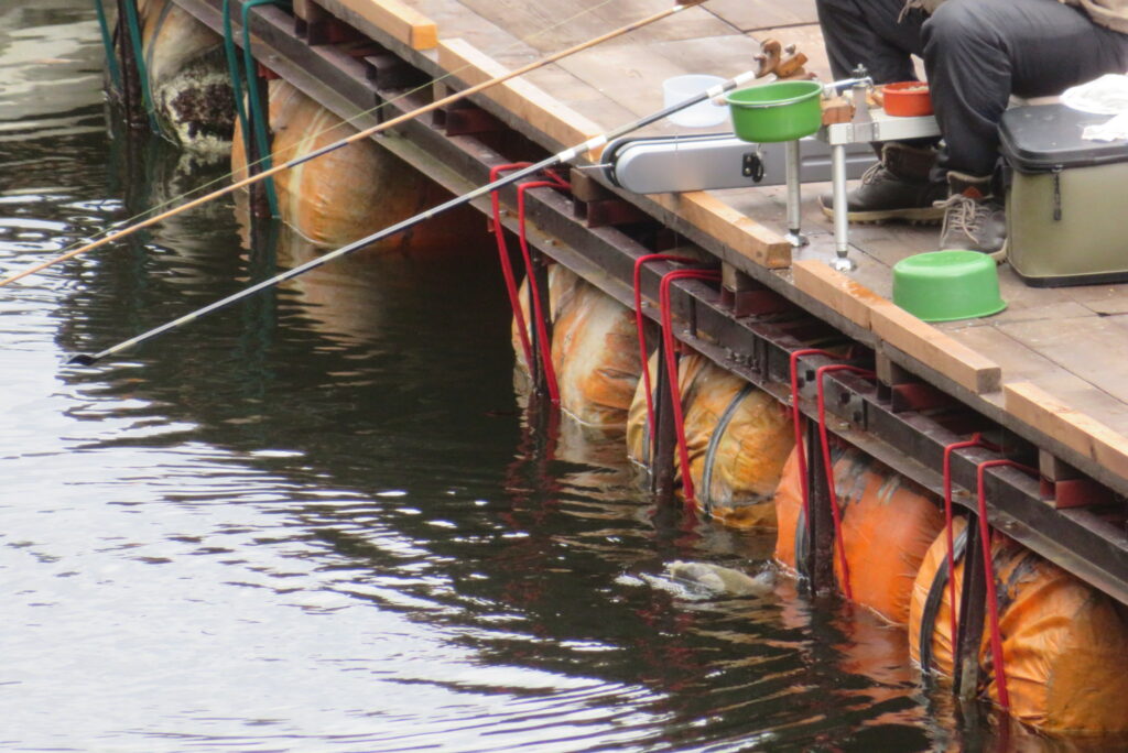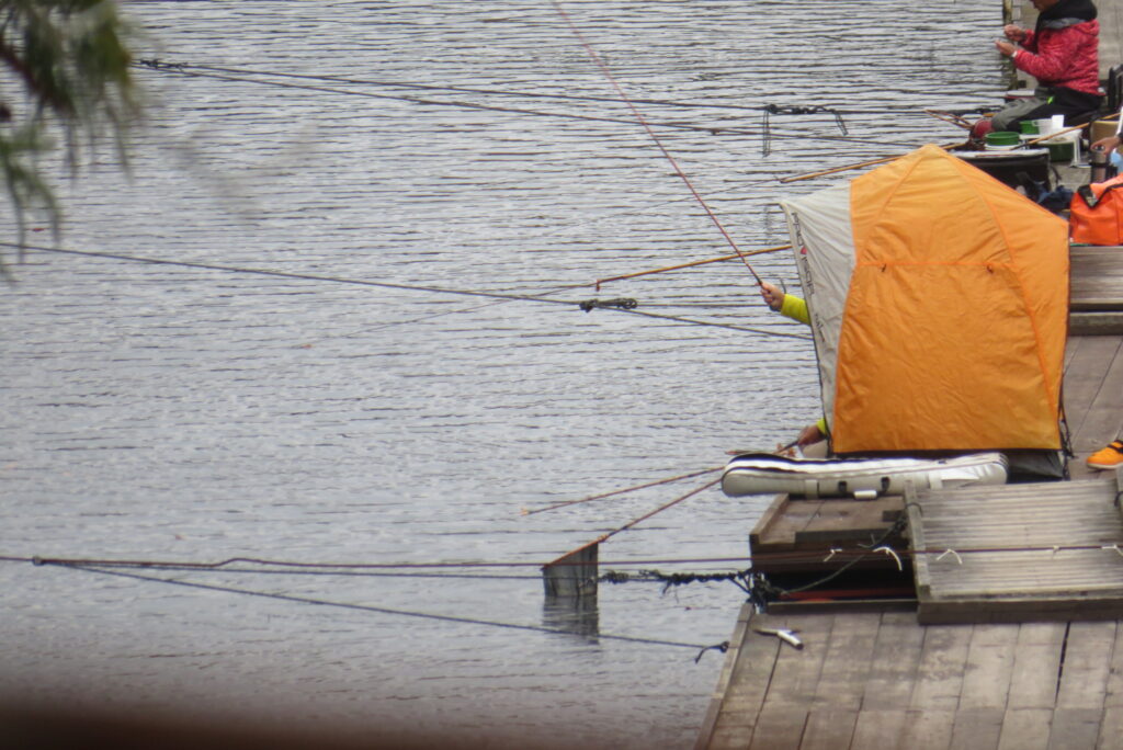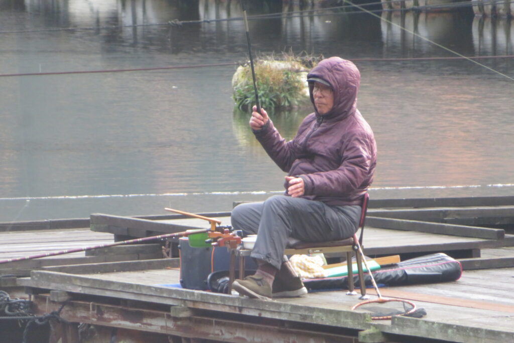 満水・曇り・無風のち弱風で寒い1日でした。今朝は冷え込みが弱くターンオーバーは起きませんでした。しかし、曇り空が続き昼前には冷たい風が吹き始め、気温も低いままでした。京都の長谷川様2-4号桟橋・竿10尺・ウドンセットで25㎝~38㎝を28枚(~14:00まで)、そのほかのお客様も数枚~20枚前後の釣果でした。昼過ぎから2号桟橋で竿出しされたお客様は15尺・両グルで18枚釣果・頻繁に竿が曲がっていました。朝の冷え込みで池水温も13℃程度まで低下し、セットのお客様が増えてきました。今日もヘラブナが湧き湧き上ずりでアタリを出すのが難しかった場所もある一方で、ハリスを長くしないとアタリが出ない場所もあり、秋から冬への移行期真っ最中です。桟橋によって季節が異なる感じで、エサ・仕掛け・棚等、いろいろ試してみてください。本日もお越しいただき、ありがとうございました。