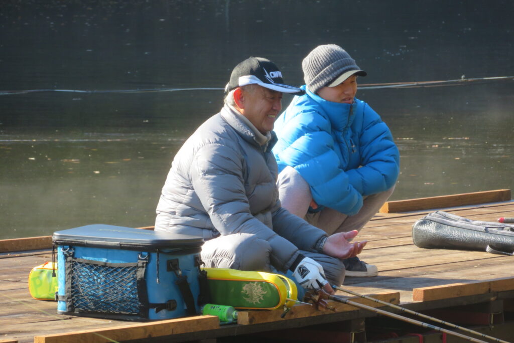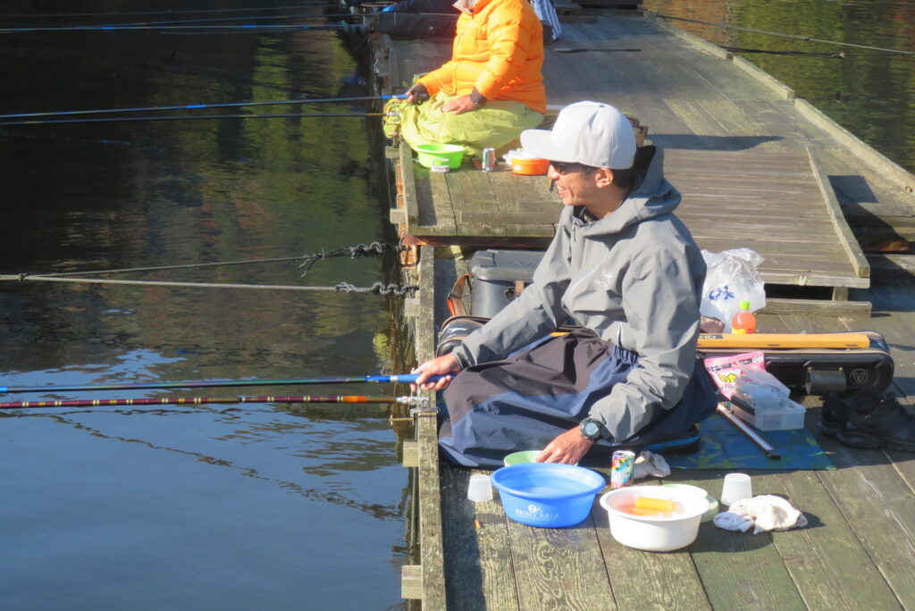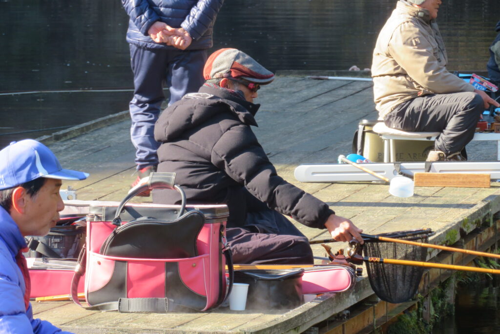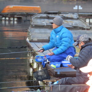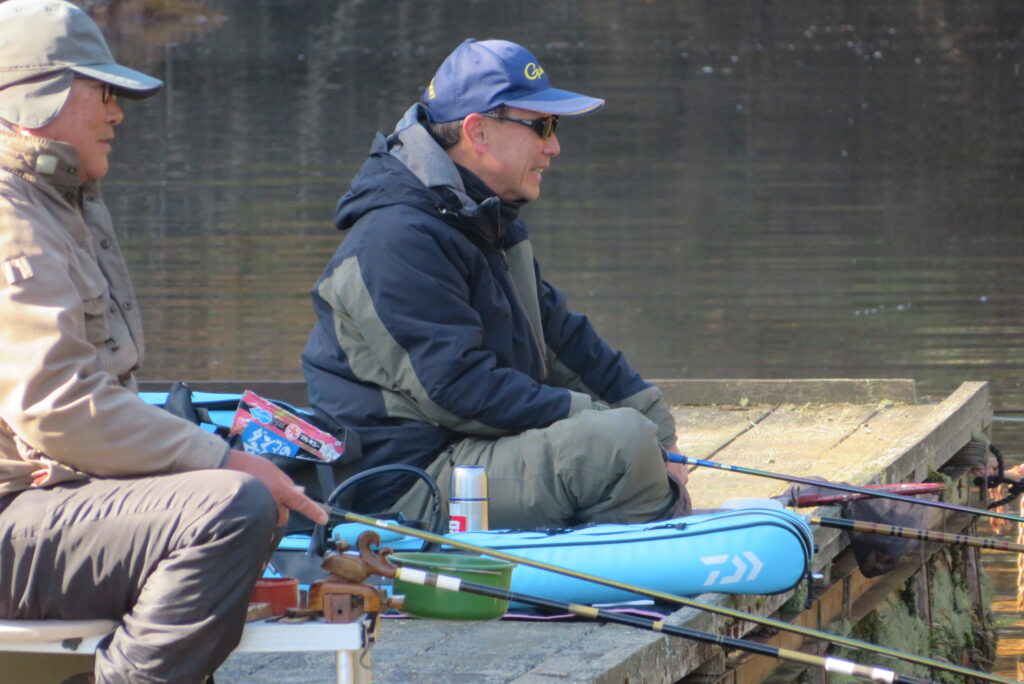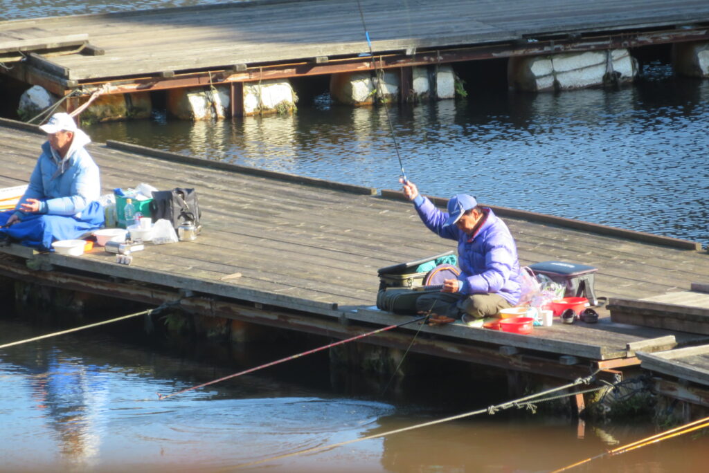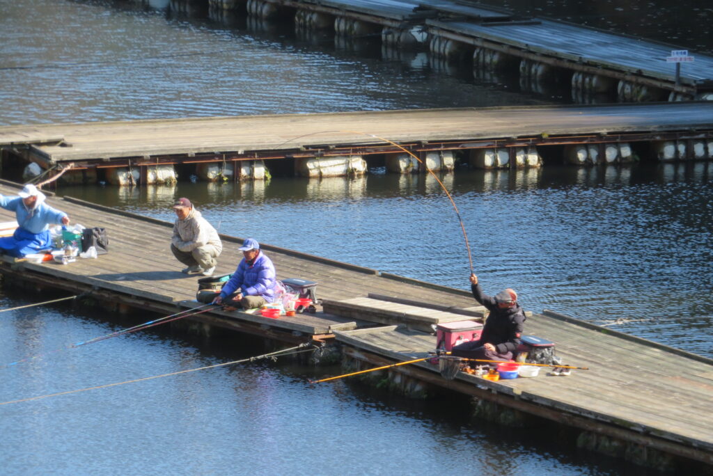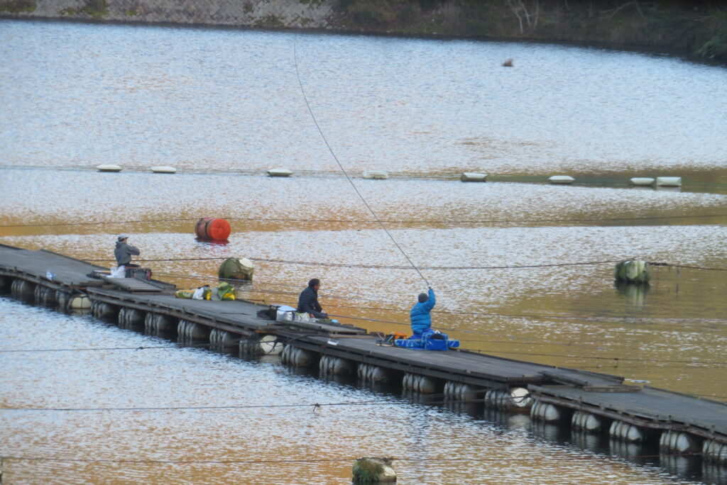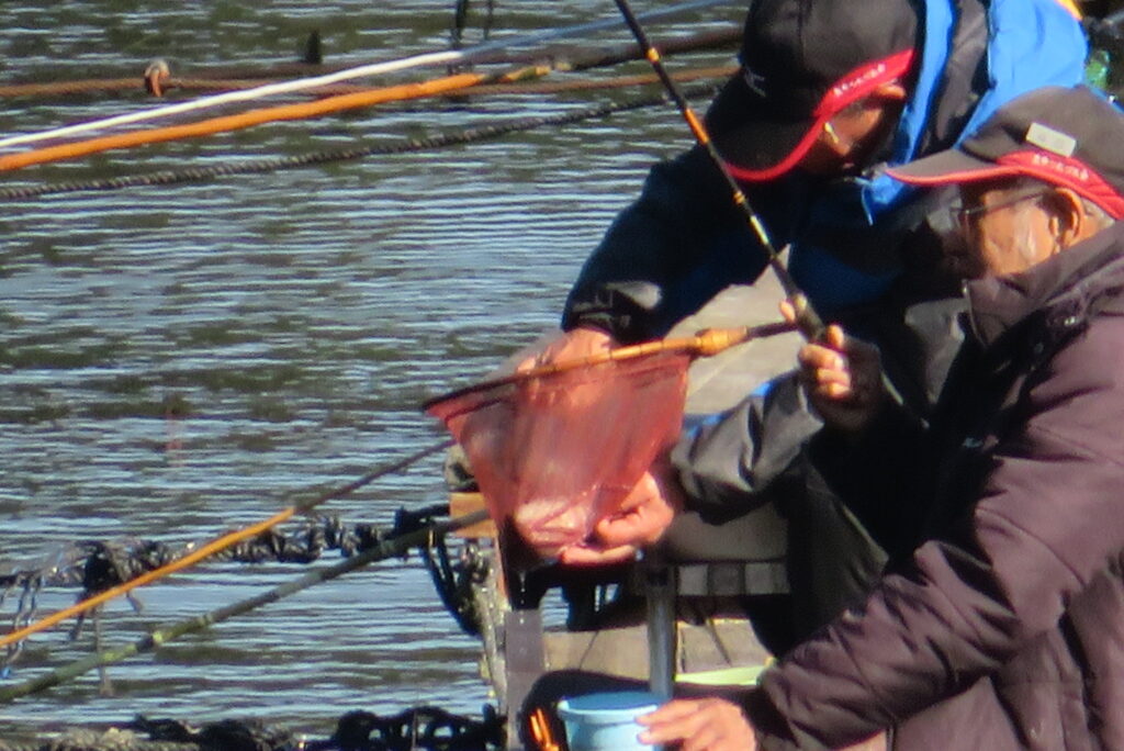 満水・晴れ・無風で穏やかな1日でした。京都の林様5-4号桟橋・竿26尺・床両グルで28㎝~40.5㎝を27枚、豊中の中務様・4-1号桟橋道路向き・竿18尺・床両グルで25㎝~35㎝を27枚、そのほかのお客様も10枚~20枚程度の釣果でした。今朝は2℃まで冷え込みターンオーバーで池水が濁って濃い茶色に変色しました。このターンオーバーの影響か?釣果の中心は午後になってからで、14時以降は桟橋各所で頻繁に竿が曲がっていました。昨日同様、今日も大型ヘラブナが好調で5号桟橋で41.5㎝・40.5㎝が釣れました。4-2号桟橋山向きでは数はあがりませんでしたが、35㎝以上の良型揃いで40㎝超2枚のお客様もありました。最近は連日40㎝超が釣れており、今後も大型ヘラブナが期待できそうです。本日もお越しいただき、ありがとうございました。