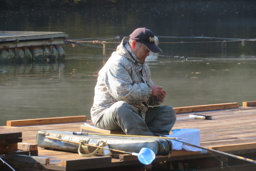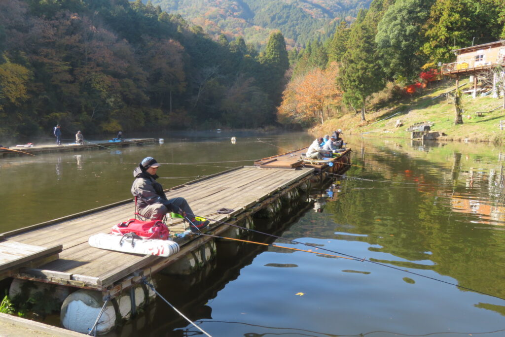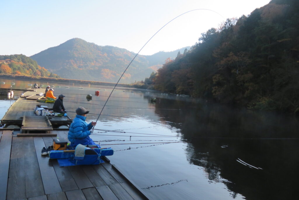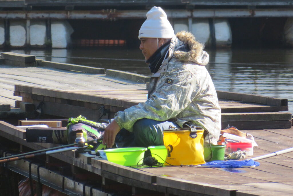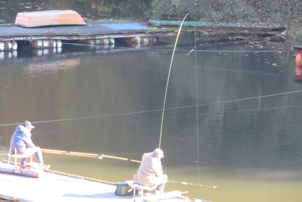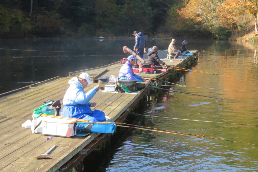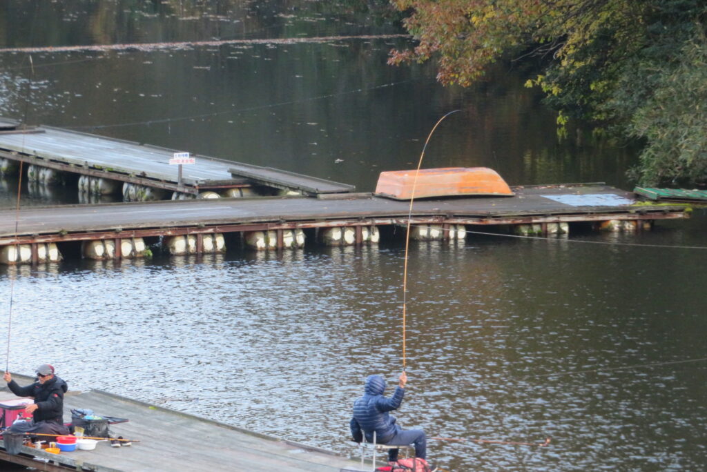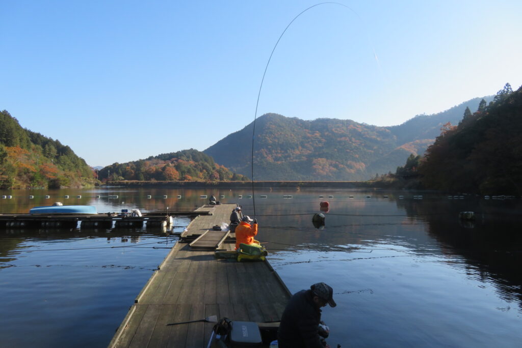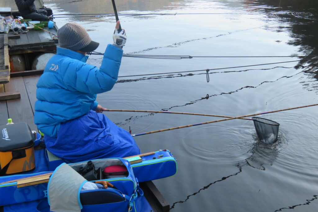 満水・晴れ・無風で穏やかな1日でした。京都の林様5-4号桟橋・竿26尺・床両グルで28㎝~40.5㎝を27枚、豊中の中務様・4-1号桟橋道路向き・竿18尺・床両グルで25㎝~35㎝を27枚、そのほかのお客様も10枚~20枚程度の釣果でした。今朝は2℃まで冷え込みターンオーバーで池水が濁って濃い茶色に変色しました。このターンオーバーの影響か?釣果の中心は午後になってからで、14時以降は桟橋各所で頻繁に竿が曲がっていました。昨日同様、今日も大型ヘラブナが好調で5号桟橋で41.5㎝・40.5㎝が釣れました。4-2号桟橋山向きでは数はあがりませんでしたが、35㎝以上の良型揃いで40㎝超2枚のお客様もありました。最近は連日40㎝超が釣れており、今後も大型ヘラブナが期待できそうです。本日もお越しいただき、ありがとうございました。