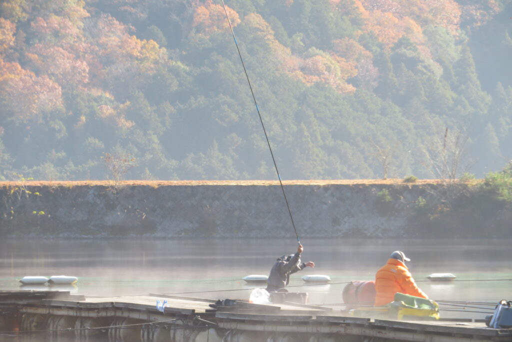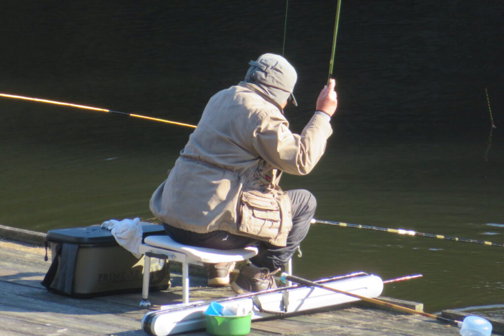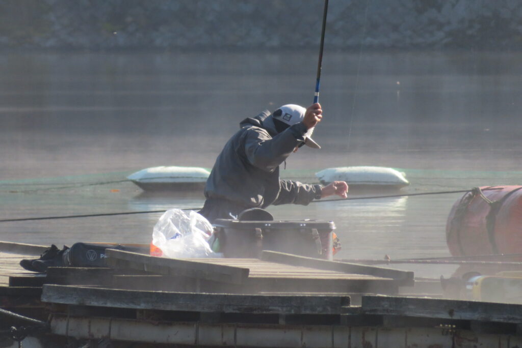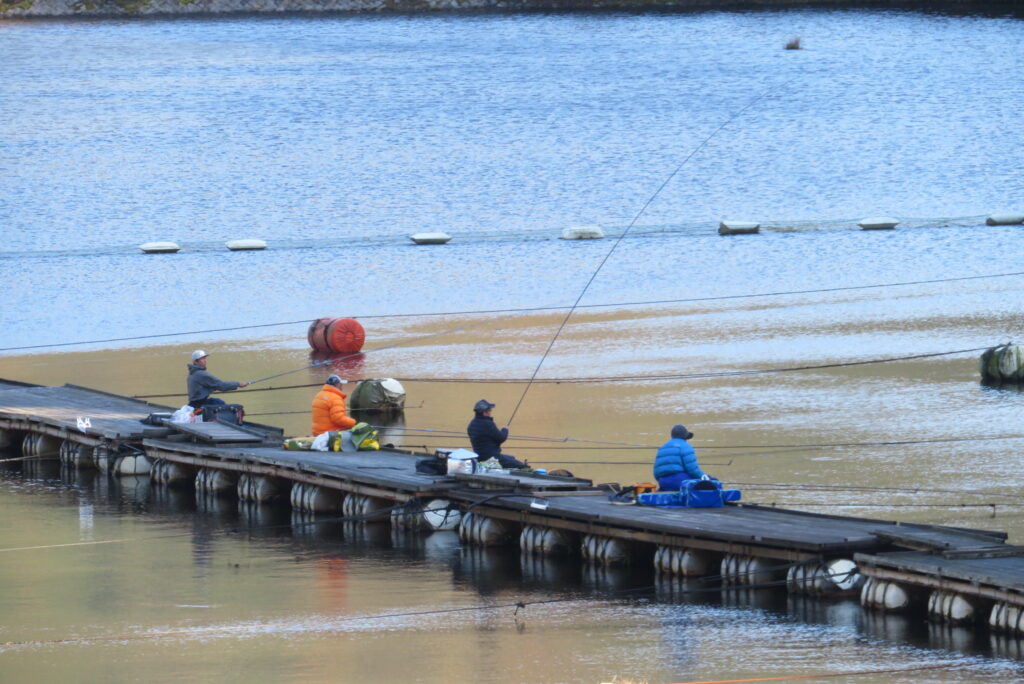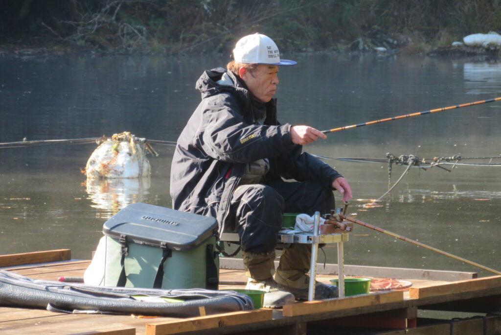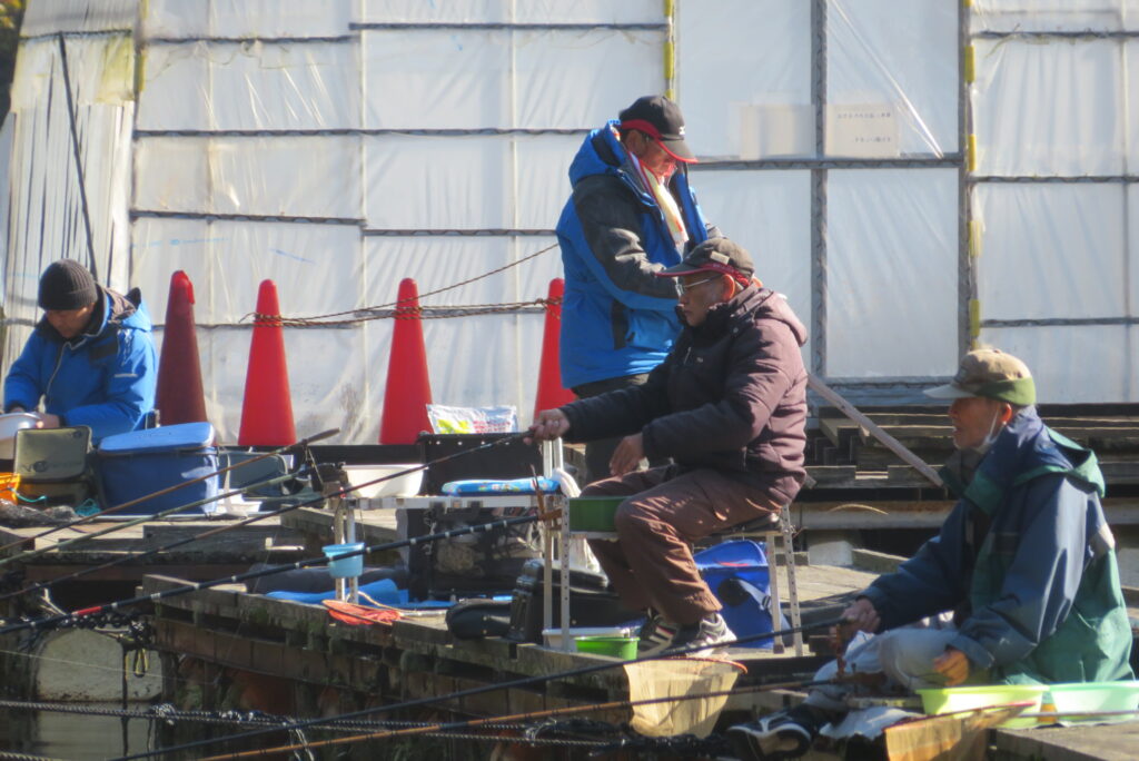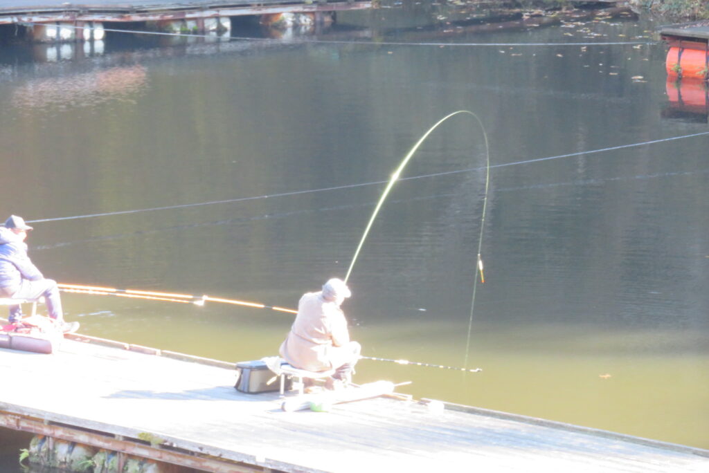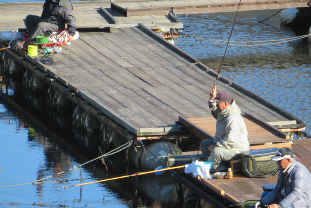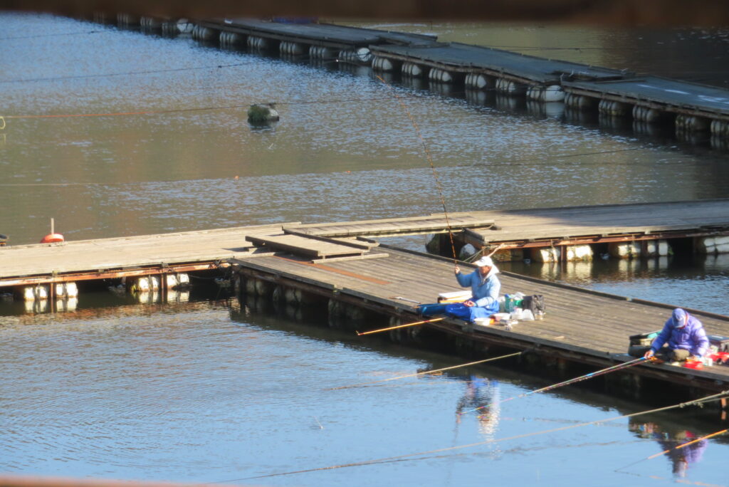 満水・晴れ・無風で穏やかな1日でした。京都の林様5-4号桟橋・竿26尺・床両グルで28㎝~40.5㎝を27枚、豊中の中務様・4-1号桟橋道路向き・竿18尺・床両グルで25㎝~35㎝を27枚、そのほかのお客様も10枚~20枚程度の釣果でした。今朝は2℃まで冷え込みターンオーバーで池水が濁って濃い茶色に変色しました。このターンオーバーの影響か?釣果の中心は午後になってからで、14時以降は桟橋各所で頻繁に竿が曲がっていました。昨日同様、今日も大型ヘラブナが好調で5号桟橋で41.5㎝・40.5㎝が釣れました。4-2号桟橋山向きでは数はあがりませんでしたが、35㎝以上の良型揃いで40㎝超2枚のお客様もありました。最近は連日40㎝超が釣れており、今後も大型ヘラブナが期待できそうです。本日もお越しいただき、ありがとうございました。