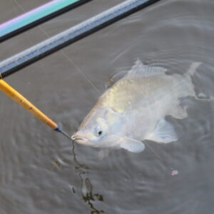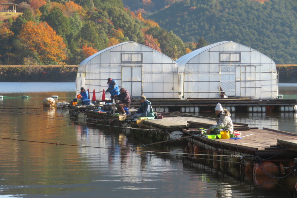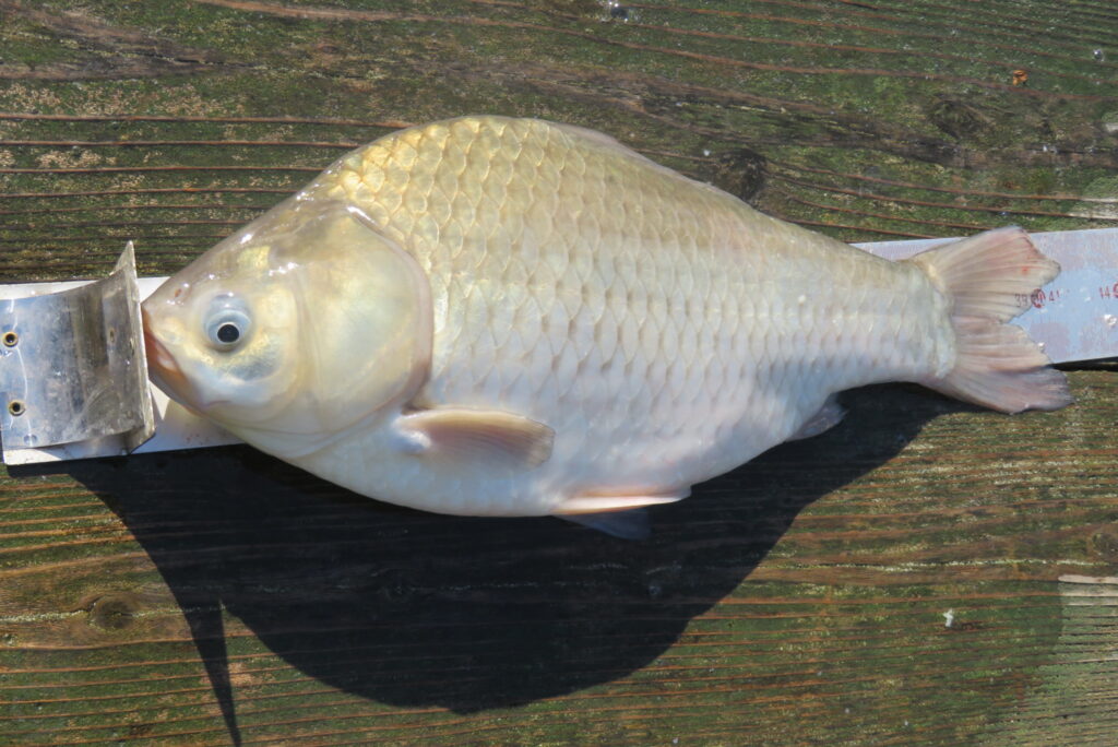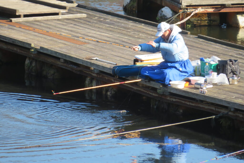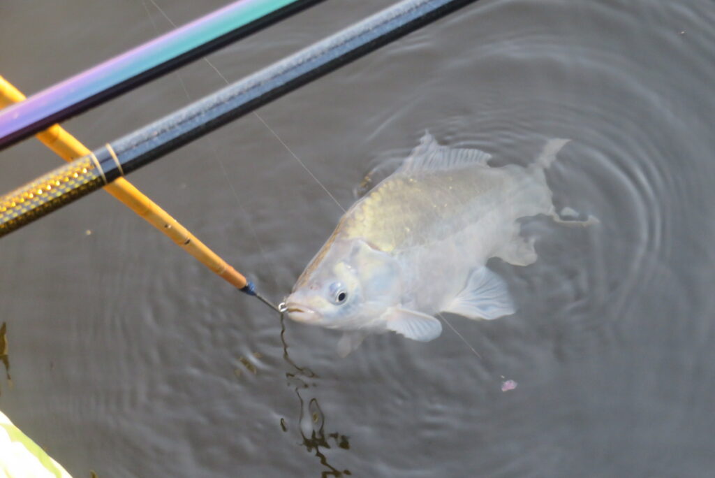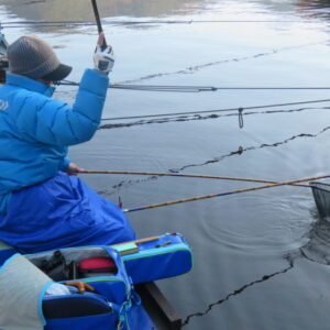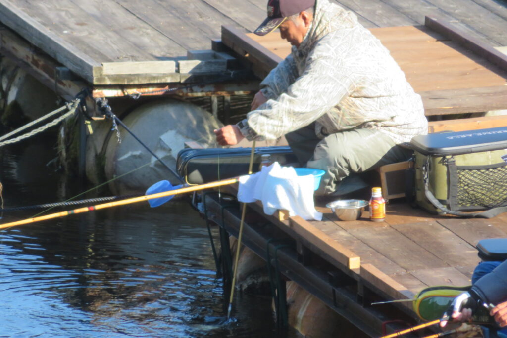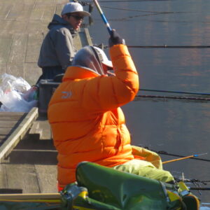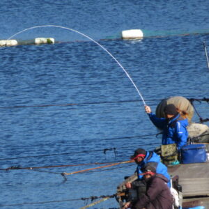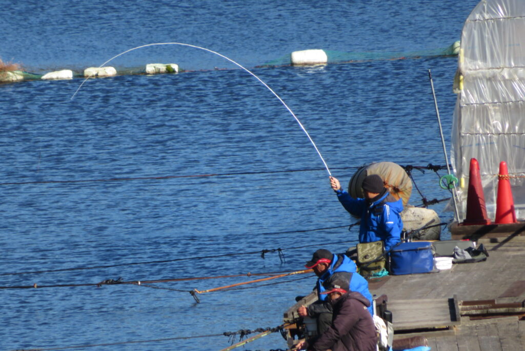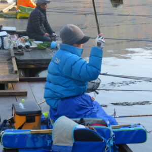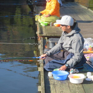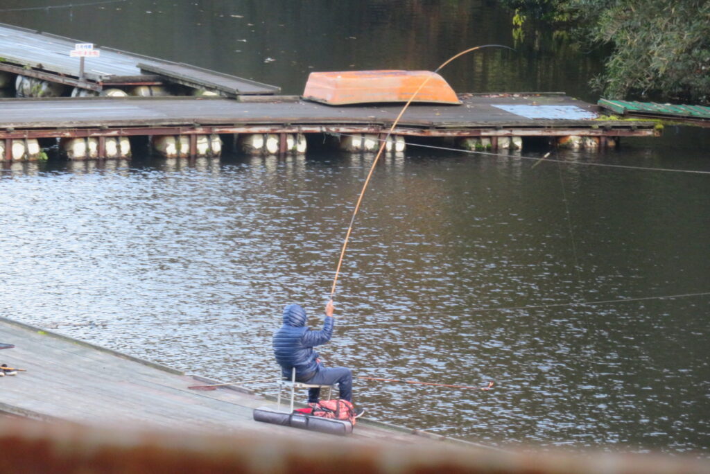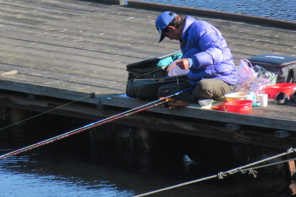 満水・晴れ・無風で穏やかな1日でした。京都の林様5-4号桟橋・竿26尺・床両グルで28㎝~40.5㎝を27枚、豊中の中務様・4-1号桟橋道路向き・竿18尺・床両グルで25㎝~35㎝を27枚、そのほかのお客様も10枚~20枚程度の釣果でした。今朝は2℃まで冷え込みターンオーバーで池水が濁って濃い茶色に変色しました。このターンオーバーの影響か?釣果の中心は午後になってからで、14時以降は桟橋各所で頻繁に竿が曲がっていました。昨日同様、今日も大型ヘラブナが好調で5号桟橋で41.5㎝・40.5㎝が釣れました。4-2号桟橋山向きでは数はあがりませんでしたが、35㎝以上の良型揃いで40㎝超2枚のお客様もありました。最近は連日40㎝超が釣れており、今後も大型ヘラブナが期待できそうです。本日もお越しいただき、ありがとうございました。