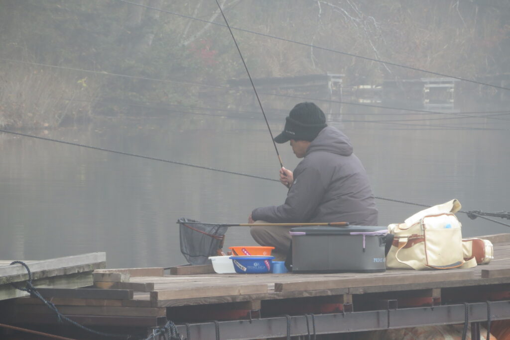 満水・晴れのち曇り・無風で穏やかな1日でした。姫路の藤井様2-3号桟橋・竿10尺・セット、両グルで28㎝~35㎝を40枚、8-1号桟橋道路向き・竿16尺・床両グルで21㎝~36㎝を28枚、そのほかのお客様も15枚~20枚程度の釣果でした。今朝は霧が濃く、昼頃まで太陽が顔を出しませんでした。霧が無くなった昼頃からは曇り空になり、気温が上がりませんでした。最近は気温の上がる午後に釣果が伸びるパターンでしたが、今日は天候の関係か?午前中のほうがアタリが多かったようです。本日もお越しいただき、ありがとうございました。