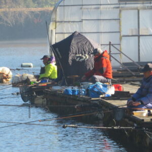 満水・晴れ・無風で穏やかな1日でした。京都の森木様8-1号桟橋道路向き・竿16尺・両グルで33㎝~38㎝を26枚(~14:00まで)、京田辺の𠮷川様2-4号桟橋・竿19尺・ウドンセットで25㎝~40㎝を26枚、そのほかのお客様も15枚~20枚程度の釣果でした今朝は今冬1番の冷え込みで0℃でした。ターンオーバーも起き厳しい釣り条件でしたが、皆様いろいろと工夫されてアタリを出されていました。浅場の8号桟橋・4号桟橋ですが、今日も好釣でした。8号桟橋は良型揃い(33㎝~38㎝)を26枚、同箇所で40㎝超も釣れました。4号桟橋のお客様は遅出・早仕舞いの短時間の釣りでしたが、小型ヘラブナ中心の入れ食いモードで20枚オーバーでした。明日7日(日)は、2組様の例会予約があり、2-3号桟橋~2-6号桟橋まで、5-1号桟橋~5-3号桟橋までが例会予約となっていますので、ご承知をお願いします。本日もお越しいただき、ありがとうございました。