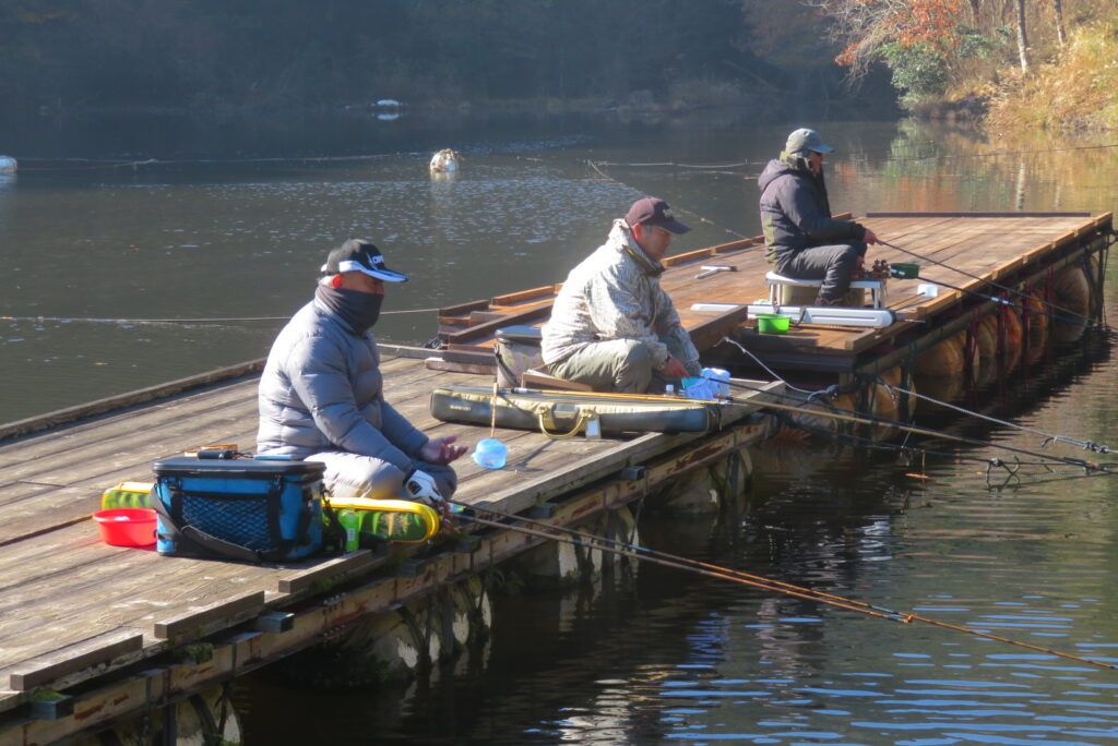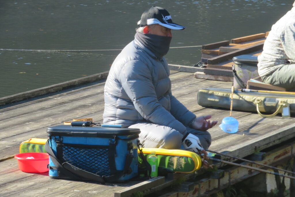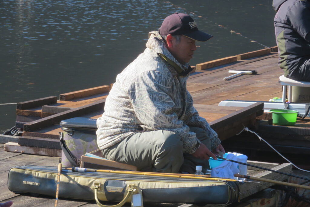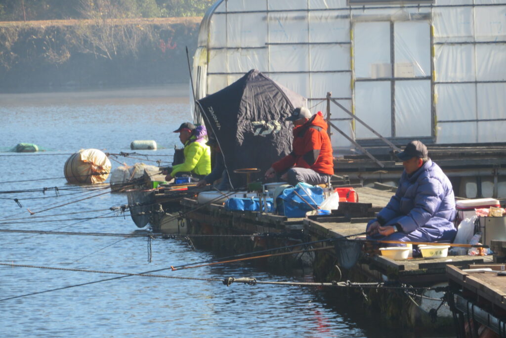 満水・晴れ・無風で穏やかな1日でした。京都の森木様8-1号桟橋道路向き・竿16尺・両グルで33㎝~38㎝を26枚(~14:00まで)、京田辺の𠮷川様2-4号桟橋・竿19尺・ウドンセットで25㎝~40㎝を26枚、そのほかのお客様も15枚~20枚程度の釣果でした今朝は今冬1番の冷え込みで0℃でした。ターンオーバーも起き厳しい釣り条件でしたが、皆様いろいろと工夫されてアタリを出されていました。浅場の8号桟橋・4号桟橋ですが、今日も好釣でした。8号桟橋は良型揃い(33㎝~38㎝)を26枚、同箇所で40㎝超も釣れました。4号桟橋のお客様は遅出・早仕舞いの短時間の釣りでしたが、小型ヘラブナ中心の入れ食いモードで20枚オーバーでした。明日7日(日)は、2組様の例会予約があり、2-3号桟橋~2-6号桟橋まで、5-1号桟橋~5-3号桟橋までが例会予約となっていますので、ご承知をお願いします。本日もお越しいただき、ありがとうございました。