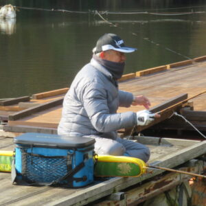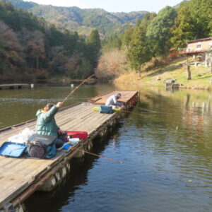 満水・晴れ・無風で絶好の釣り日和でした。京都の荒田様8-1号桟橋道路向き・竿10尺・固型セットで24㎝~38㎝を52枚、8-1号桟橋・竿16尺・両グルで24㎝~35㎝を41枚、4-2号桟橋・竿16尺・床グルダンゴで28㎝~38㎝を35枚、そのほかのお客様も好釣でした。今朝は冷え込みも弱く日中も晴れで無風、この条件が良かったのか?ヘラブナの活性が高く、アタリも多くあり良く釣れました。1日を通してあちこちで竿が曲がり、秋のハイシーズンのような感じで釣れていました。明日は午前中を中心にミゾレ予報が出ており、北風も4m予報なので強風から爆風が予想されます。このためヘラブナ釣りは難しいと思われ、明後日以降の落ち着いた天気の日の好釣果を期待したいと思います。本日もお越しいただき、ありがとうございました。