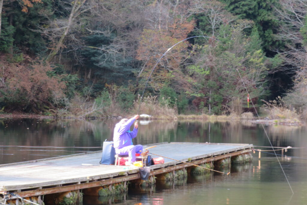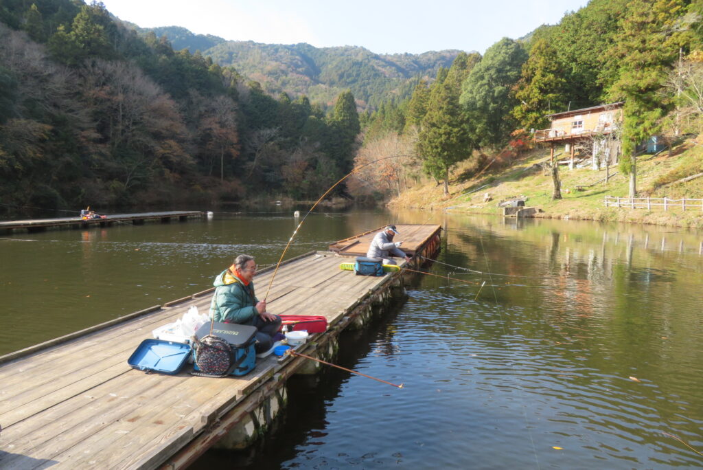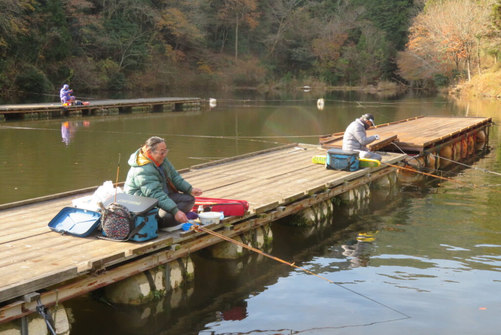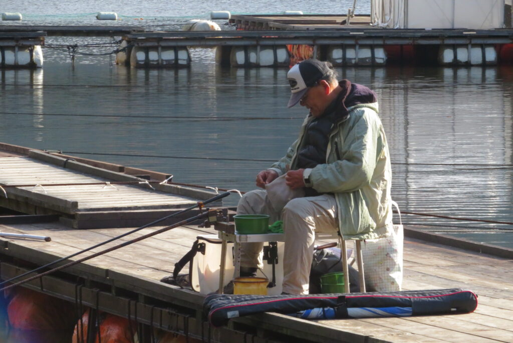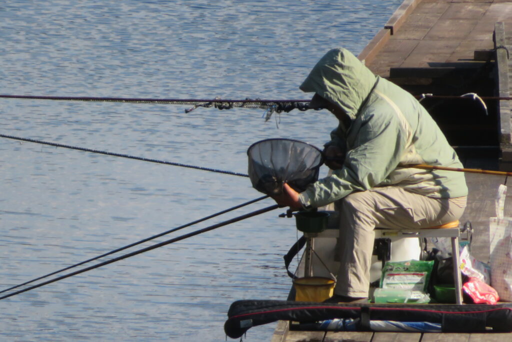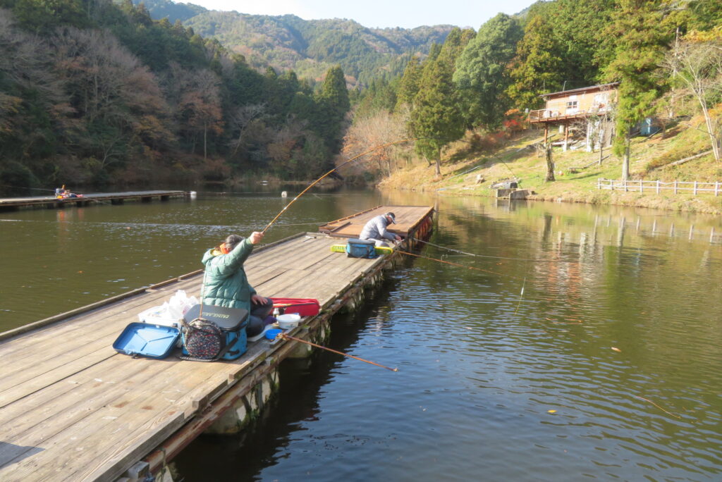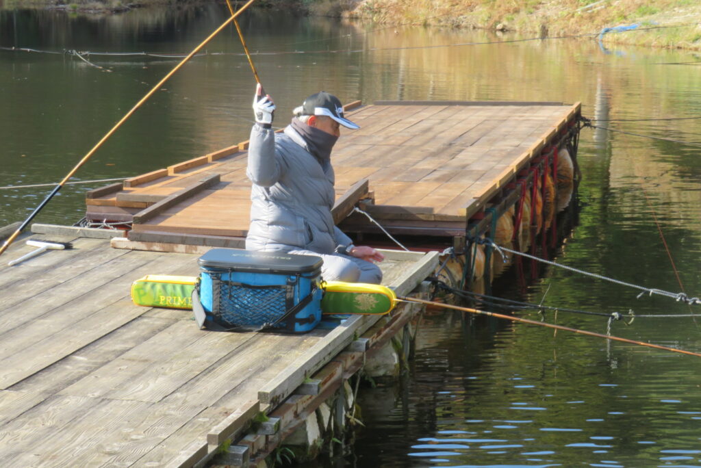 満水・晴れ・無風で絶好の釣り日和でした。京都の荒田様8-1号桟橋道路向き・竿10尺・固型セットで24㎝~38㎝を52枚、8-1号桟橋・竿16尺・両グルで24㎝~35㎝を41枚、4-2号桟橋・竿16尺・床グルダンゴで28㎝~38㎝を35枚、そのほかのお客様も好釣でした。今朝は冷え込みも弱く日中も晴れで無風、この条件が良かったのか?ヘラブナの活性が高く、アタリも多くあり良く釣れました。1日を通してあちこちで竿が曲がり、秋のハイシーズンのような感じで釣れていました。明日は午前中を中心にミゾレ予報が出ており、北風も4m予報なので強風から爆風が予想されます。このためヘラブナ釣りは難しいと思われ、明後日以降の落ち着いた天気の日の好釣果を期待したいと思います。本日もお越しいただき、ありがとうございました。