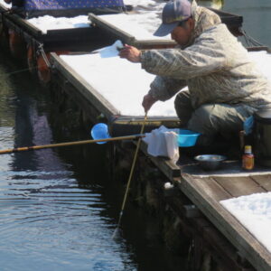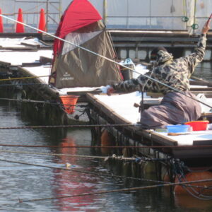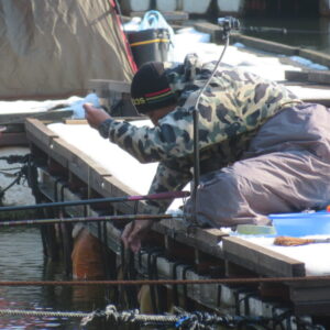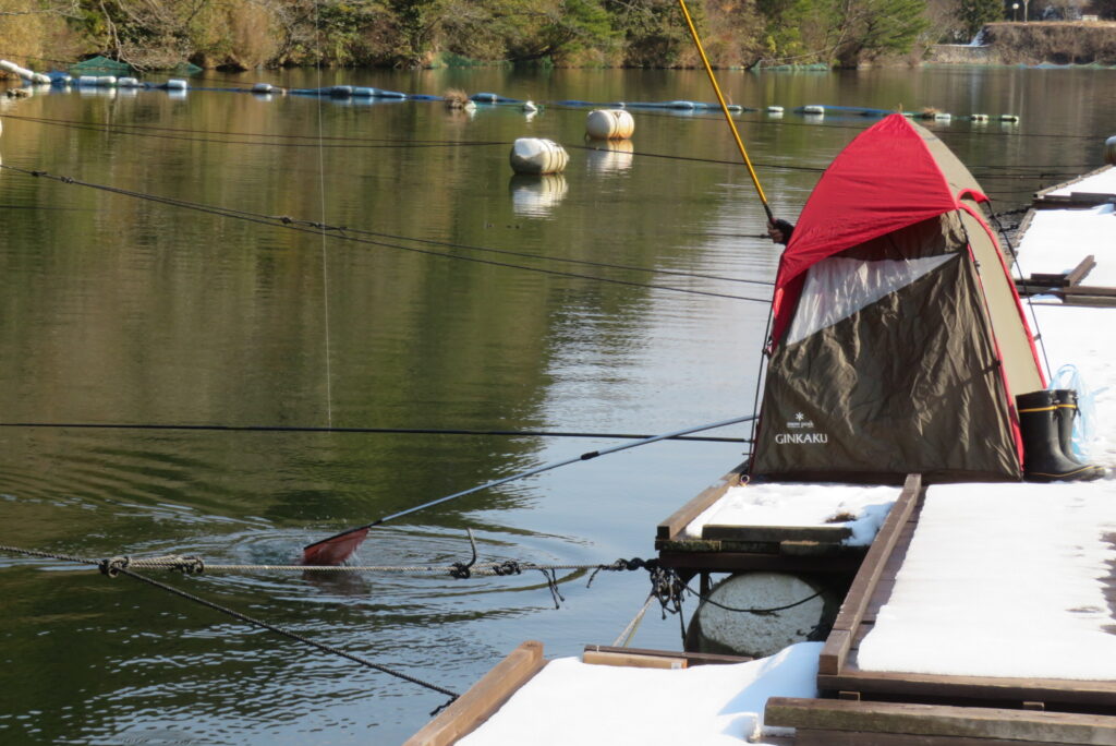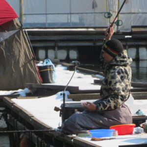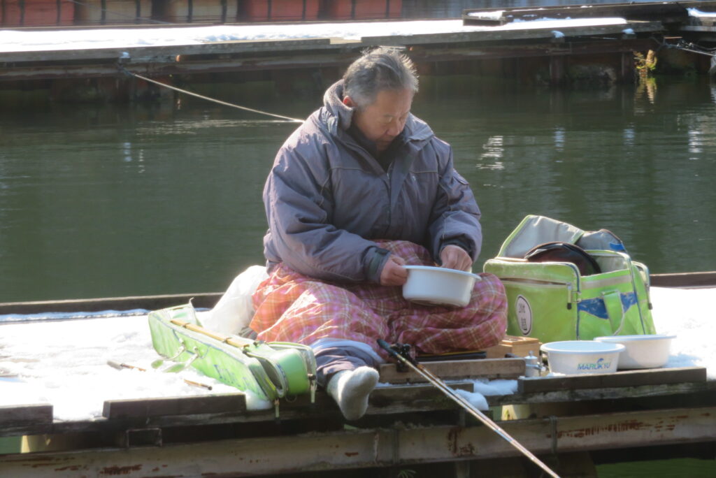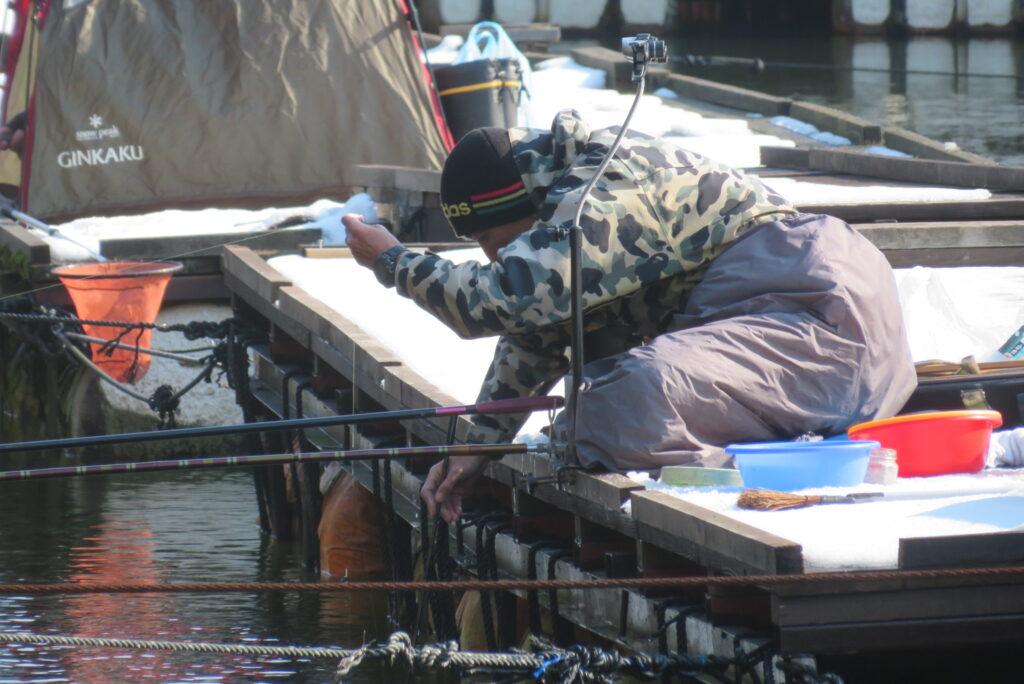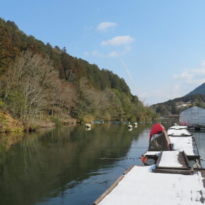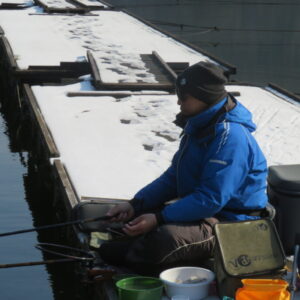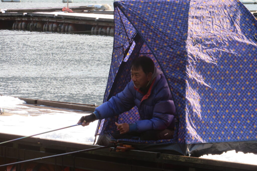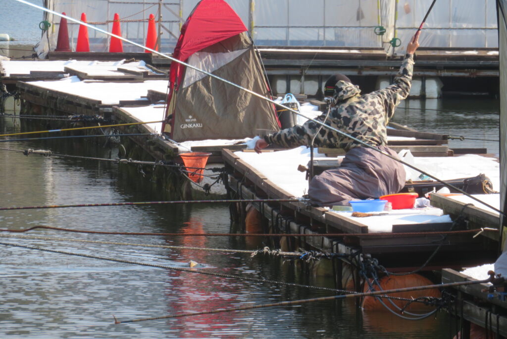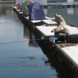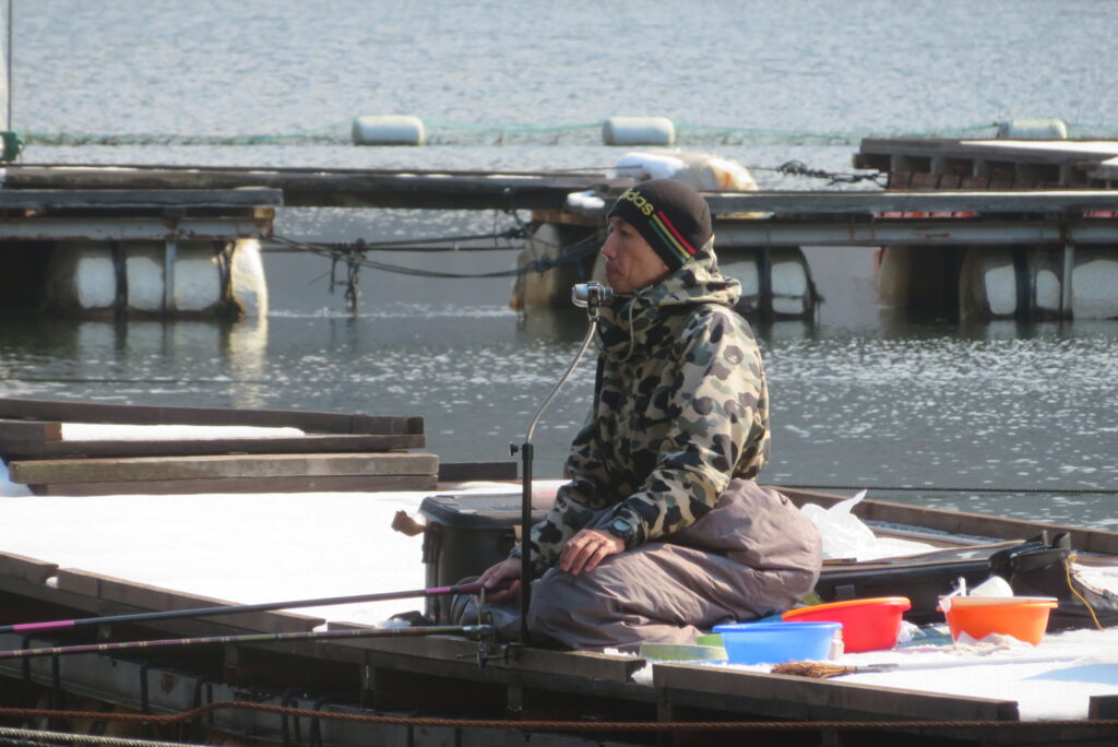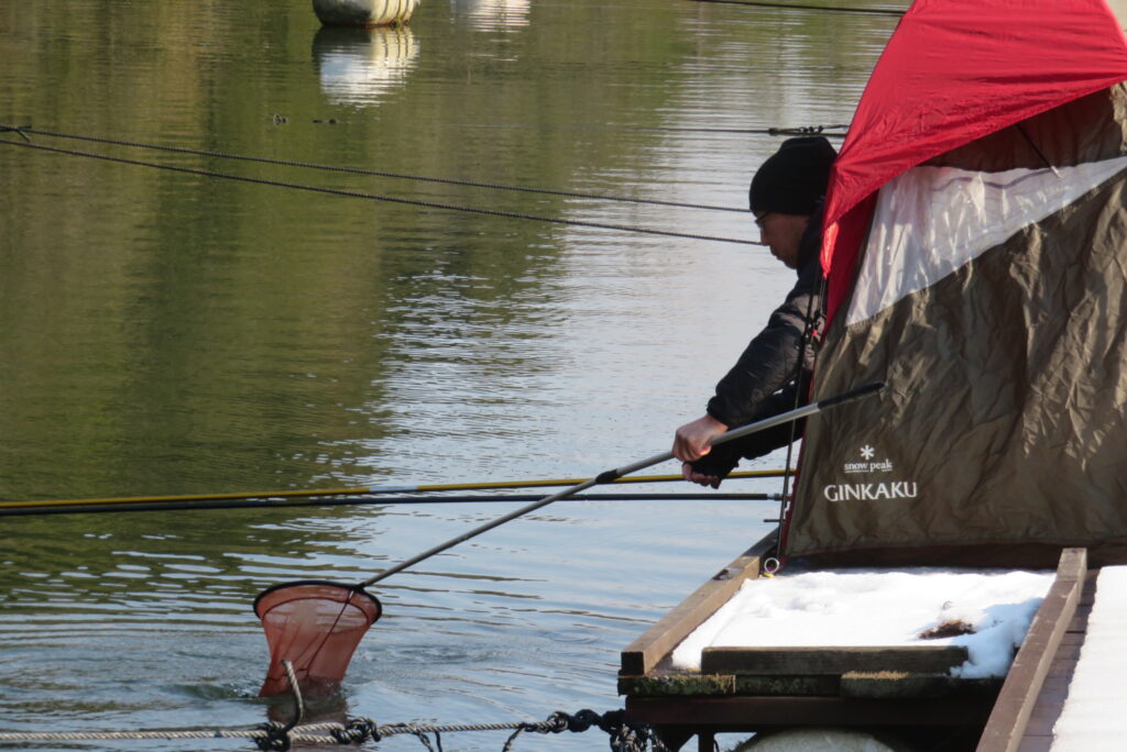 満水・晴れのち曇り・無風の1日でした。大津の堀井様2-2号桟橋・竿18尺、15尺・セットで30㎝~38㎝を35枚、2-2号桟橋・竿19尺、14尺・セットで30㎝~38㎝を16枚、2-3号桟橋・竿27尺・床両グルで30㎝~37㎝を16枚、そのほかのお客様も数枚~14枚の釣果でした。今朝も氷点下まで冷え込みましたが、太陽も顔を出し穏やかな天気でした。2-2号桟橋の本日最多のお客様は、釣り始めから定刻納竿時刻までコンスタントに釣れ続きました。浅場の4-2号桟橋山向きのお客様も床釣りで14枚の釣果で、雪解け水の流入の影響を心配しましたが、ポロポロ釣れました。8号桟橋の短竿・セットのお客様も2桁釣果で、良型が揃いました。明日は朝から夕方まで雪又はミゾレが継続する予報となっています。また強風も予想されており、パラソルでの釣りは厳しそうです。お越し予定のお客様はテントをお持ちください。本日もお越しいただき、ありがとうございました。
