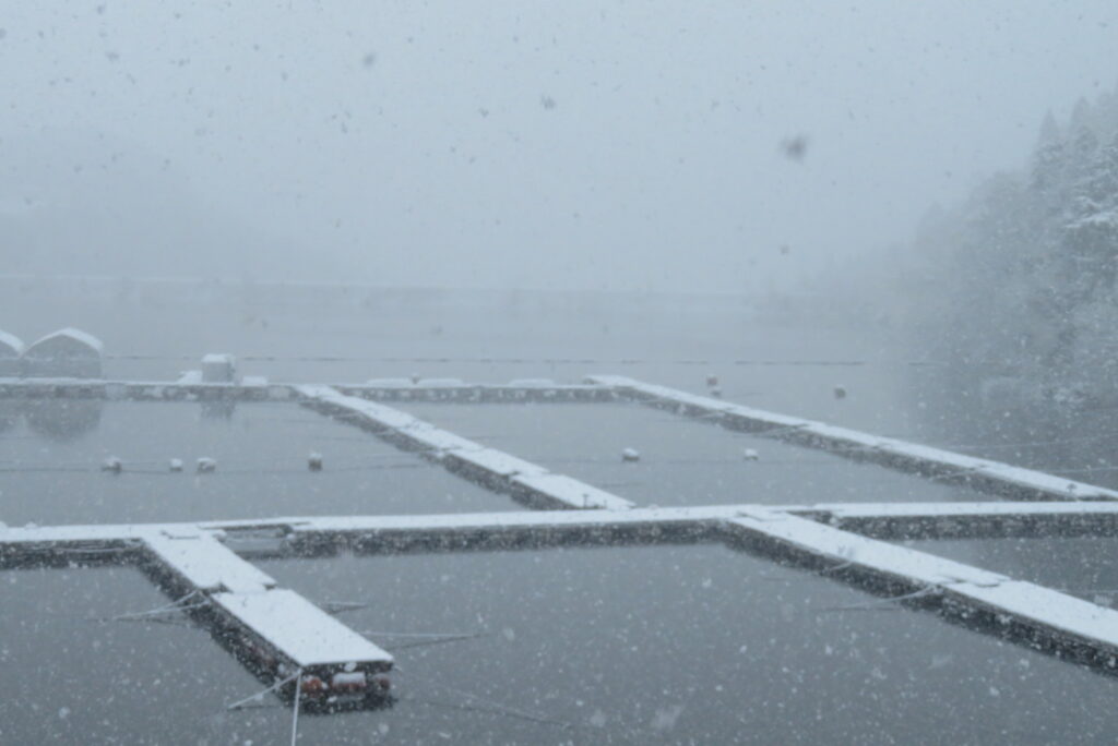 満水・雪一時曇り・無風の1日でした。今日は朝から雪が降ったり、曇り空になったりの繰り返しでした。池周辺道路にも10㎝程度の積雪がありましたが、2名様がお越しいただきました。神戸の小野様2-5号桟橋・竿18尺、12尺・感嘆セットで30㎝~37㎝を25枚、長竿・床釣りのお客様も2桁釣果でした。2-5号桟橋のお客様の釣り始めは18尺でしたが、12尺に変えて以降は、良型が揃い数も伸びました。釣り始めから短竿であれば数釣りができた感じでした。池周辺道路上に数㎝の積雪があります(15:30時点)。太陽が顔を出せば直ぐに消えてしまう感じですが、お越しの際はご注意をお願いします。明日26日(月)は、都合により(1日検診)、休業させていただきます。ご迷惑をおかけしますがよろしくお願いします。本日もお越しいただき、ありがとうございました。