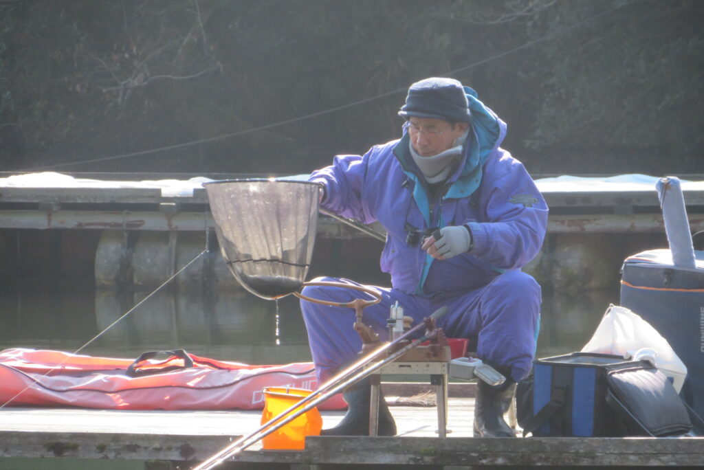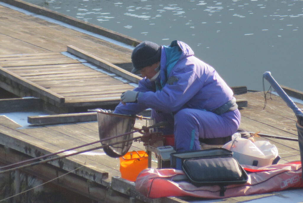 満水・晴れのち曇り・無風の1日でした。篠山の水口様3-1号桟橋・竿21尺・段底で28㎝~35㎝を23枚、2-2号桟橋・竿18尺・両グルで28㎝~37㎝を15枚の釣果でした。今日は冷え込みも弱く、1日を通して無風で釣り日和でした。2号桟橋・3号桟橋のお客様とも釣り始めから納竿時刻までコンスタントにアタリが続きました。本日もお越しいただき、ありがとうございました。