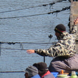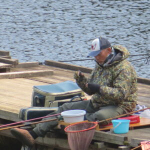 満水・曇りのち晴れ・強風のち弱風の1日でした。尼崎の寺澤様2-4号桟橋・竿27尺・床両グルで28㎝~38㎝を32枚、2-2号桟橋・竿24尺・床両ウドンで28㎝~36㎝を29枚、8-1号桟橋・竿13.5尺・セットで25㎝~35㎝を19枚、そのほかのお客様も数枚~20枚程度の釣果でした。朝一は爆風で竿出しが可能か?レベルの風でしたが、次第に風も収まり、昼頃には弱風程度になりました。2号桟橋の長竿・床釣りが好調で、30枚前後のお客様が2名様ありました。どちらのお客様も手持ち竿で、風に流されるウキに付いて行き、ハリスを張らないようにて上手にアタリを出され数釣られていました。2号桟橋・8号桟橋の短竿・セットのお客様も20枚前後の釣果で好釣でした。一昨日・昨日・今日と3日連続で4号桟橋の浅場は調子が上がりませんでした。明日24日は、1-1号桟橋でワカサギ卵をシュロ枠に付着させて、池に吊す作業を行いますので騒音・振動等が発生する事があります。お客様にはご迷惑をお掛けしますが、ご理解をお願いします。本日もお越しいただき、ありがとうございました。