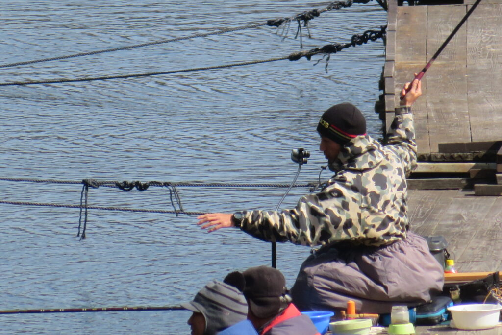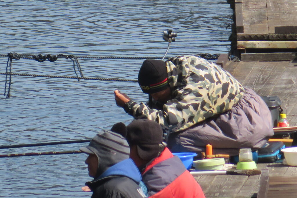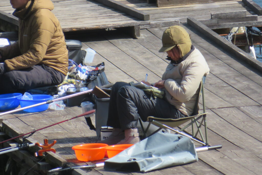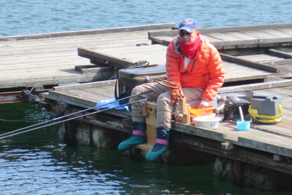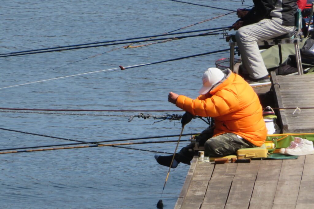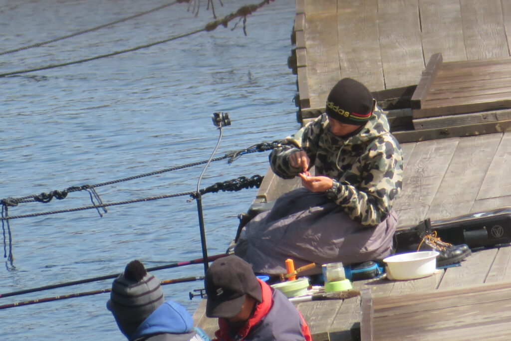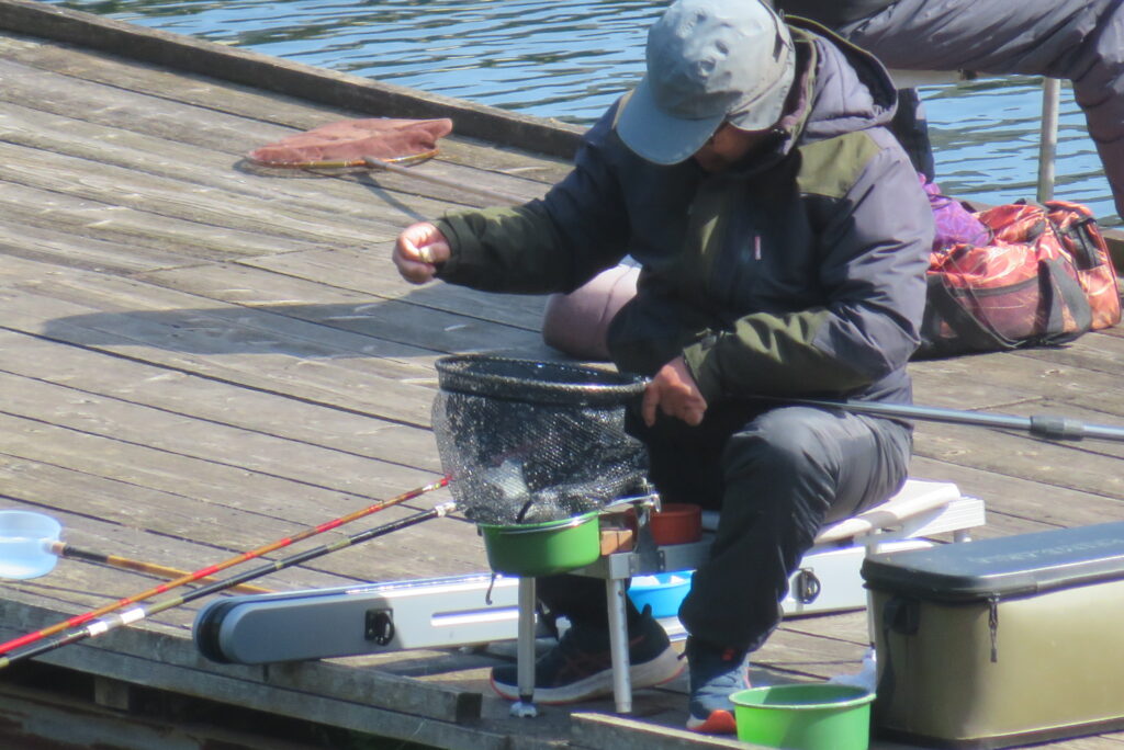 満水・曇りのち晴れ・強風のち弱風の1日でした。尼崎の寺澤様2-4号桟橋・竿27尺・床両グルで28㎝~38㎝を32枚、2-2号桟橋・竿24尺・床両ウドンで28㎝~36㎝を29枚、8-1号桟橋・竿13.5尺・セットで25㎝~35㎝を19枚、そのほかのお客様も数枚~20枚程度の釣果でした。朝一は爆風で竿出しが可能か?レベルの風でしたが、次第に風も収まり、昼頃には弱風程度になりました。2号桟橋の長竿・床釣りが好調で、30枚前後のお客様が2名様ありました。どちらのお客様も手持ち竿で、風に流されるウキに付いて行き、ハリスを張らないようにて上手にアタリを出され数釣られていました。2号桟橋・8号桟橋の短竿・セットのお客様も20枚前後の釣果で好釣でした。一昨日・昨日・今日と3日連続で4号桟橋の浅場は調子が上がりませんでした。明日24日は、1-1号桟橋でワカサギ卵をシュロ枠に付着させて、池に吊す作業を行いますので騒音・振動等が発生する事があります。お客様にはご迷惑をお掛けしますが、ご理解をお願いします。本日もお越しいただき、ありがとうございました。