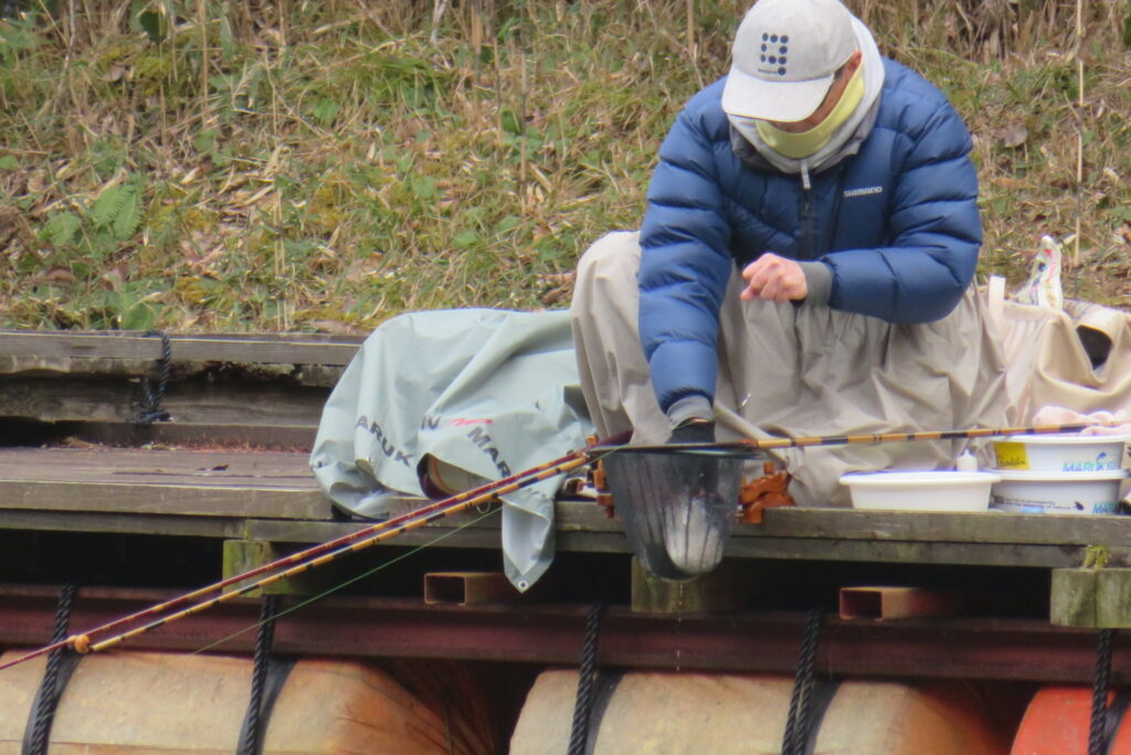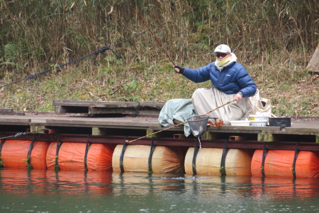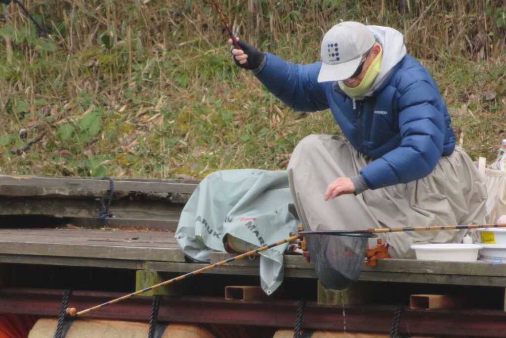 満水・曇り・強風一時弱風で寒い1日でした。お客様4-1号桟橋・竿19尺・床グルテンセットで21㎝~36㎝を24枚、5号桟橋の床釣りのお客様も良型揃いを12枚、7号桟橋の床釣りのお客様も10枚弱の釣果でした。今日も朝から強風が吹き続けました。曇り空でもあり、体感気温は激寒で真冬の防寒着が必要でした。4-1号桟橋の床釣りのお客様は、釣り始めから納竿時刻までコンスタントに釣れました。風裏の8号桟橋のお客様は、多くのヘラブナが目視できましたが、難しい釣りになりました。5号桟橋の長竿・床釣りのお客様も、良型をポツポツと釣果を積み上げられました。一昨日・昨日・今日の3日連続で北風の強風が吹き続けました。厳しい釣り条件でしたが、ヘラブナの活性は高く最多釣果20枚~30枚の釣果の日が続いています。池水温も少し上がったようで、このまま春の乗っ込みまで釣れそうな感じです。本日もお越しいただき、ありがとうございました。