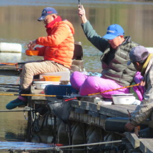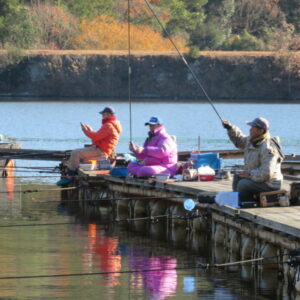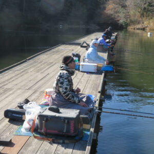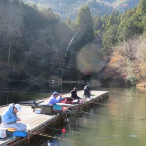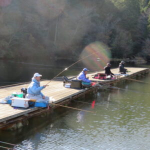 満水・晴れ・無風で穏やかな1日でした。枚方の渕田様3-5号桟橋道路向き・竿28.5尺・床グルテンセットで24㎝~41.8㎝を29枚、4-1号桟橋道路向き・竿21尺・床両グルで28㎝~36㎝を28枚、4-1号桟橋道路向き・竿16.5尺・段床で30㎝~36㎝を20枚、そのほかのお客様も数枚~17枚の釣果でした。朝一は3℃程度まで冷え込んだため釣れ出しは少し遅めでしたが、1日を通してアタリは継続しました。ウキ周りの浅棚に多くのヘラブナが寄っていた箇所もあり、短竿・セットであれば数釣りができた感じでした。明日14日(日)は、4-1号桟橋及び4-2号桟橋について例会予約が入っていますのでご承知をお願いします。本日もお越しいただき、ありがとうございました。
