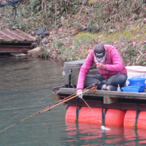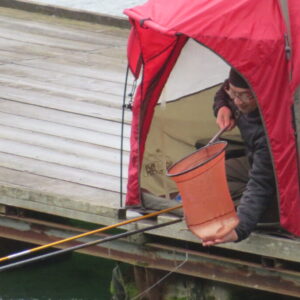 満水・曇り一時雨・強風の1日でした。今日は天気予報とおり朝から夕方まで強風が吹き続け、竿出しできる桟橋も限られました。また、昼前後は雨風が強まる時間帯もあり、早仕舞いされたお客様もありました。大津の堀井様5-1号桟橋・竿21尺、13尺、11尺・両グルで33㎝~38㎝を26枚、7号桟橋・10.5尺・セットで33㎝~38㎝を17枚(~12:00)、5-1号桟橋・竿21尺、13尺・セットで33㎝~38㎝を15枚、4-1号桟橋・竿18尺・床グルダンゴで30㎝~38㎝を13枚、7号桟橋・竿18尺・床両ダンゴで30㎝~38㎝を11枚、そのほかのお客様も数枚~10枚程度の釣果で、各所とも良型ヘラブナ主体で釣れました。4号桟橋・5号桟橋の床釣りは、強風で桟橋が動き難しい釣りになりました。風裏の7号桟橋は、桟橋の揺れも無く、多くのヘラブナが目視できて短竿・セットで良く釣れました。今日は強風と雨の厳しい釣り条件で釣果が伸びませんでしたが、釣り条件の良い日であれば、数釣りが期待できそうです。本日もお越しいただき、ありがとうございました。