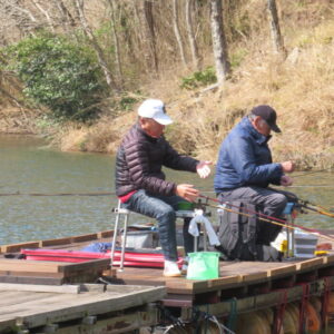 満水・曇のち晴れ・強風で寒い1日でした。京都の林様2-2号桟橋・竿15尺・セット、両グルで25㎝~38㎝を44枚、同箇所で京都の林様・竿18尺・ウドンセット、両グルで25㎝~36㎝を44枚、4-1号桟橋・竿18尺・床グルテンセットで21㎝~38㎝を20枚、そのほかのお客様も5枚~10枚程度の釣果でした。今日は一時的に弱風の時間帯があったものの、1日を通して強風が吹き続けました。8号桟橋で竿出しされたお客様も強風のため7号桟橋に移動されました。2号桟橋も強風で難しい釣りでしたが、宙・両グルで良く釣れ2名様とも44枚の釣果でした。7号桟橋は、良型ヘラブナが釣れました。今日も全体的には床釣りの数が伸びず、宙釣りのセット又は両グルが数釣れました。最近は雨・風・気温低下の日が続いており、暖かい無風の日が待ち遠しいです。本日もお越しいただき、ありがとうございました。