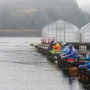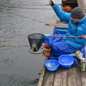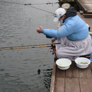 満水・曇り一時晴れ・無風の1日でした。明石の葛西様2-2号桟橋・竿10.5尺・セットで28㎝~37㎝を48枚、4-1号桟橋・竿19.1尺・床両ダンゴで28㎝~35㎝を39枚、2-3号桟橋・竿18尺、21尺・セット、両グルで28㎝~38㎝を37枚、2-2号桟橋・竿18尺、15尺・セット、両グルで28㎝~38㎝を36枚、2-3号桟橋・竿18尺、13.5尺・セットで27㎝~38㎝を33枚、2-4号桟橋・竿18尺、13尺・ウドンセット、両グルで28㎝~38㎝を33枚、4号桟橋・7号桟橋、8号桟橋のお客様も10枚弱~17枚の釣果でした。今日は久し振りに1日を通して無風の釣り日和で、ヘラブナの活性も高く、各所とも良く釣れました。7号桟橋は良型ヘラブナの腹ボテが多く混じりました。今後も雨風・急な冷え込みが無ければ好釣果が期待できそうです。本日もお越しいただき、ありがとうございました。